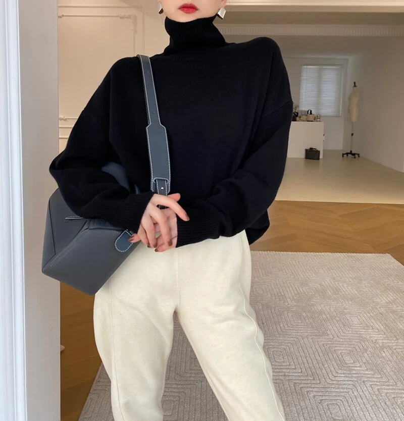 Maglione donna raffinato con scollo a rotolo La Parisienne