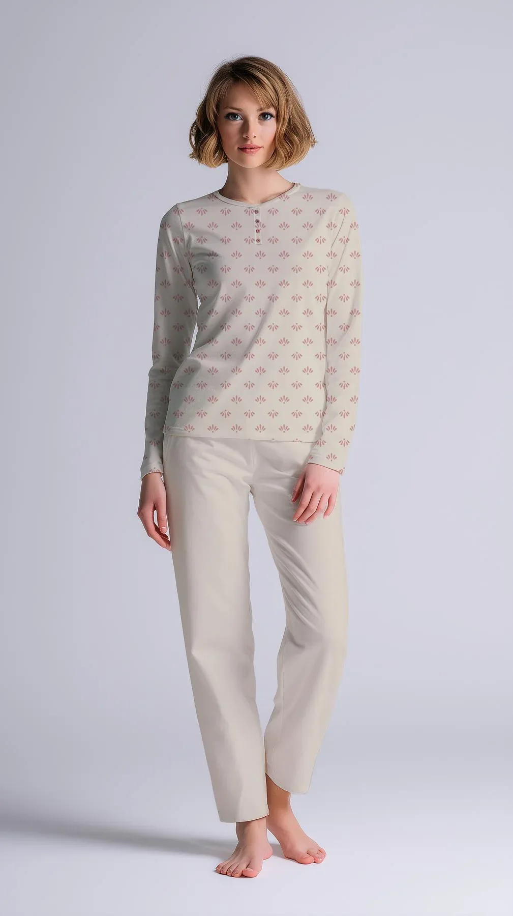 Pigiama Donna Serafino Manica Lunga Pantalone Lungo