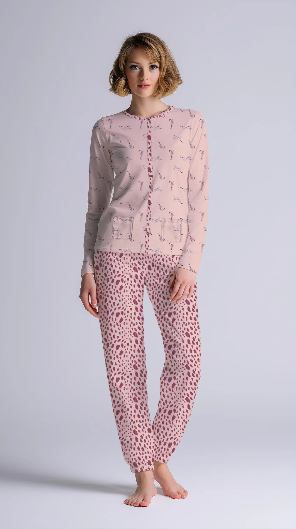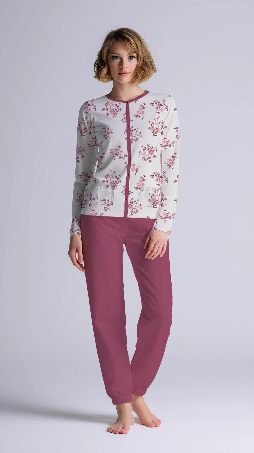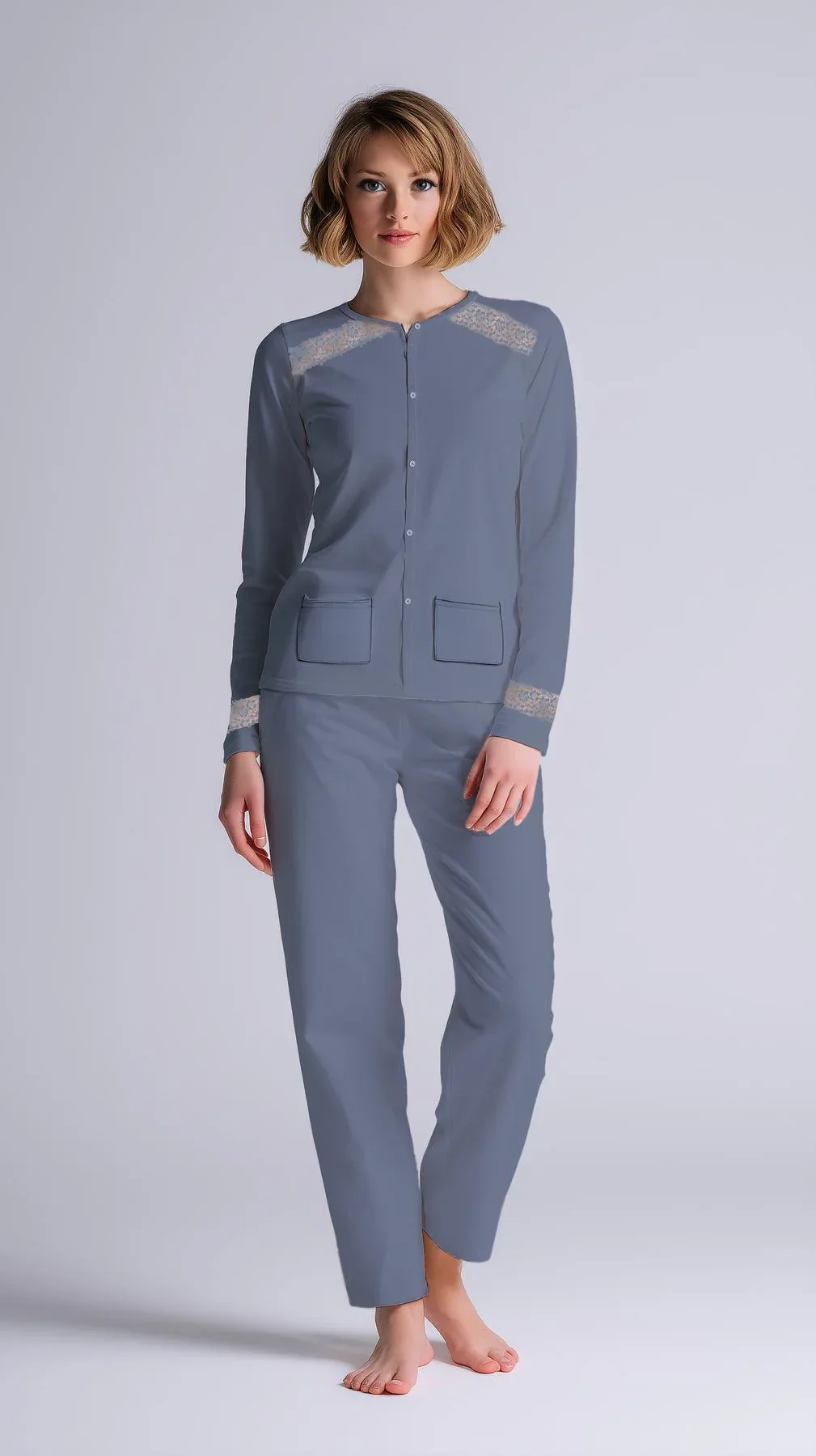 Pigiama Donna Manica Lunga Pantalone Lungo Aperto