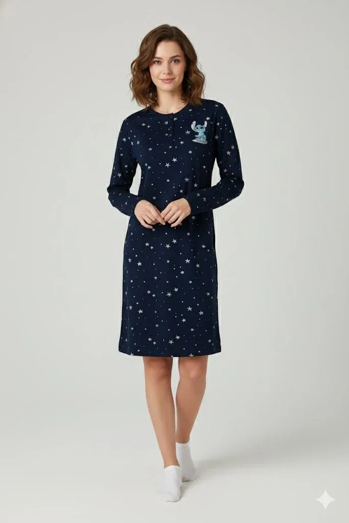 Camicia Da Notte caldo cotone disegno Disney Stitch