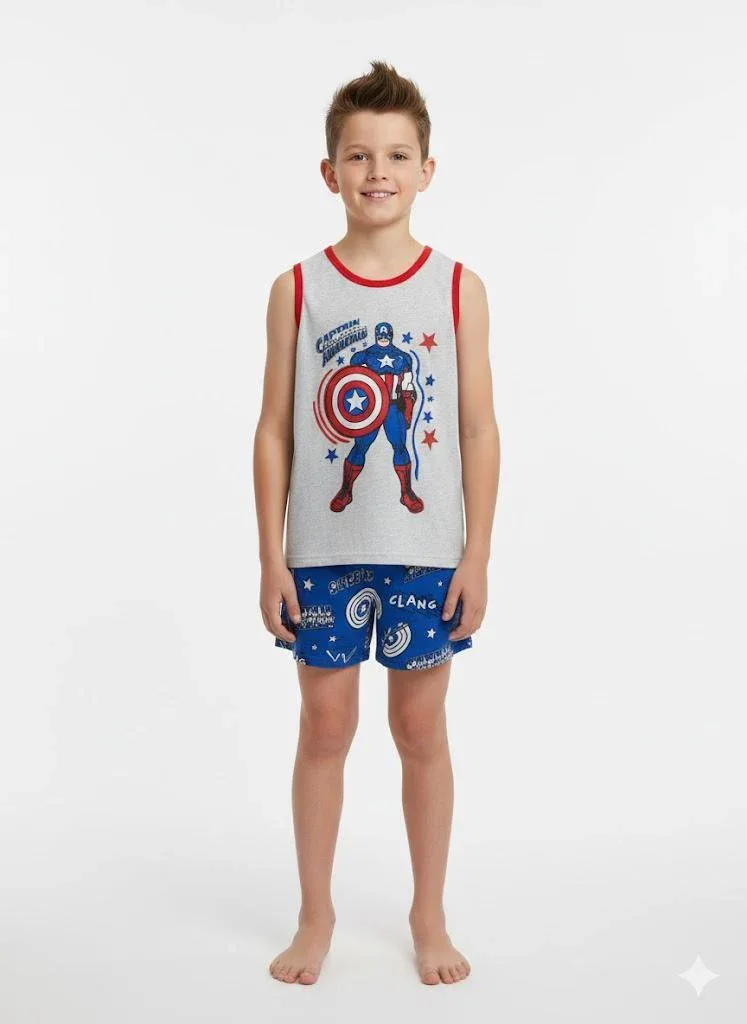Pigiama Bimbo Giro Manica Pantalone Corto Disegno Avengers
