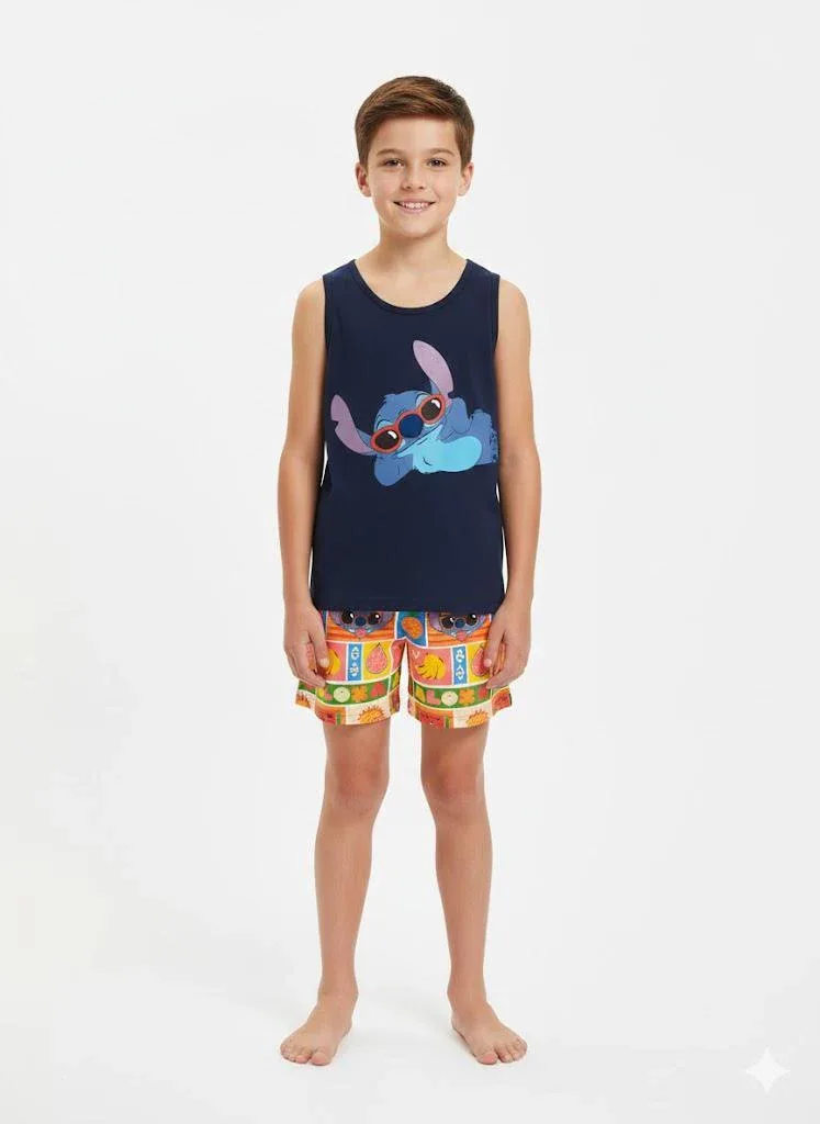 Pigiama Bimbo Giro Manica Pantalone Corto Disegno Stitch