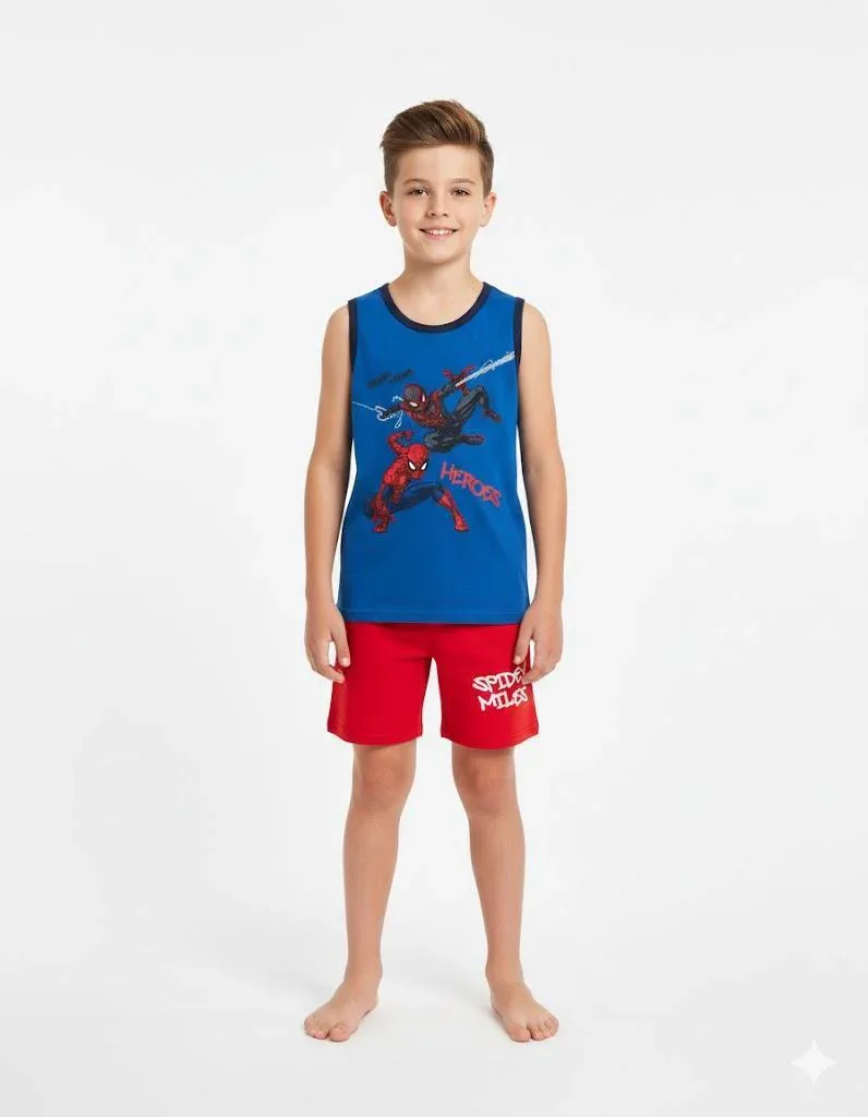 Pigiama Bimbo Giro Manica Pantalone Corto Disegno Spiderman