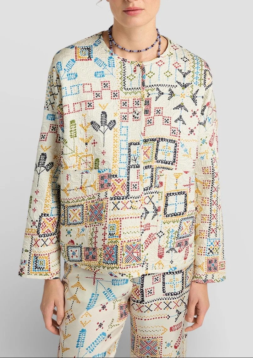 SS26-265MMOCO019_265MO36 CAPPOTTO GELSOMINO REV IN TWILL TRAPUNTATO STAMPATO – MULTICOLOR PANNA