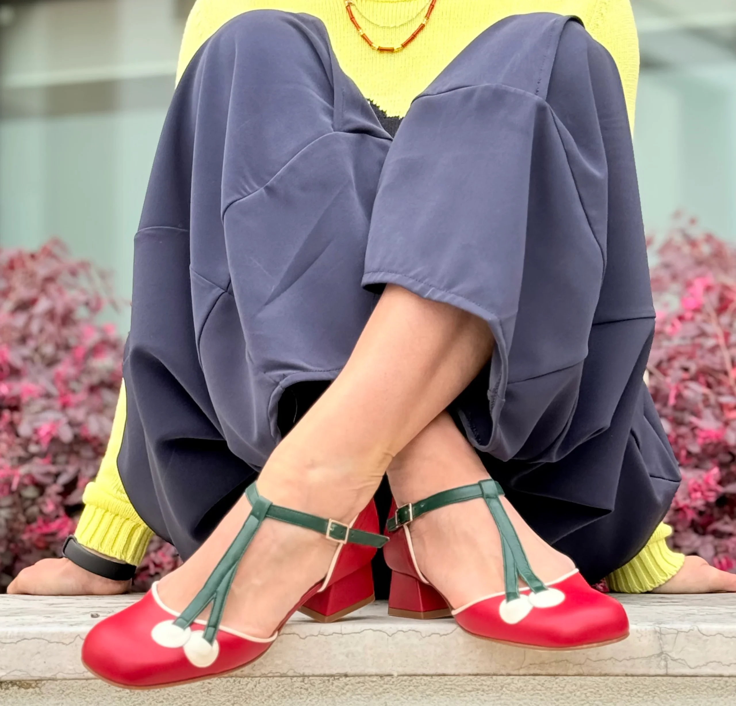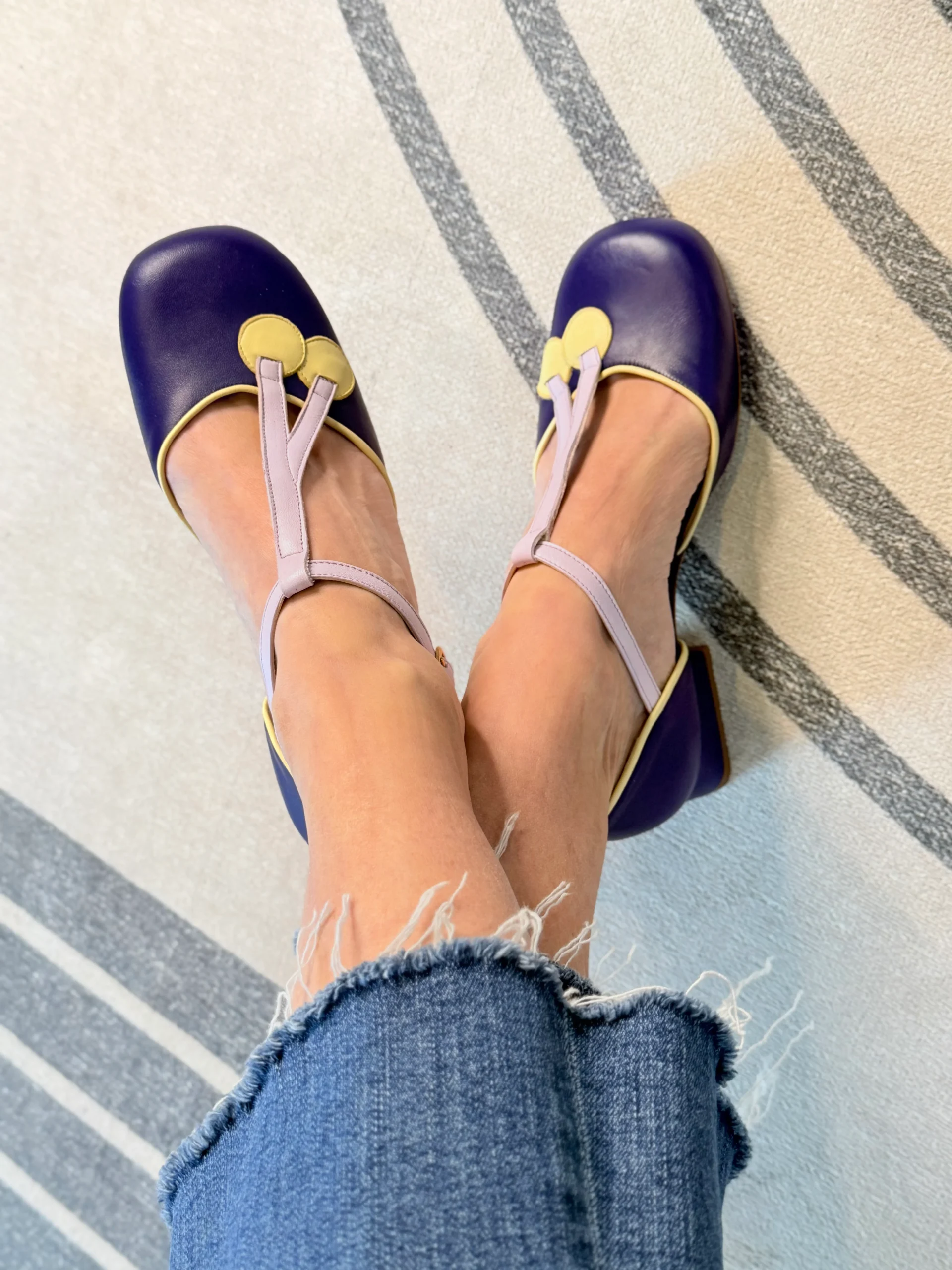 Sasha Uva decollete t-bar in pelle viola con cinturino tacco 5cm stile vintage artigianale marchigiana