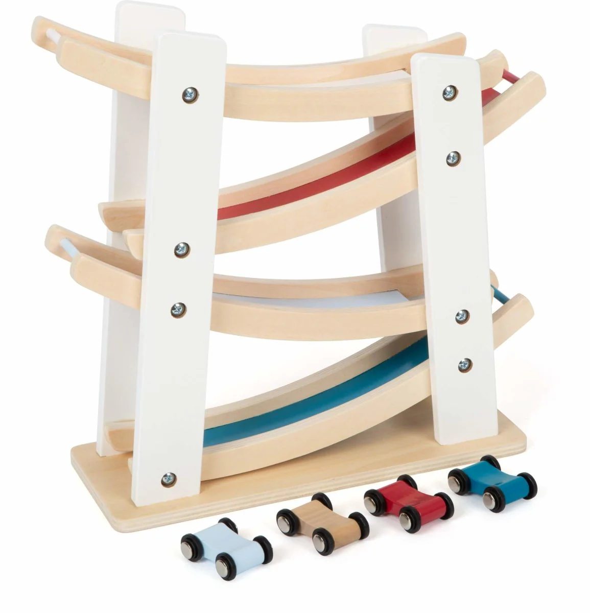 Pista Macchine in Legno – 4 macchinine incluse – Celeste