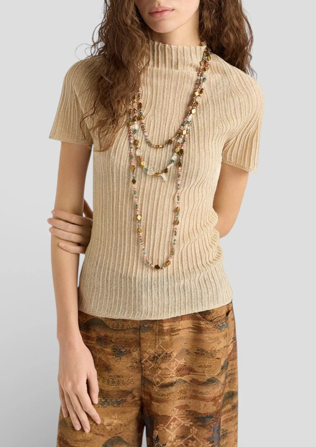 SS26-265MMOKN031_265MO37 TSHIRT MIRADA IN LUREX MIX PUNTI – ORO CHIARO
