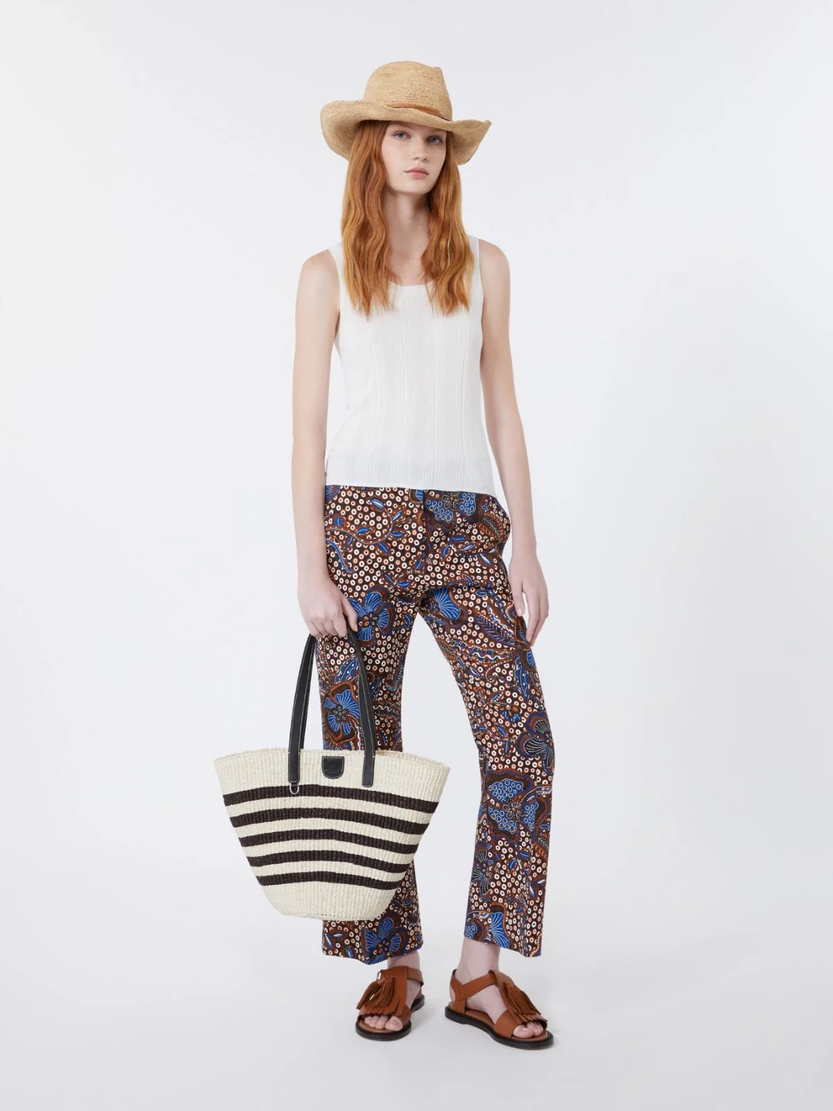 Pantalone in stuoia di cotone stampato – CUOIO – WEEKEND MAX MARA