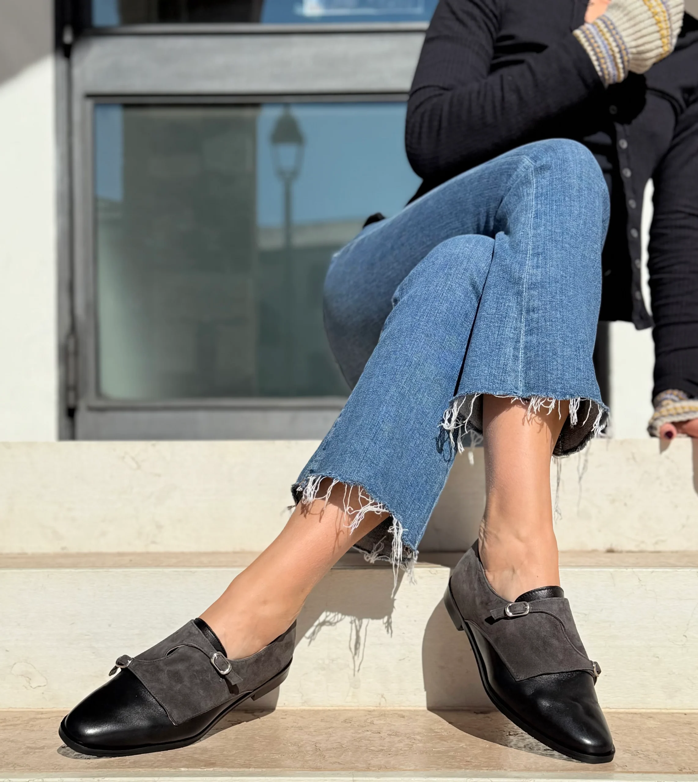 Ramsay Black scarpina bassa in nappa e camoscio nero artigianale toscana