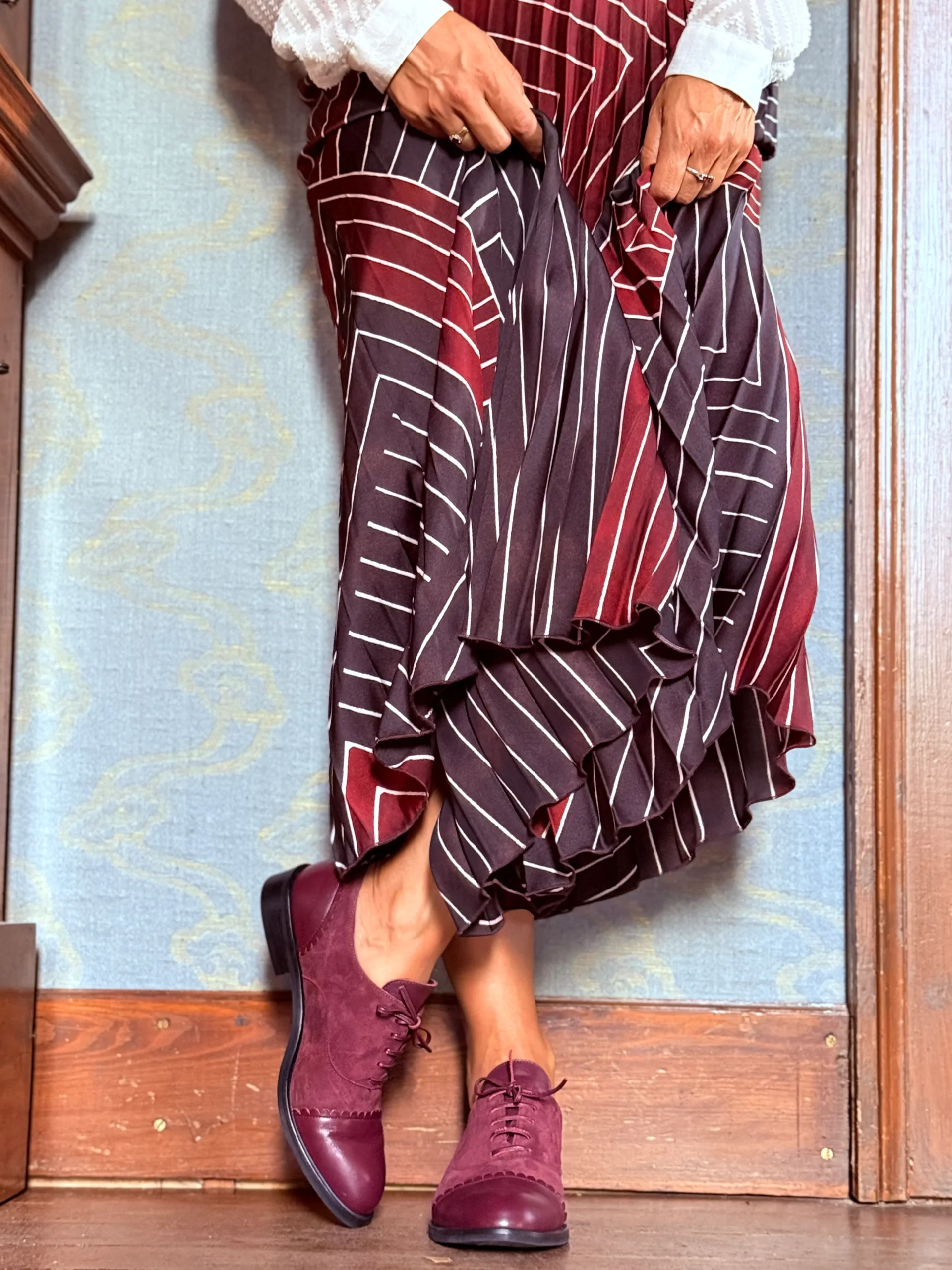 Roger Wine scarpa bassa allacciata in camoscio bordeaux artigianale toscana