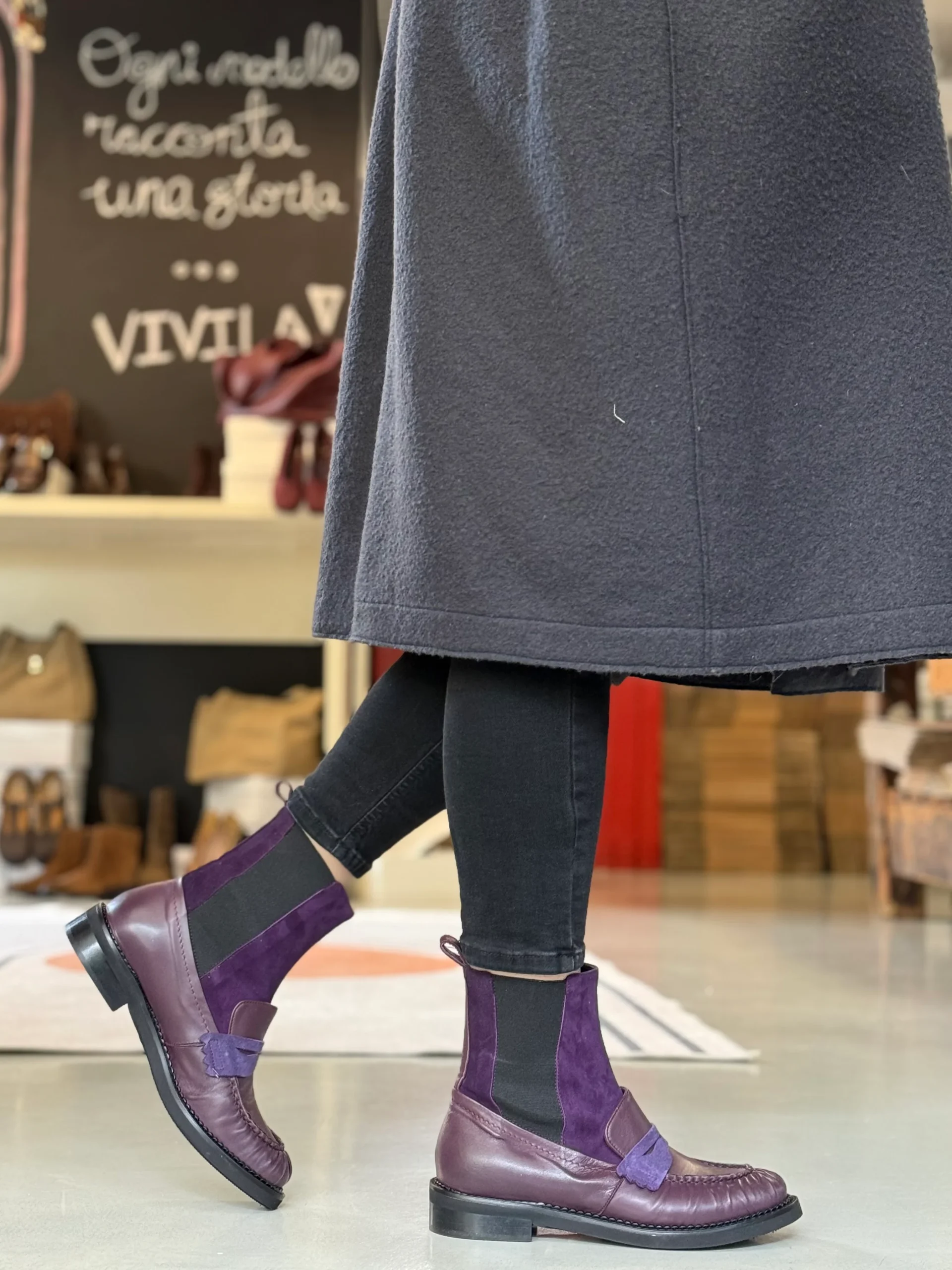 Banksy Purple stivaletto beatles in nappa prugna e camoscio viola artigianale marchigiana