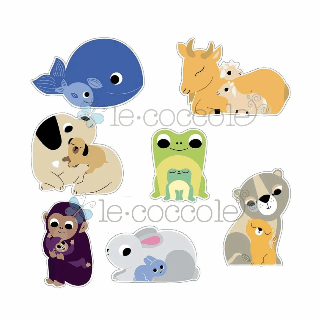 Una collezione di adesivi con 100 immagini raffigurati animali con mamma e cucciolo, adatti ai bambini a partire dai 18 mesi.