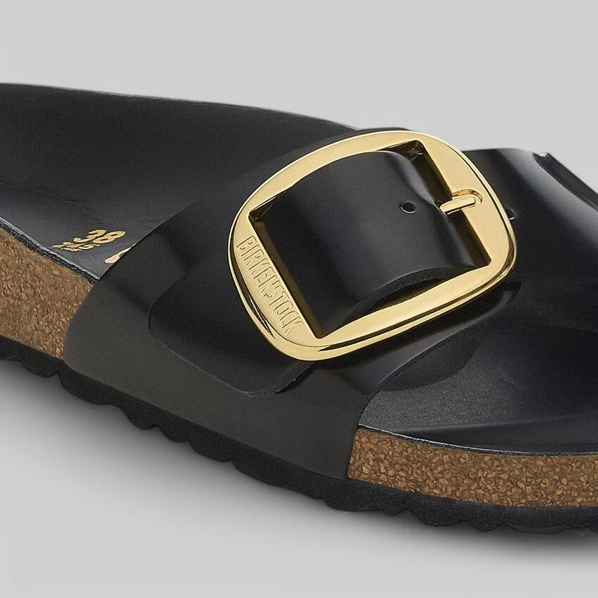 Il modello BIRKENSTOCK Madrid è un vero classico che entusiasma il mondo della moda con il suo design essenziale. La versione Big Buckle presenta una fibbia ad ardiglione grande ed elegante. Il sottopiede del plantare semi-exquisit è completamente rivestito in pelle piumato e offre una straordinaria comodità. La tomaia è in pregiata pelle naturale con una brillante finitura laccata.