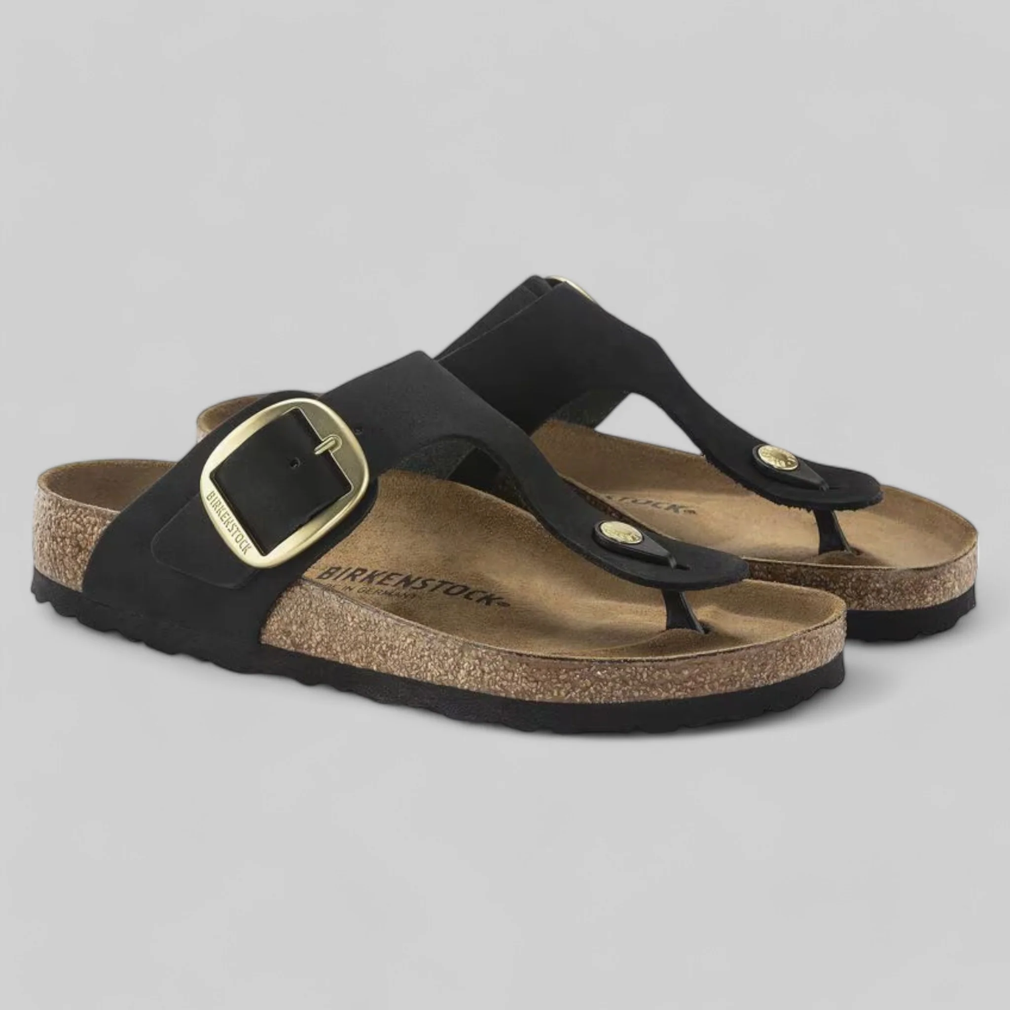 Il modello BIRKENSTOCK Gizeh unisce il design minimalista e alla moda a una stabilità ottimale: un vero classico. La variante Big Buckle presenta una fibbia ad ardiglione grande ed elegante, un bel particolare che spicca su questi sandali molto sobri. La tomaia è in pregiata pelle nabuk, fantastica con il suo look naturale e rustico.