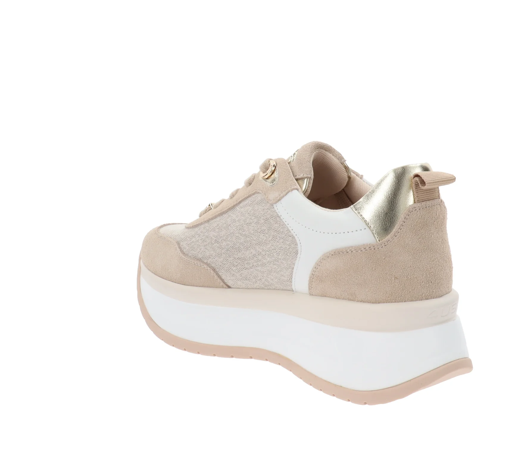 Le sneakers donna 4US in pelle e tessuto combinano materiali di alta qualità per offrire un equilibrio tra resistenza e traspirabilità . La pelle garantisce durata ed eleganza, mentre il tessuto assicura comfort e una buona ventilazione del piede. Progettate per una calzata ergonomica, offrono supporto e comodità durante l’intera giornata. Ideali per chi cerca una scarpa versatile e funzionale, capace di adattarsi a diversi outfit e occasioni.