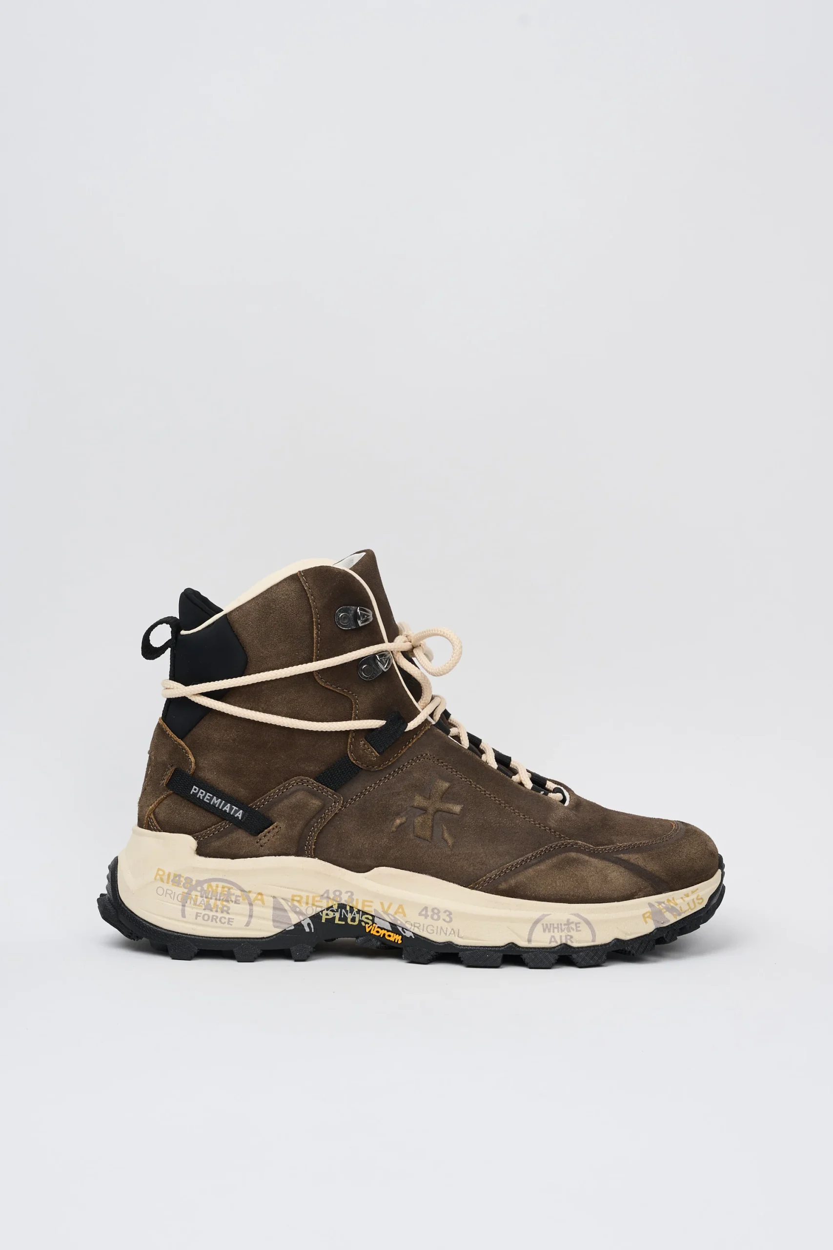 Composizione: suede marrone scuro, suola in gomma, fodera e soletta in pelle