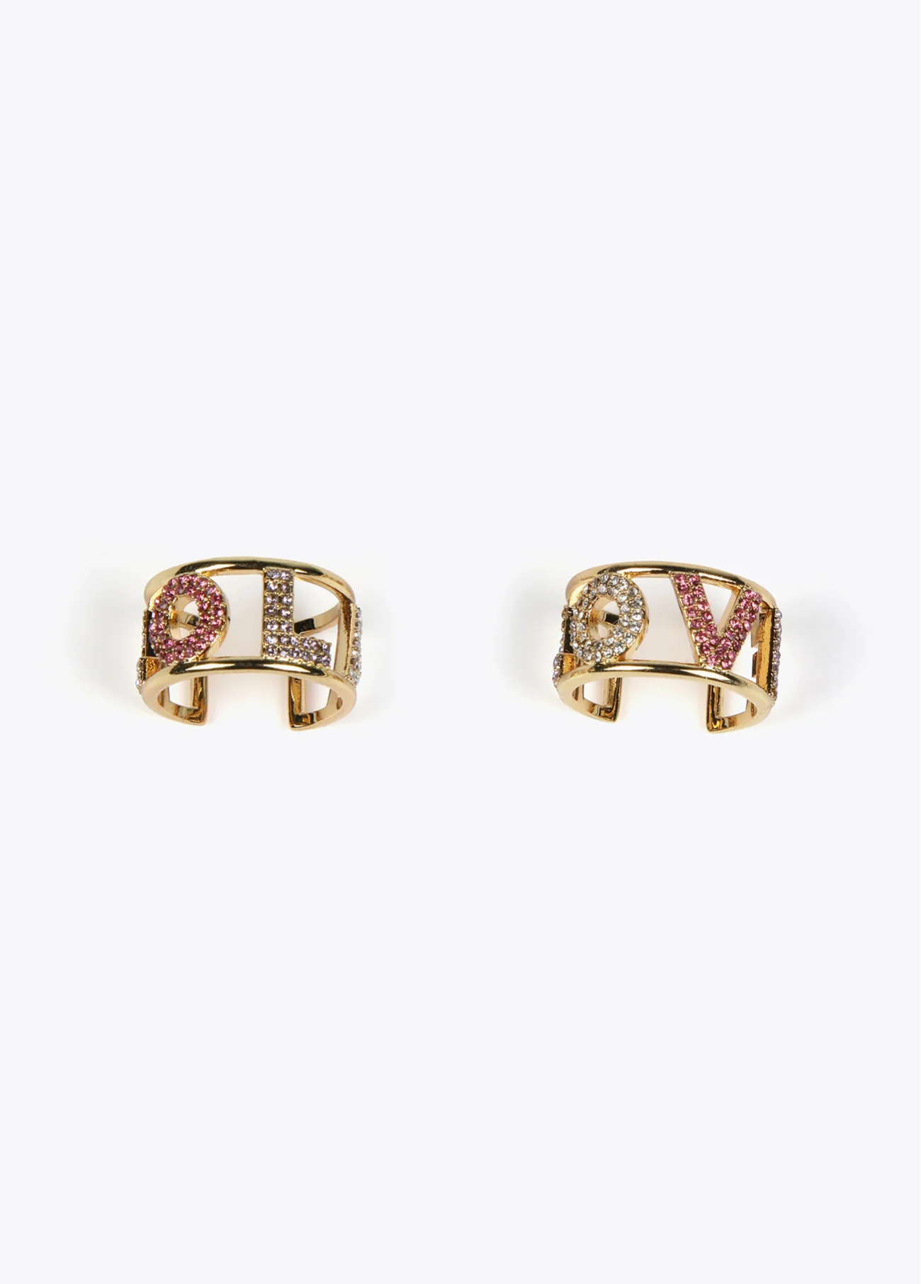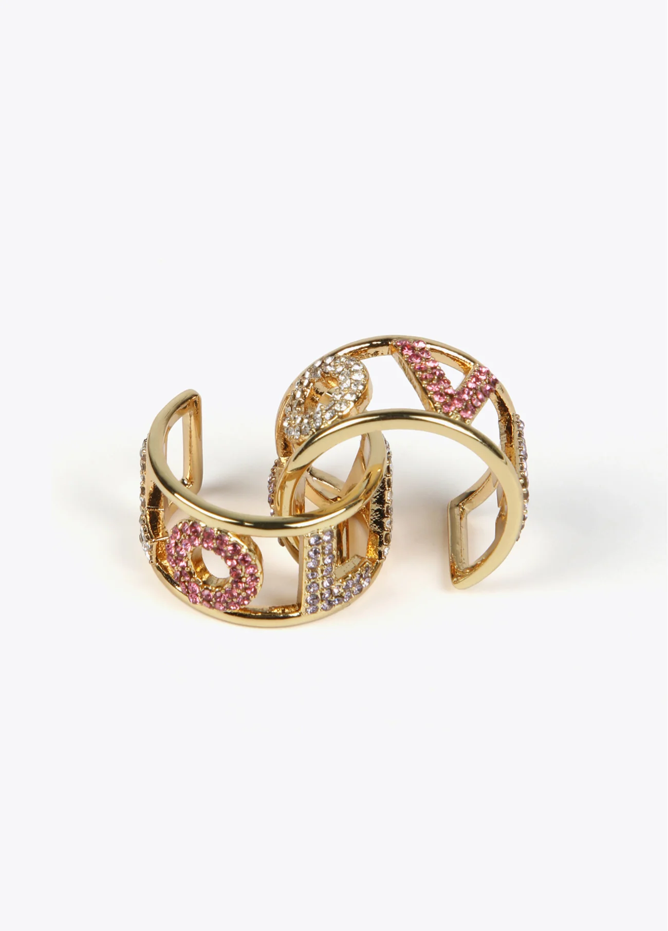 Confezione anelli dorati a cerchio con scritta LOVE in pietre brillanti.