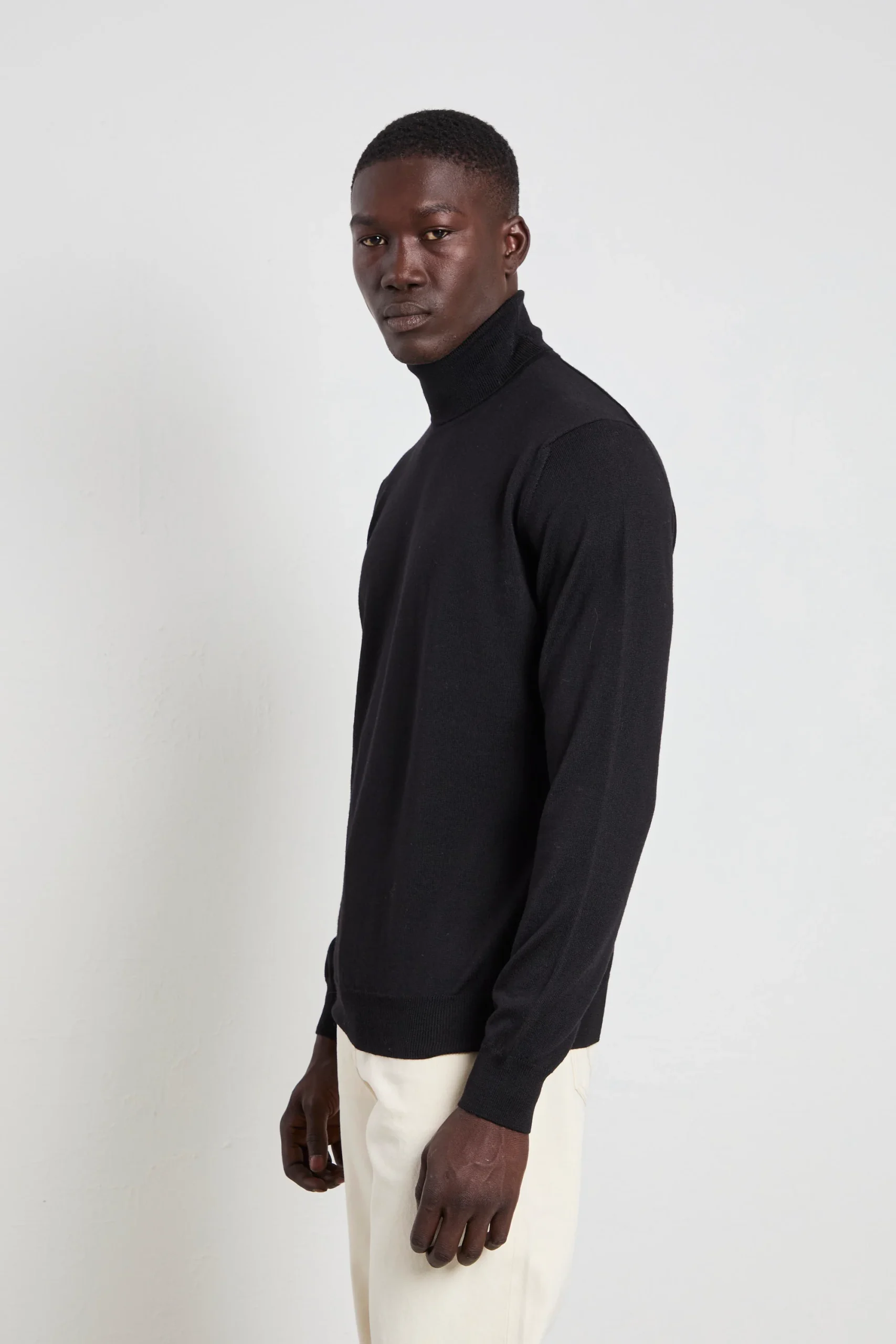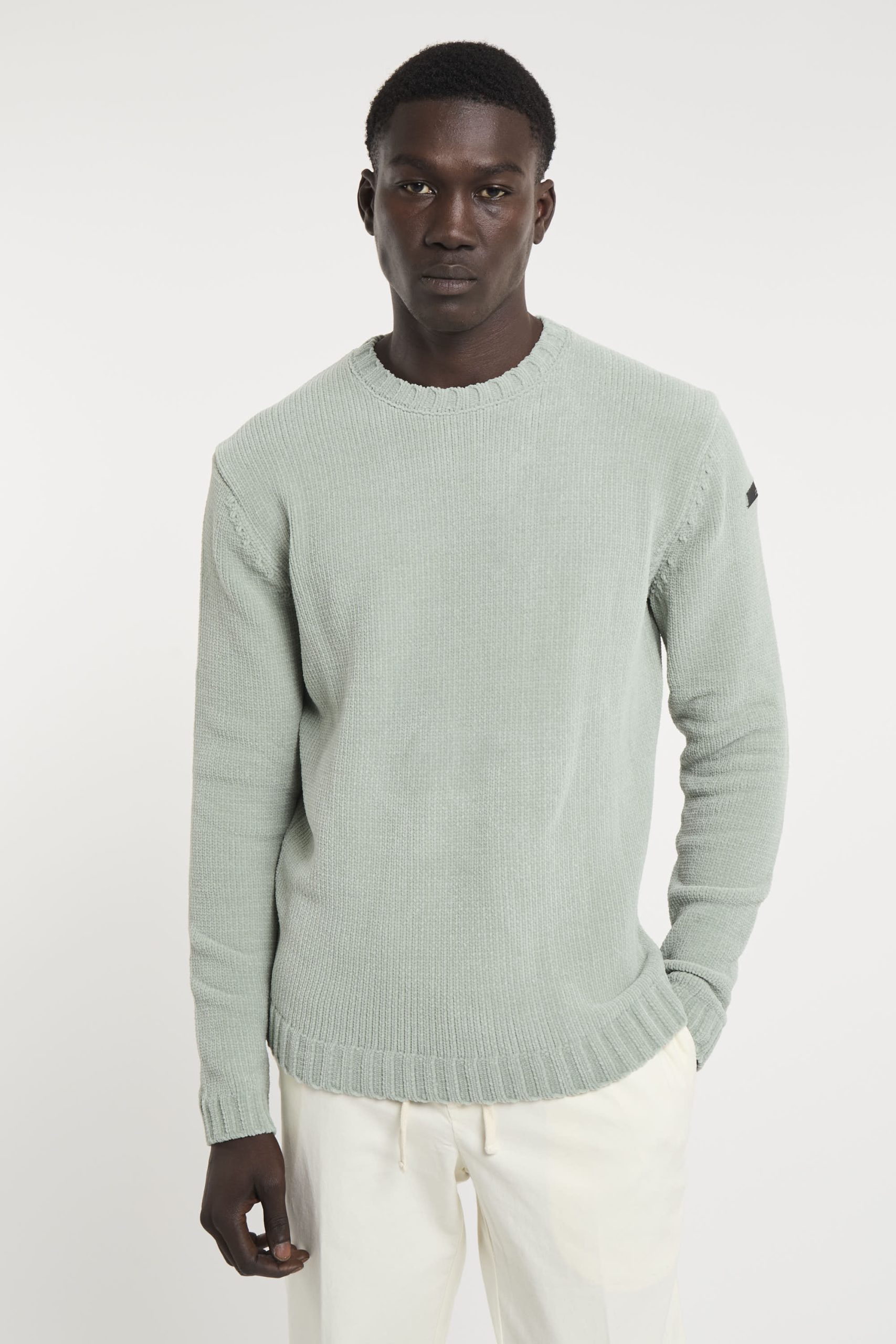 Maglia girocollo a manica lunga, senza cuciture, che garantisce una vestibilità morbida e un comfort superiore. La lavorazione rasata con polsi e fondo a costa larga conferisce al capo un aspetto minimal e raffinato, perfetto per uno stile contemporaneo.