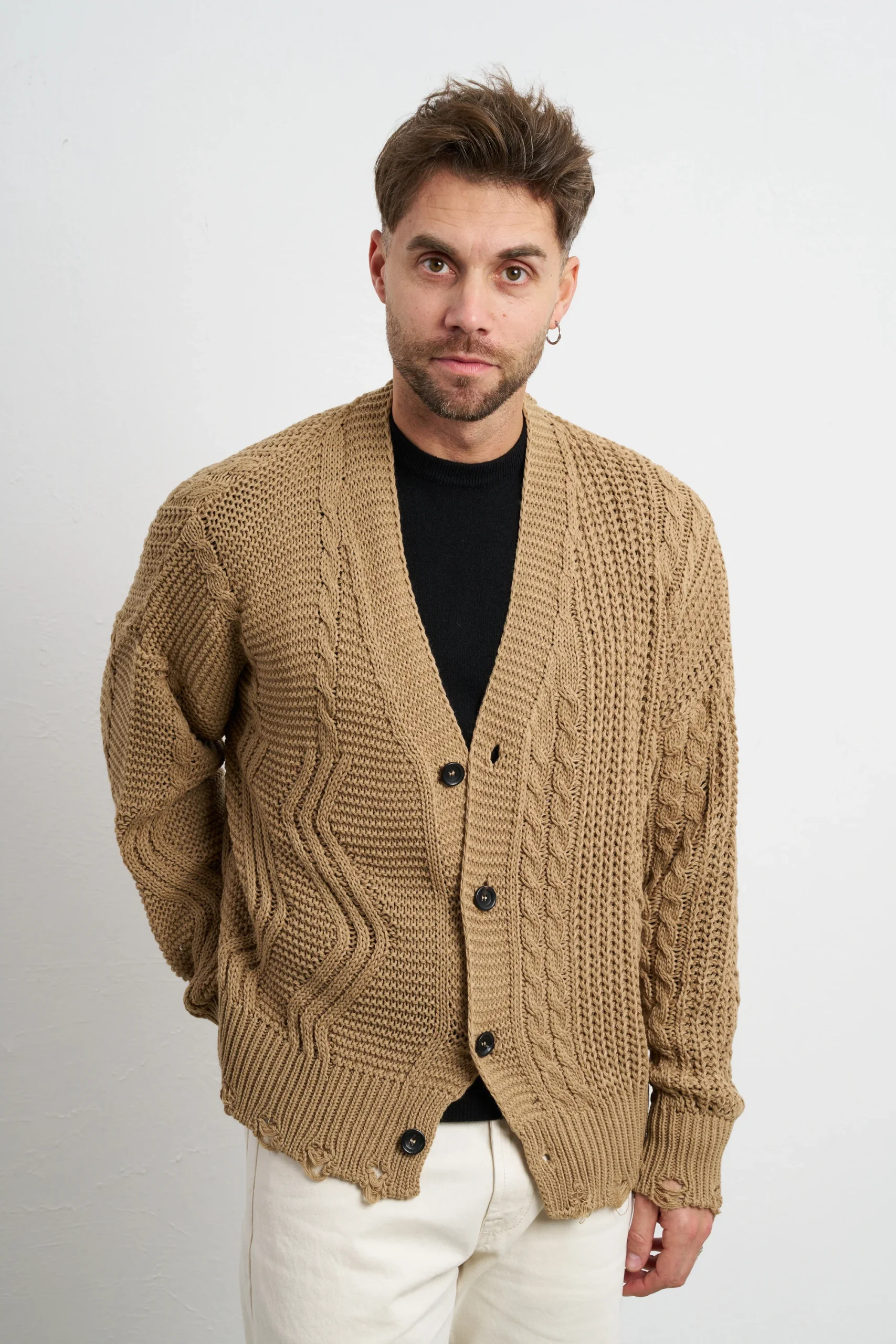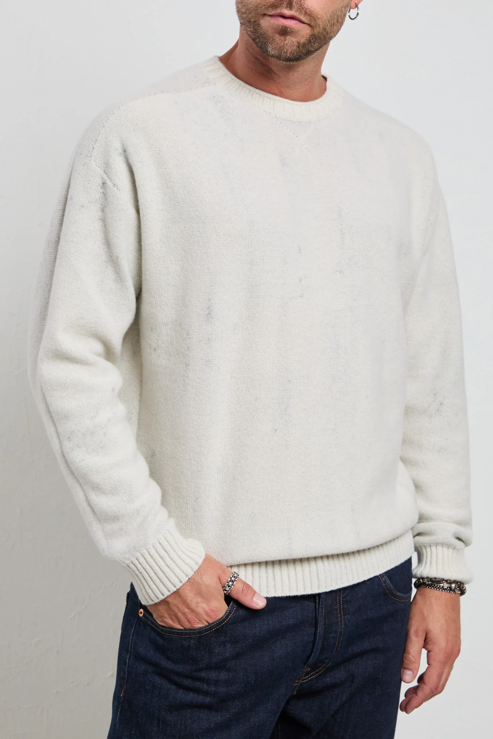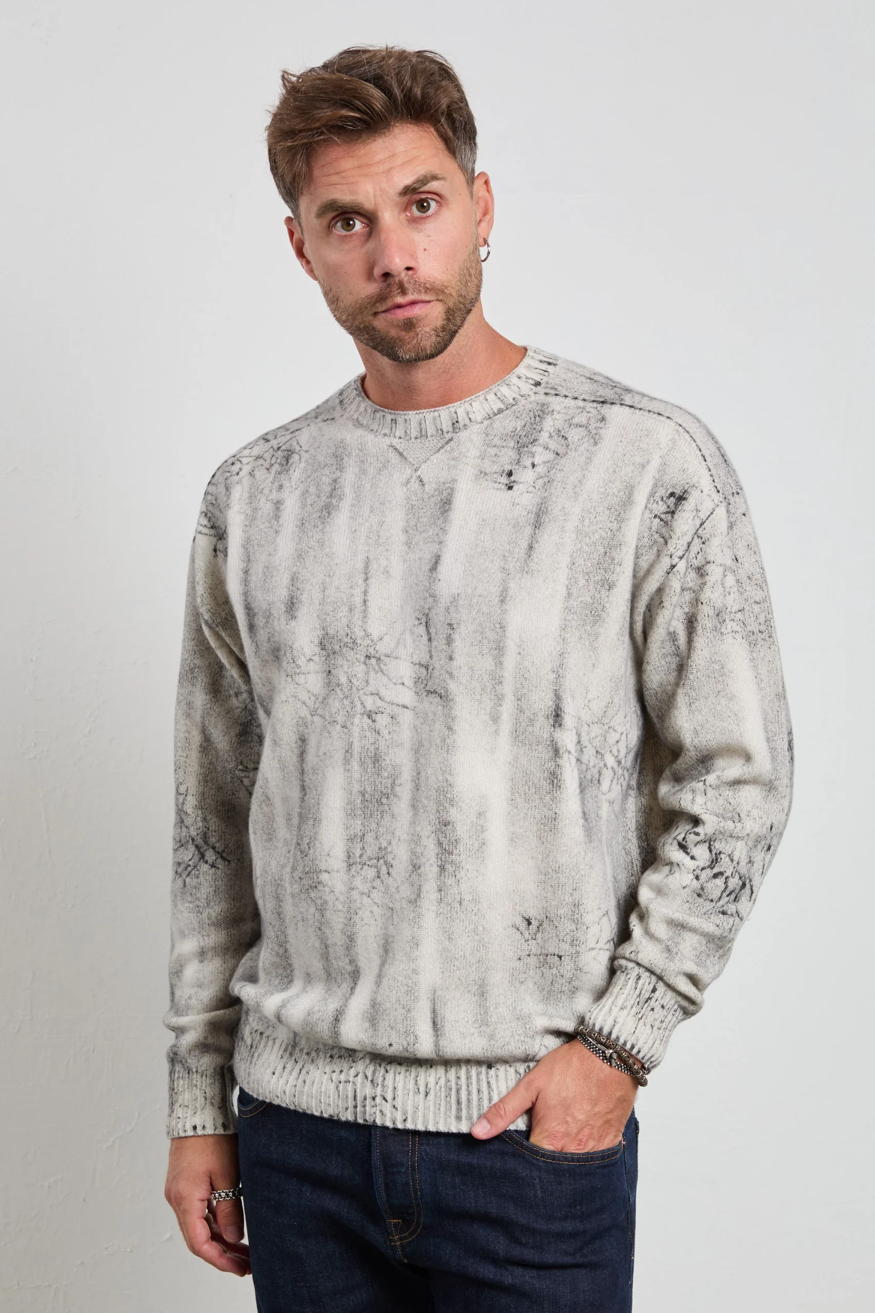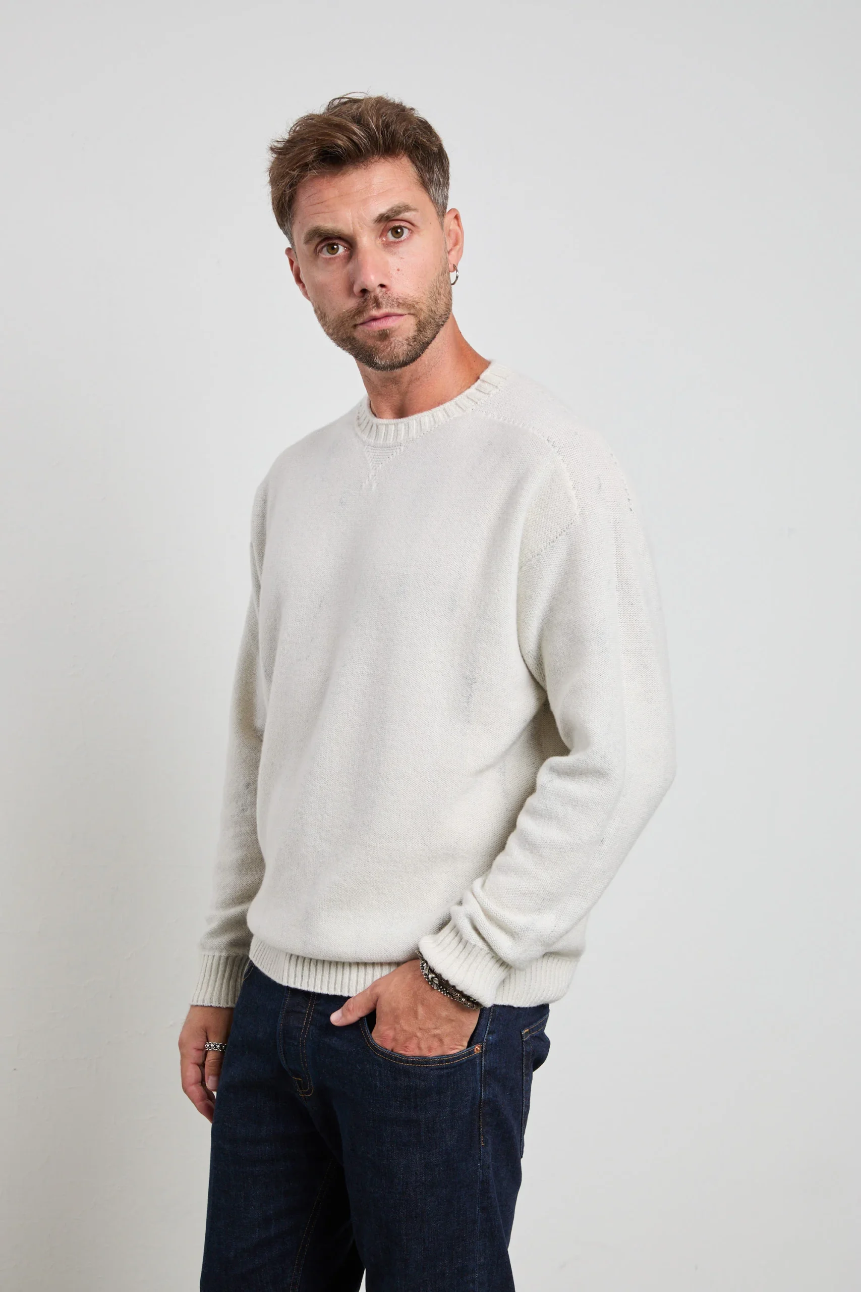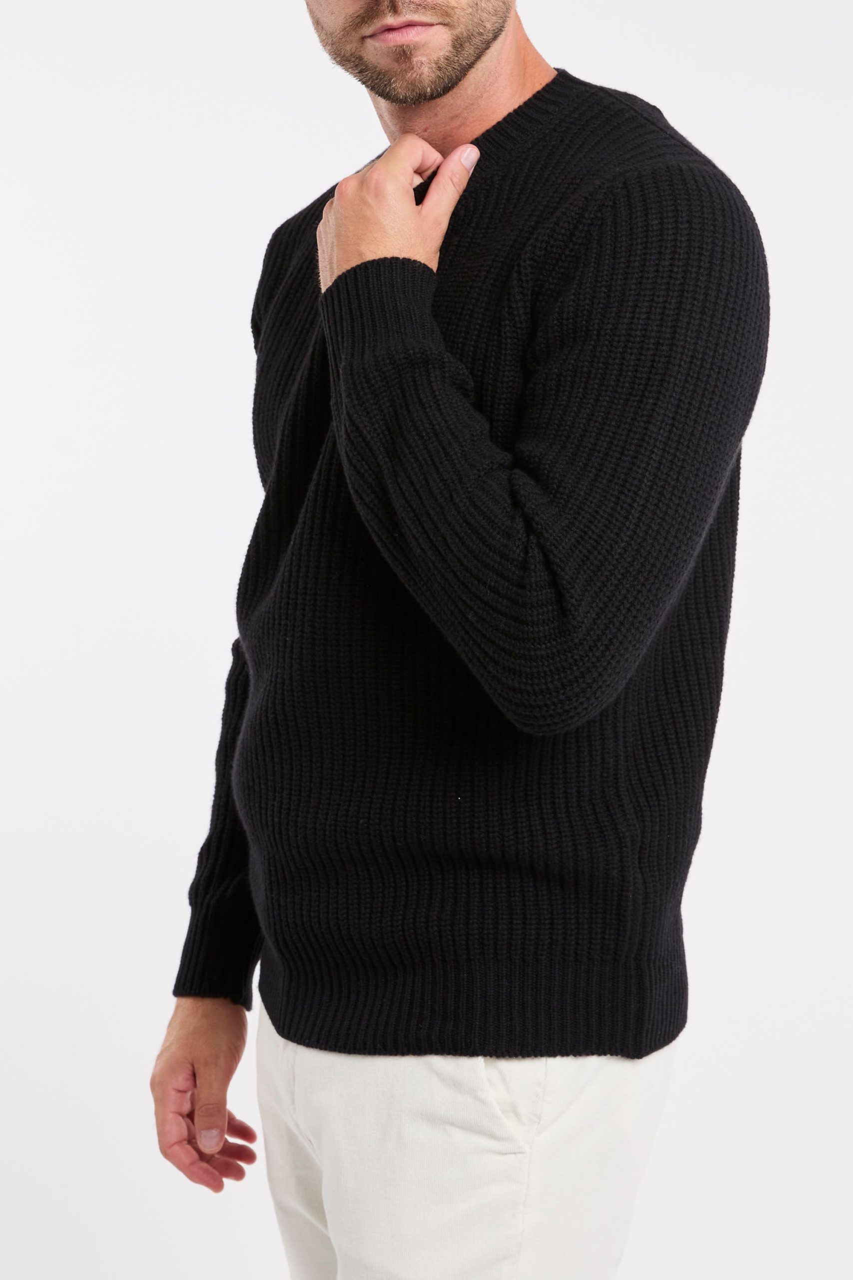 Maglia a girocollo a manica lunga, realizzata con filati pregiati e senza cuciture per garantire una vestibilità morbida e un comfort superiore. La lavorazione pulita con polsi e fondo a costa larga dona al capo un aspetto minimal ed elegante, adatto sia al tempo libero che a contesti più formali. Ogni pezzo è unico e combina artigianato di qualità e design contemporaneo, interamente Made in Italy. La morbidezza del filato e la reversibilità del capo la rendono versatile e adatta a molteplici occasioni, dal lavoro agli appuntamenti informali. Perfetta per look maschili moderni, si abbina con pantaloni sartoriali grigi o blu e mocassini in pelle per un outfit elegante e raffinato. Per un effetto più casual chic, si può indossare con jeans scuri e sneakers minimal o sotto giacca bomber o trench leggero, per un mix di comfort e stile urbano contemporaneo.
