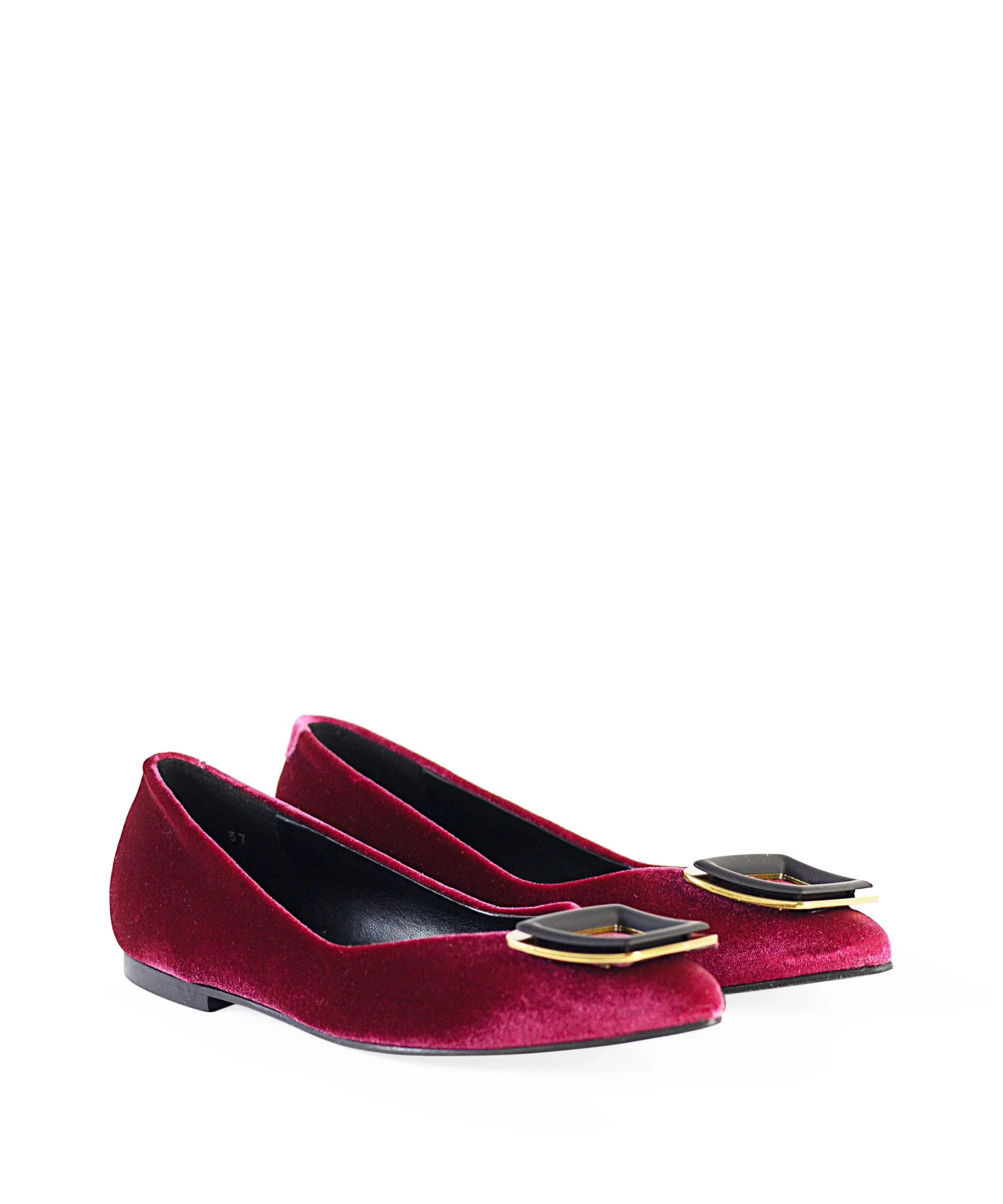 Ballerine donna in velluto a punta e dettaglio fibbia sul puntale. Realizzate in elegante velluto, queste ballerine donna sono un mix di classe e modernità . Ballerine da donna color porpora. Le ballerine sono disponibili in tanti altri colori per un’aggiunta versatile e alla moda per i tuoi look quotidiano.