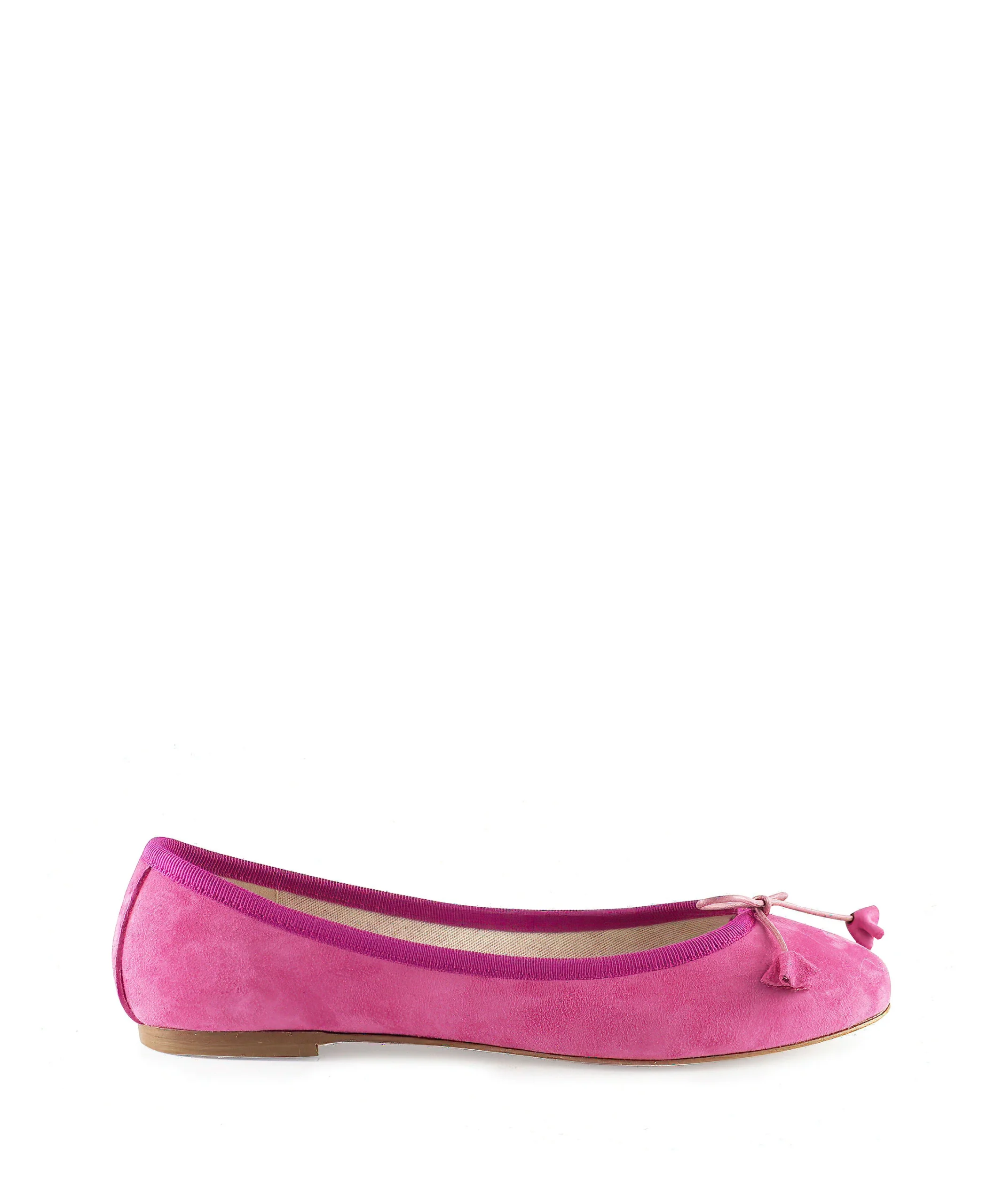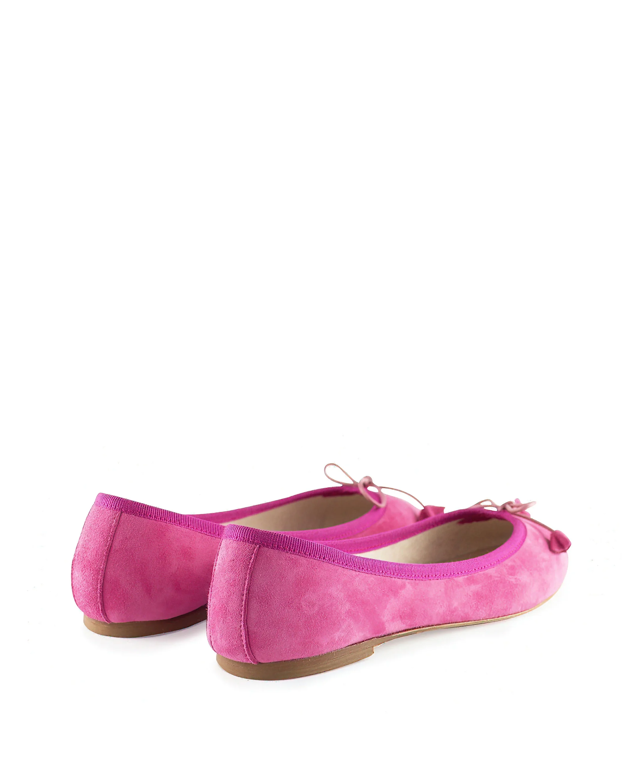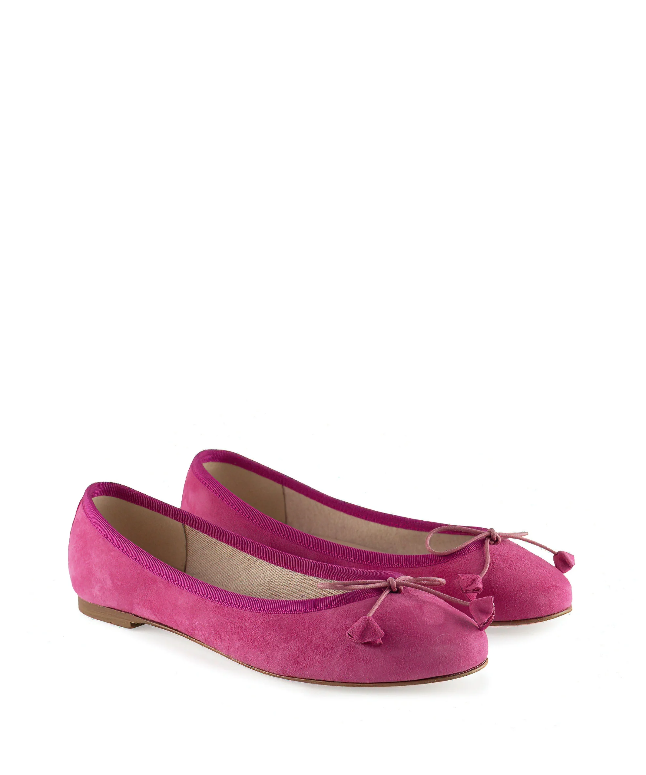 Ballerina da donna in camoscio fuxia con fiocchetto sul puntale. La morbida pelle scamosciata abbraccia delicatamente il piede, offrendo comfort e traspirabilità durante tutto il giorno. La suola delle ballerine donna è sottile e flessibile e consente una naturale libertà di movimento.
