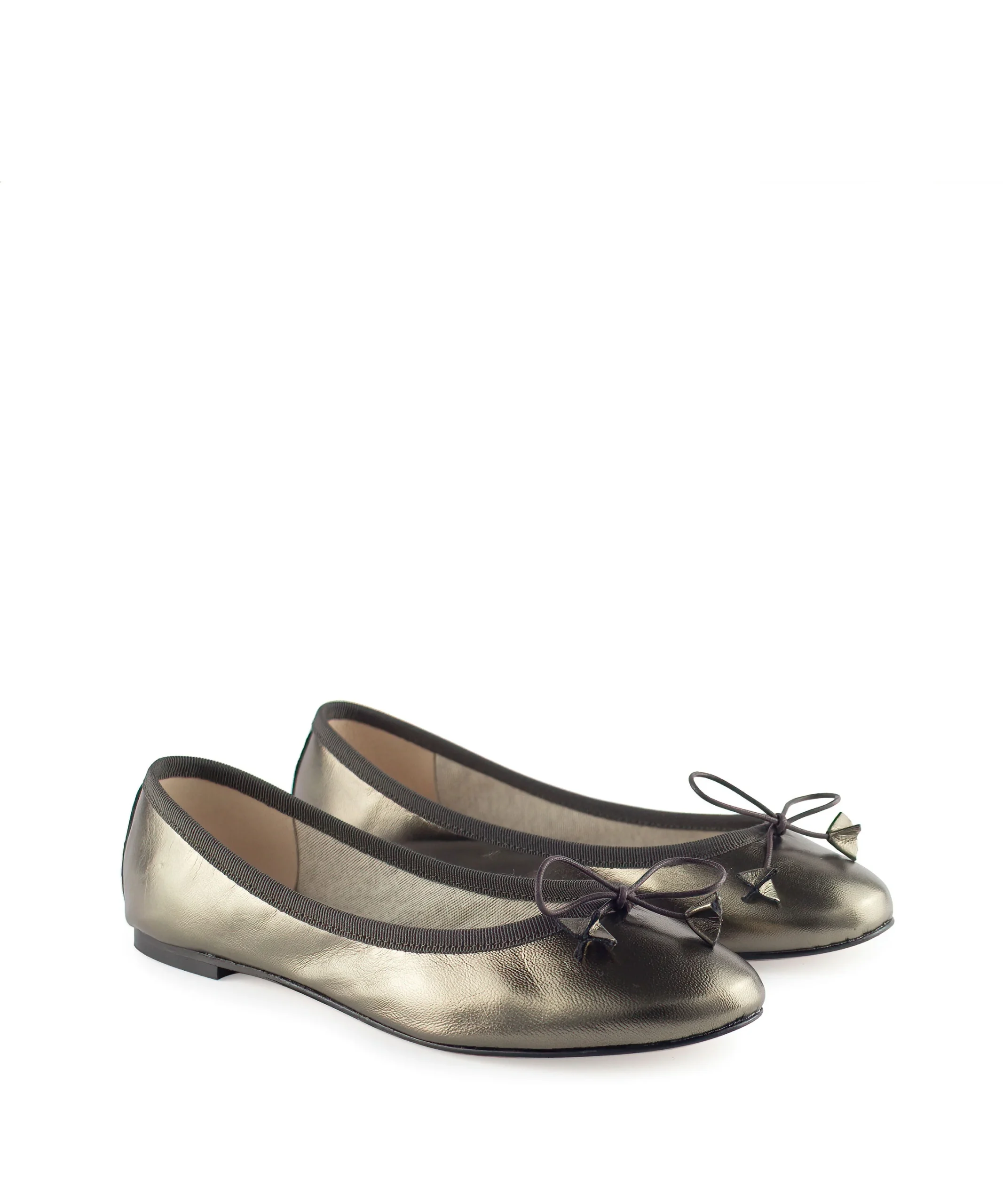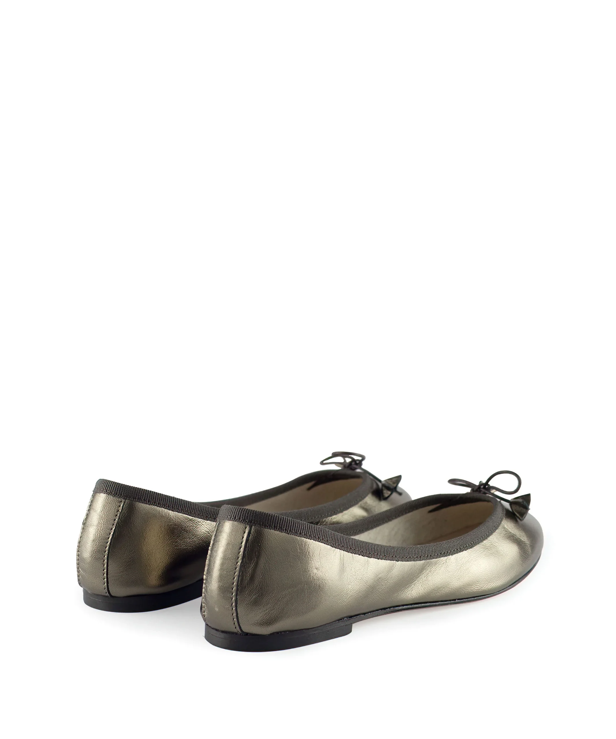 Ballerina da donna effetto laminato con un fiocchetto sulla punta. Queste ballerine sono disponibili in tanti colori e sono realizzate artigianalmente in Italia. La suola delle ballerine donna è leggera e flessibile e consente una camminata naturale, mentre il sottile profilo conferisce un tocco di raffinatezza al look. Ballerina con fiocco in laminato color grigio scuro.