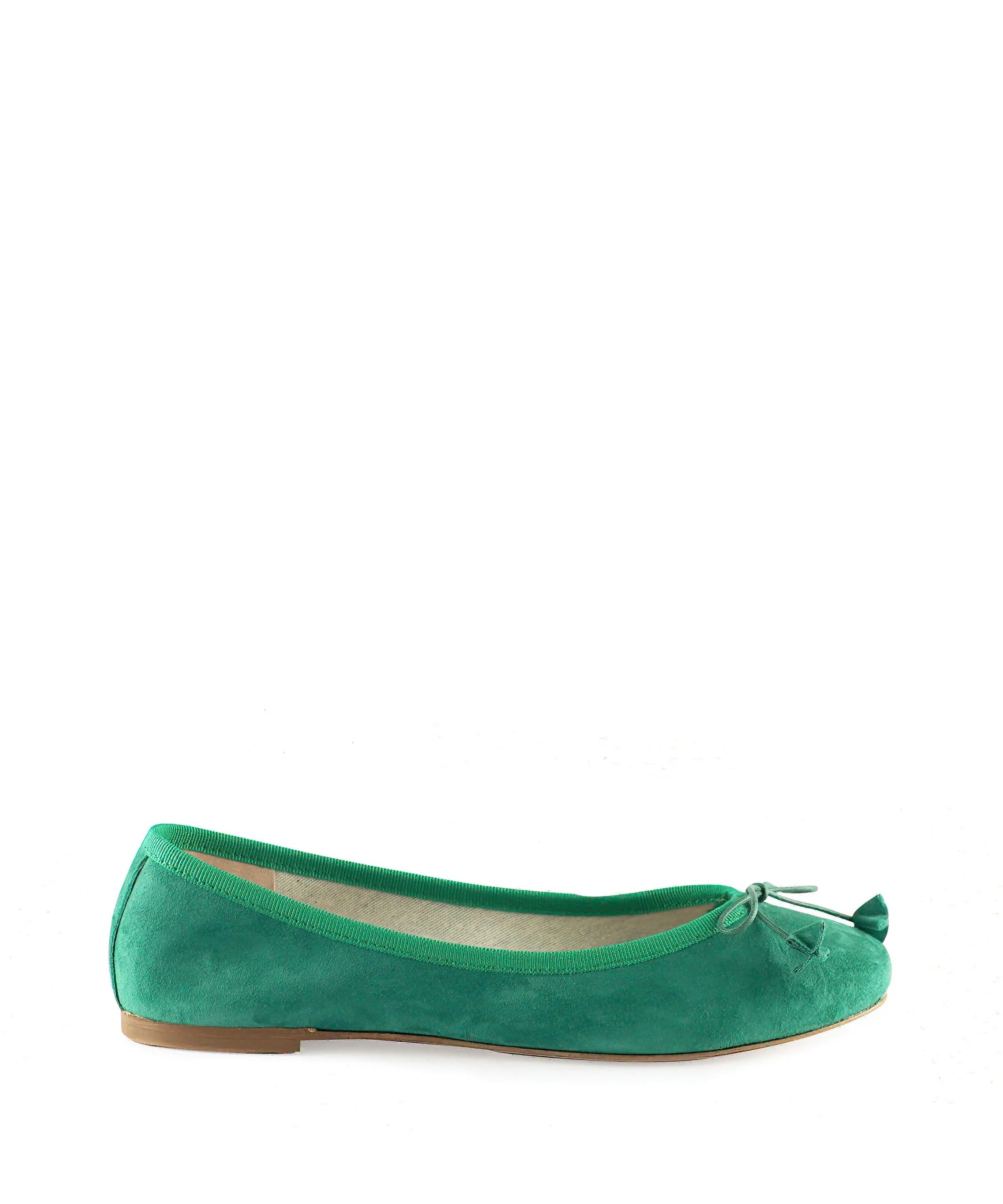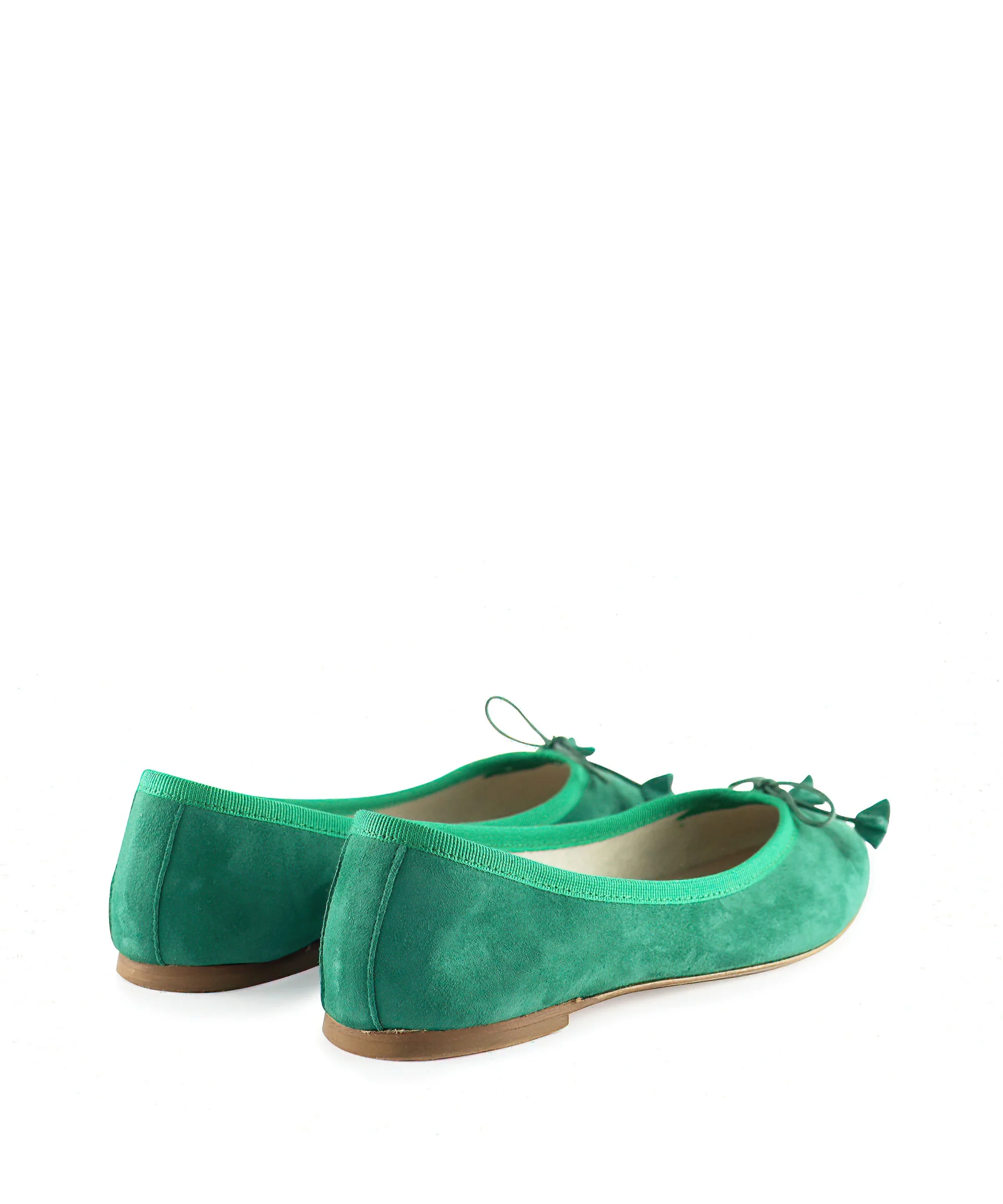 Ballerine donna in camoscio semplice con fiocchetto sul puntale. La morbida pelle scamosciata abbraccia delicatamente il piede, offrendo comfort e traspirabilità durante tutto il giorno. La suola delle ballerine donna è sottile e flessibile e consente una naturale libertà di movimento. Ballerine da donna color verde smeraldo.