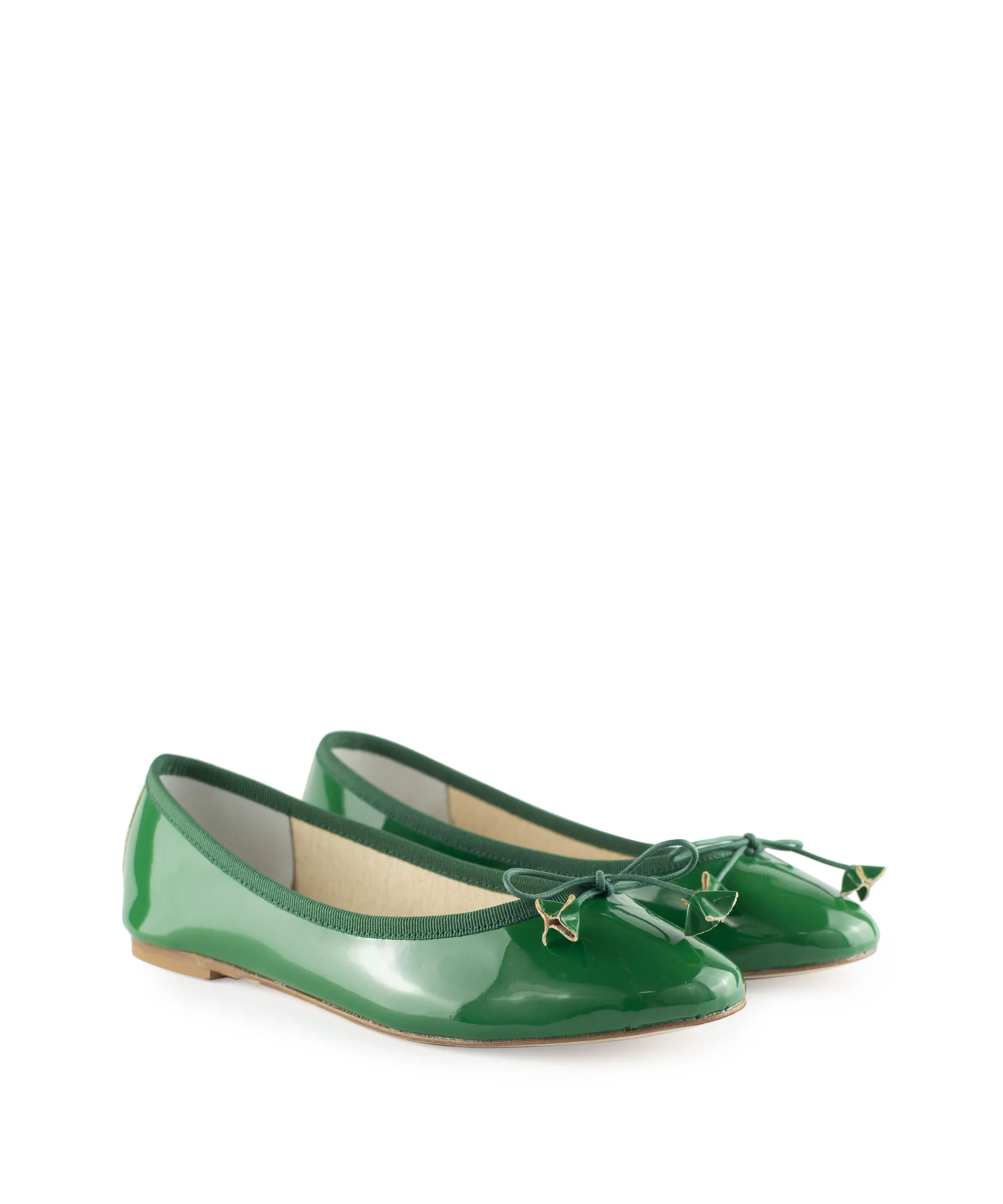 Ballerine donna in vernice con un delicato fiocchetto sul puntale. Queste ballerine donna sono realizzate artigianalmente con una combinazione di materiali di qualità. La suola in vera pelle assicura una camminare leggera tutto il giorno. Ballerine da donna verdi.