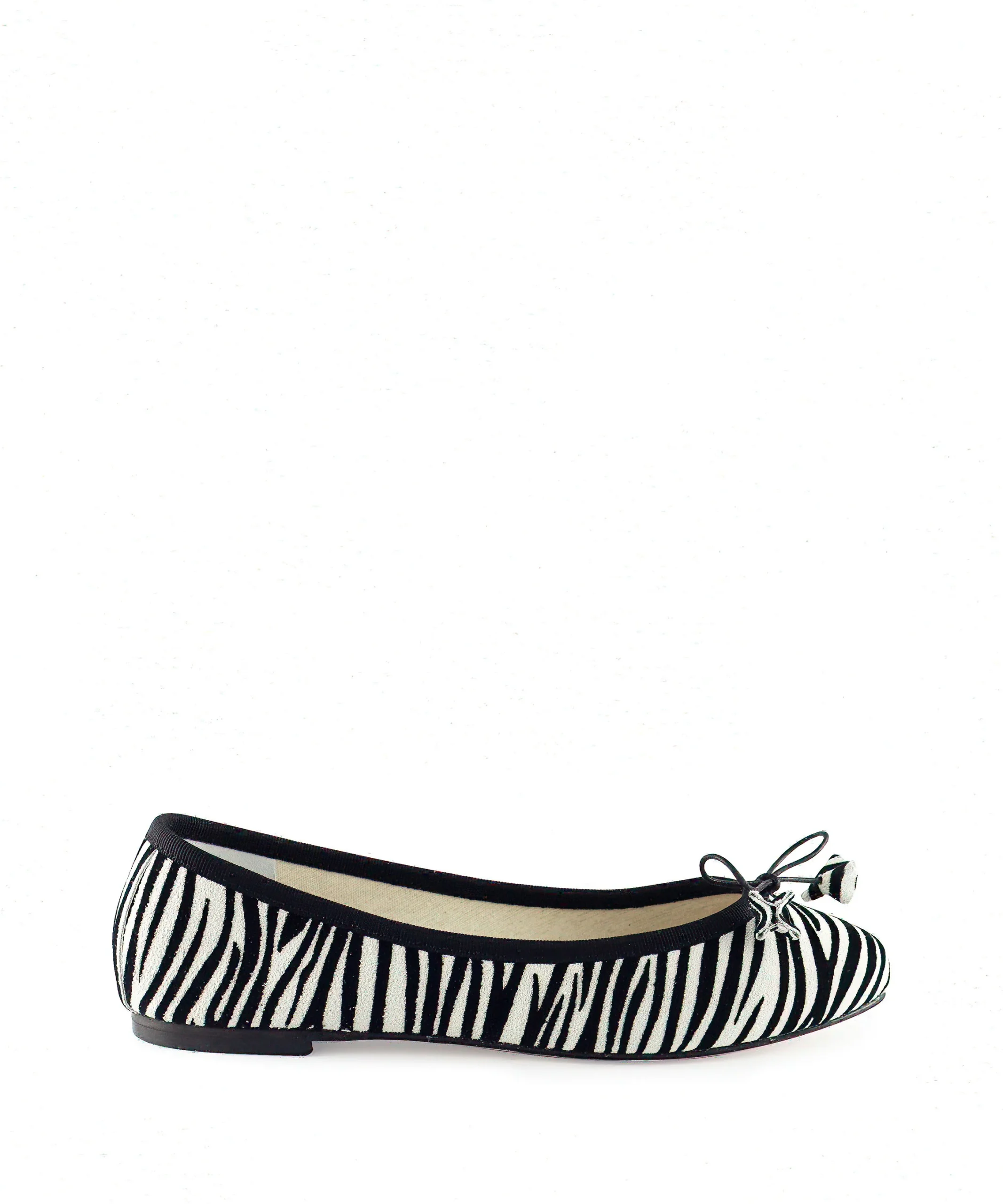 Ballerine donna in camoscio semplice con fiocchetto sul puntale. La morbida pelle scamosciata abbraccia delicatamente il piede, offrendo comfort e traspirabilità durante tutto il giorno. La suola delle ballerine donna è sottile e flessibile e consente una naturale libertà di movimento. Ballerine da donna zebrate.