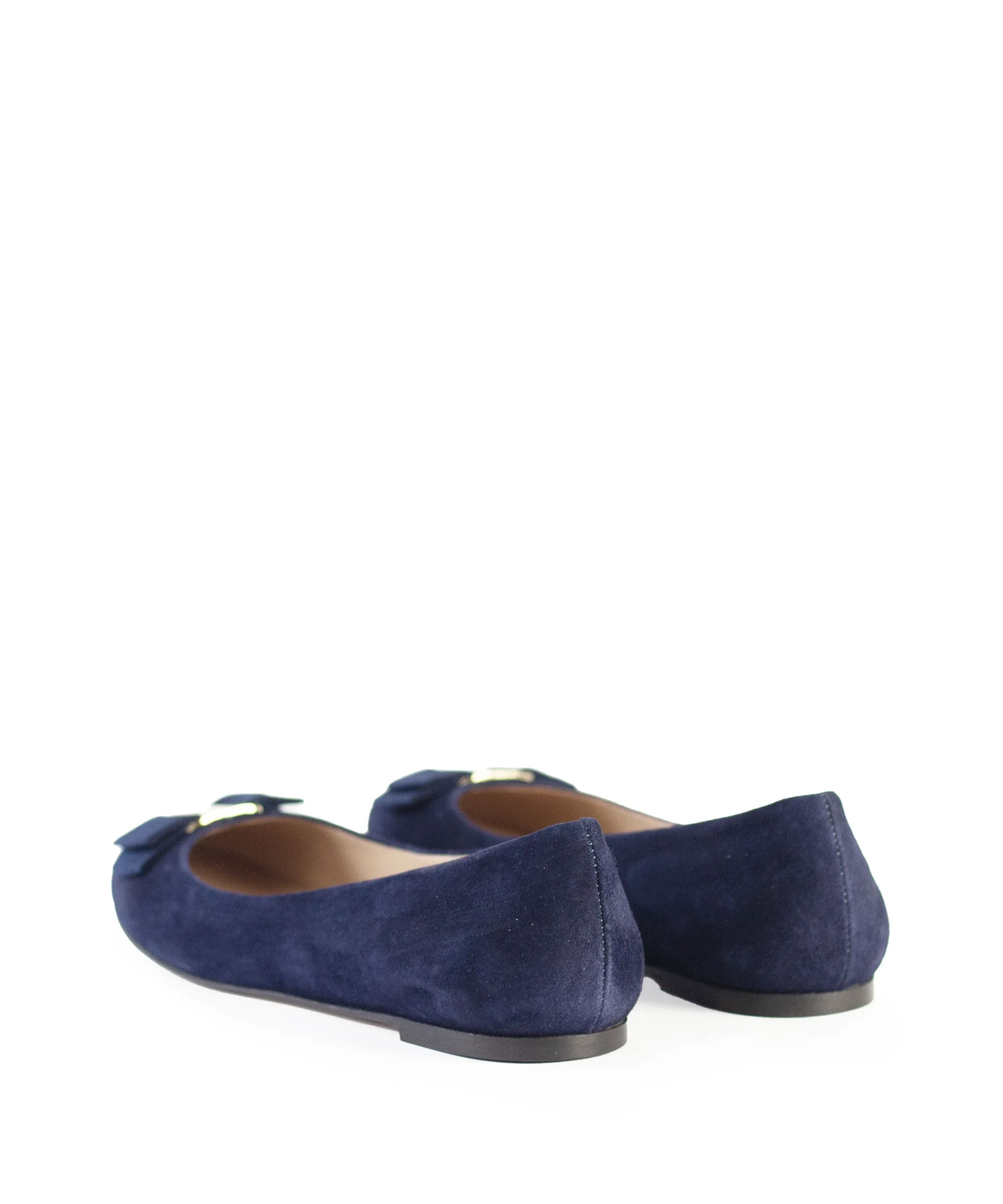 Ballerine donna in camoscio con fiocchetto con placca metallica sul puntale. Queste ballerine sono state realizzate con cura artigianale e presentano una silhouette senza tempo e un design minimalista. Ballerine da donna blu in camoscio. La ballerina donna in camoscio è disponibile in tante altre varianti colore.