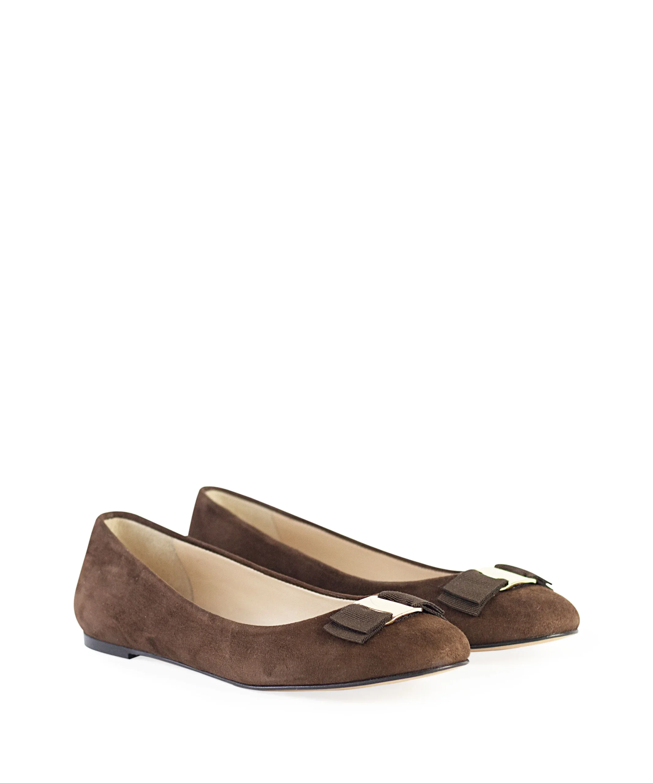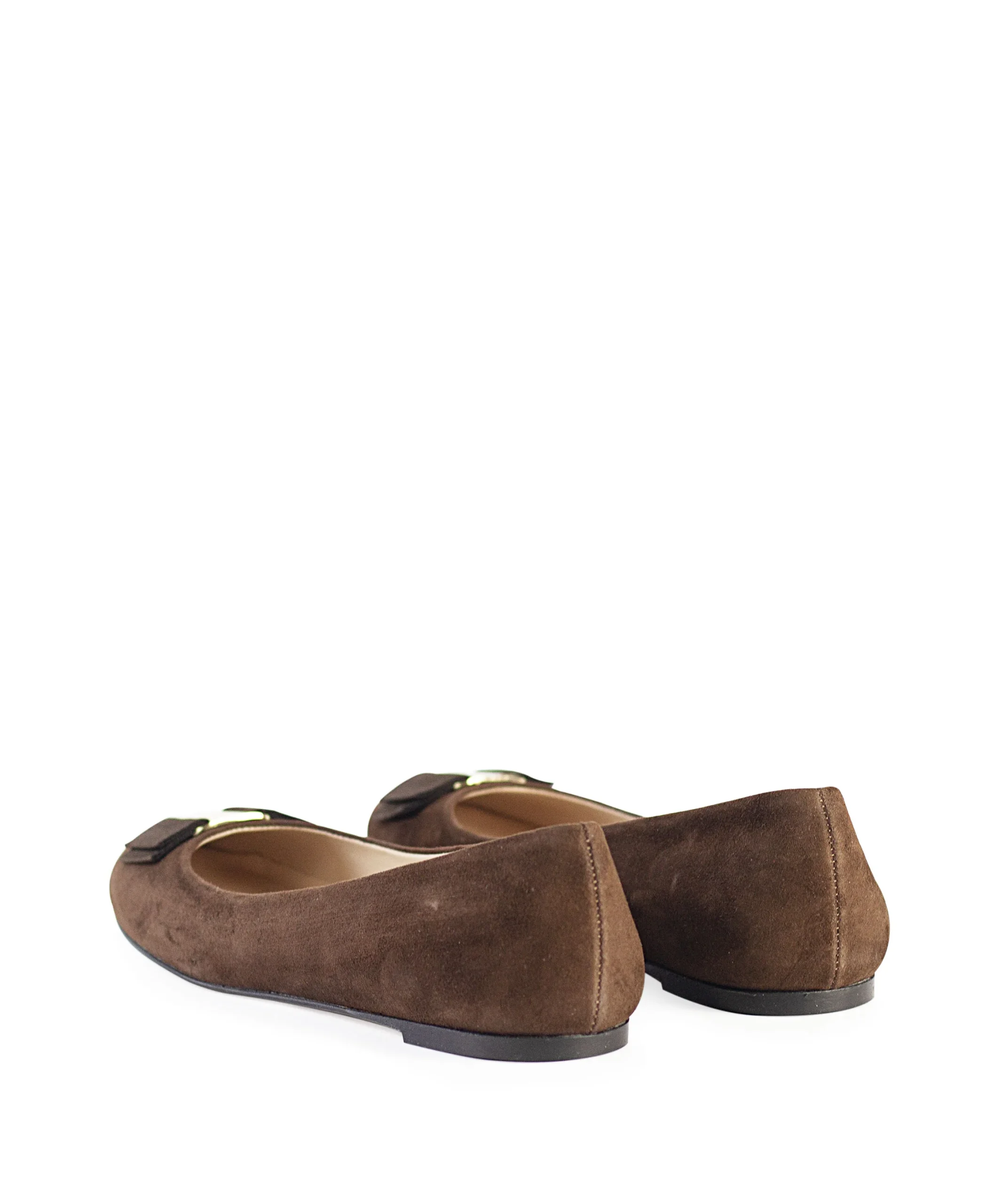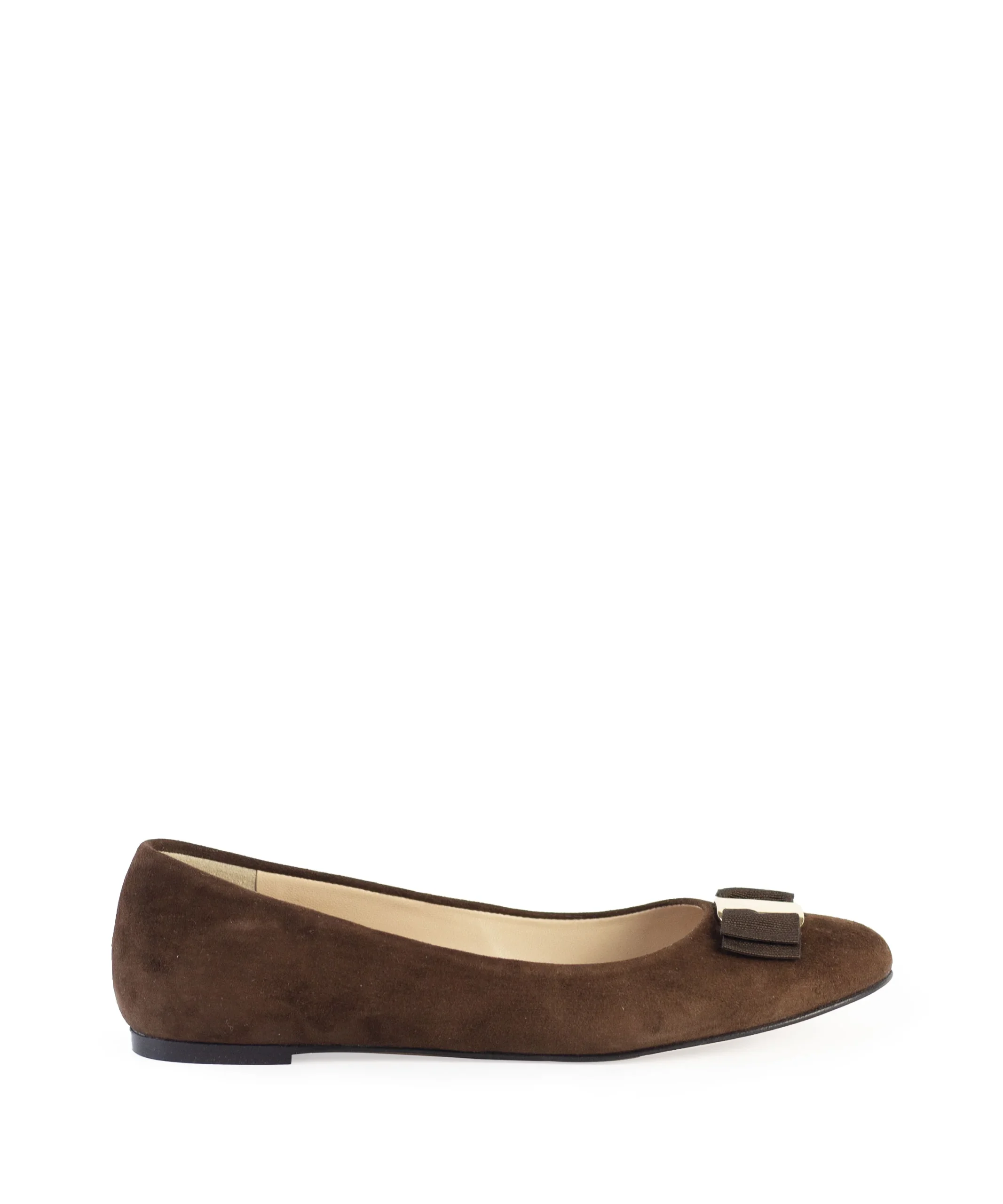 Ballerine donna in camoscio con fiocchetto con placca metallica sul puntale. Queste ballerine sono state realizzate con cura artigianale e presentano una silhouette senza tempo e un design minimalista. Ballerine da donna color testa di moro in camoscio. La ballerina donna in camoscio è disponibile in tante altre varianti colore.