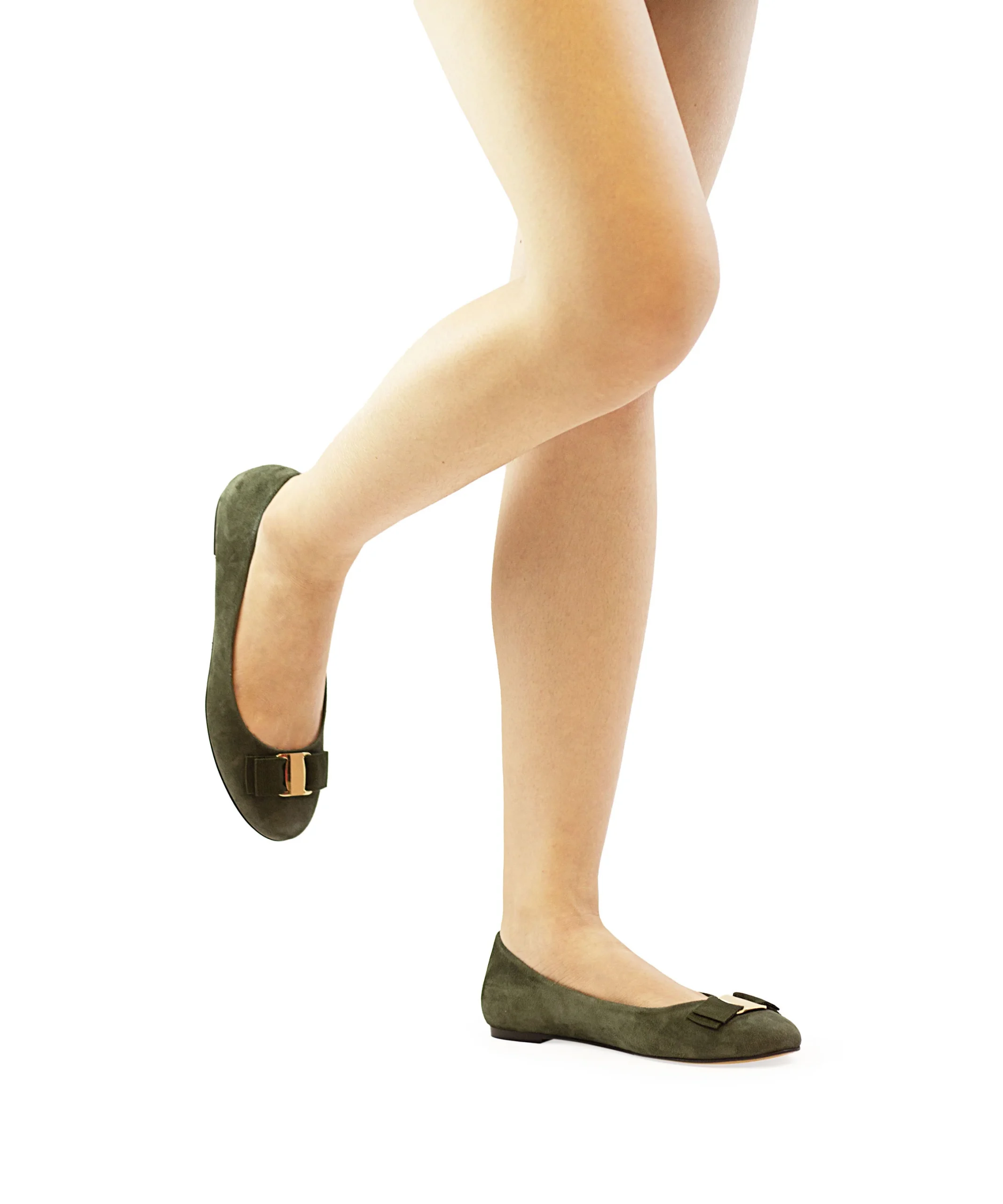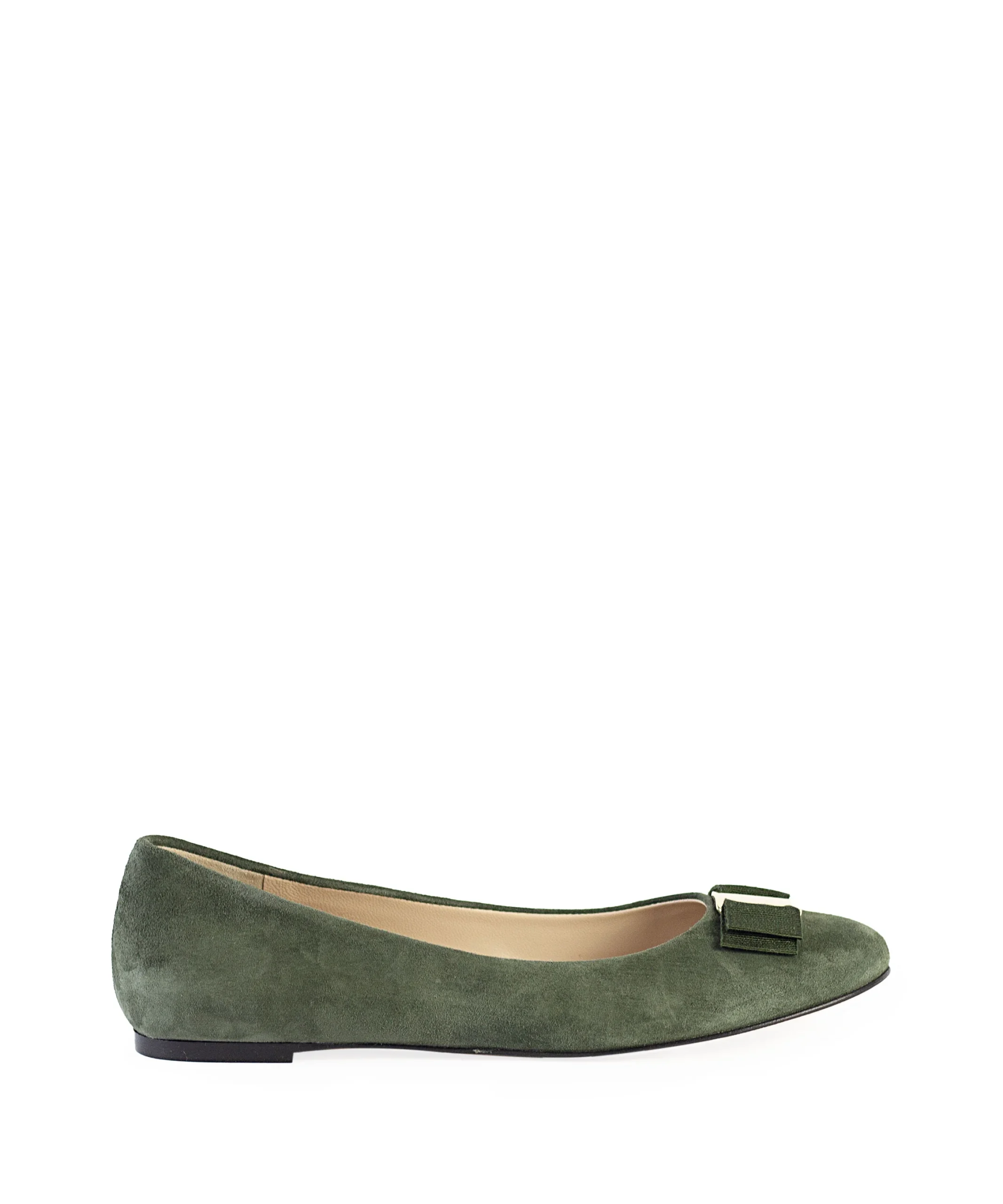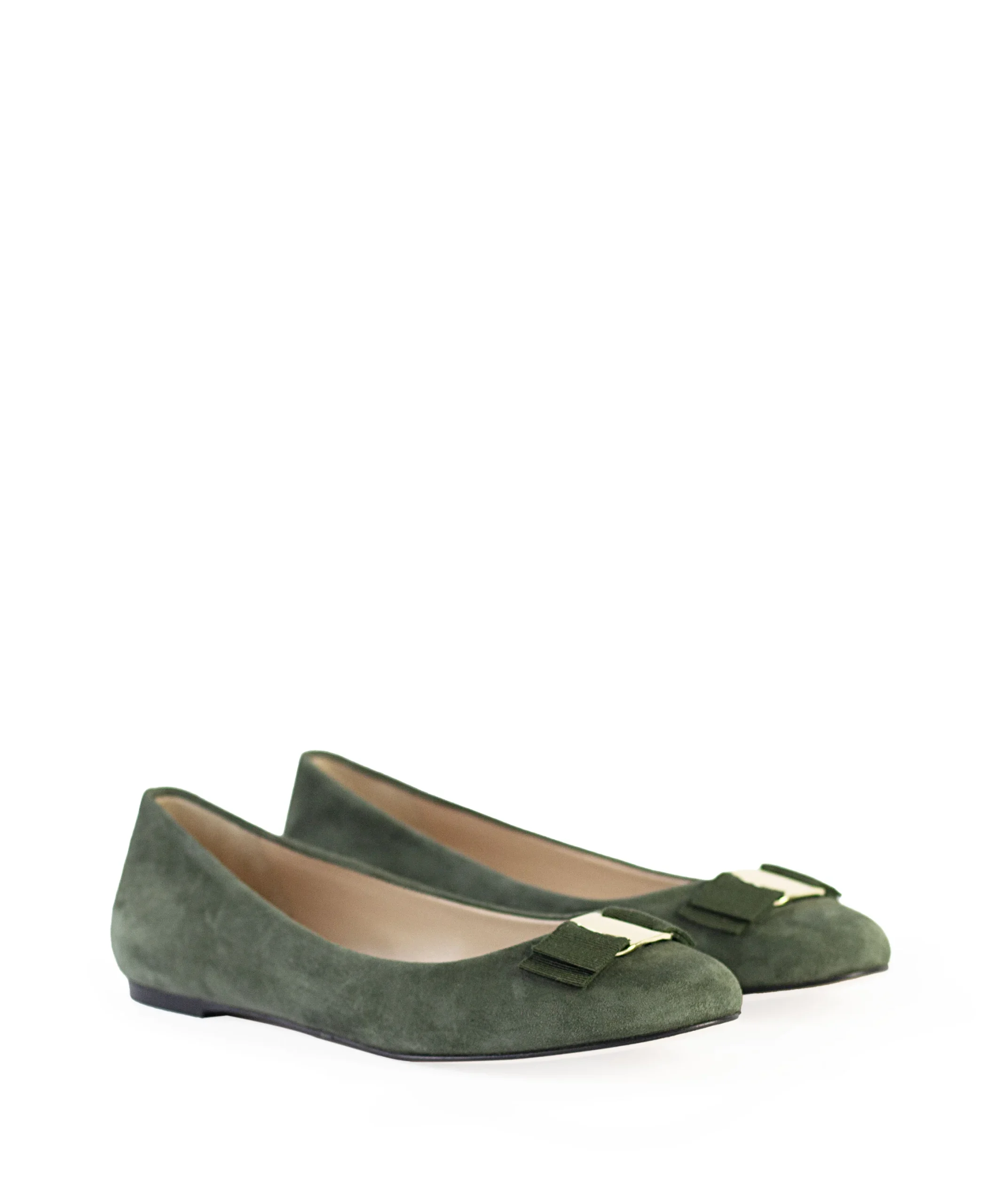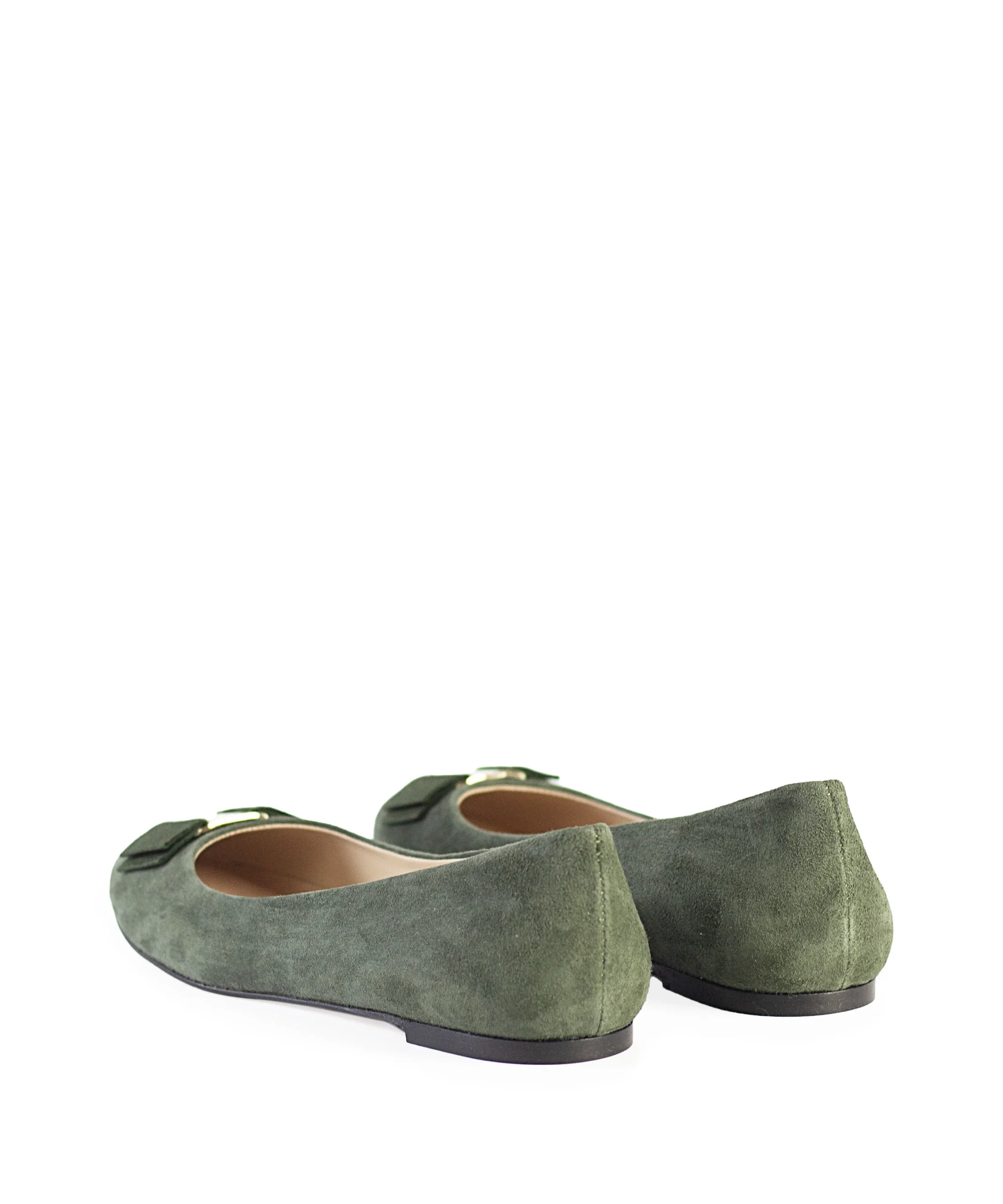 Ballerine donna in camoscio con fiocchetto con placca metallica sul puntale. Queste ballerine sono state realizzate con cura artigianale e presentano una silhouette senza tempo e un design minimalista. Ballerine da donna verdi in camoscio. La ballerina donna in camoscio è disponibile in tante altre varianti colore.