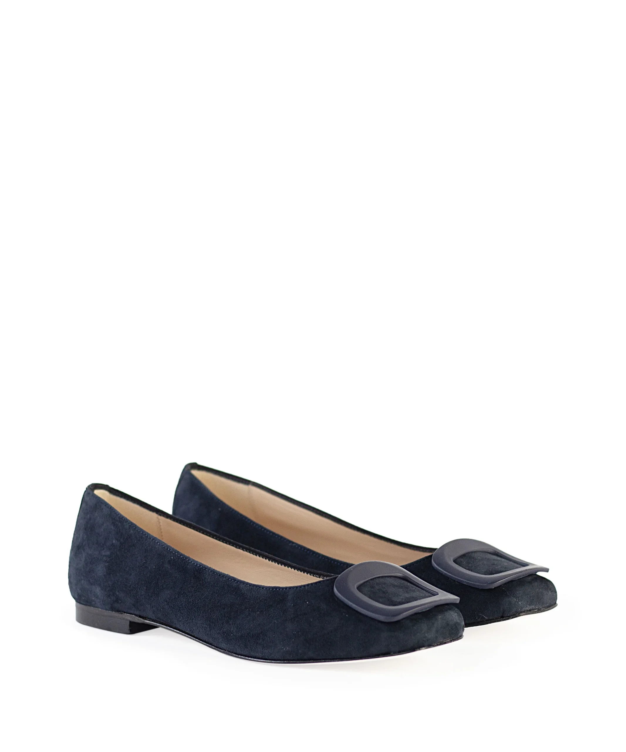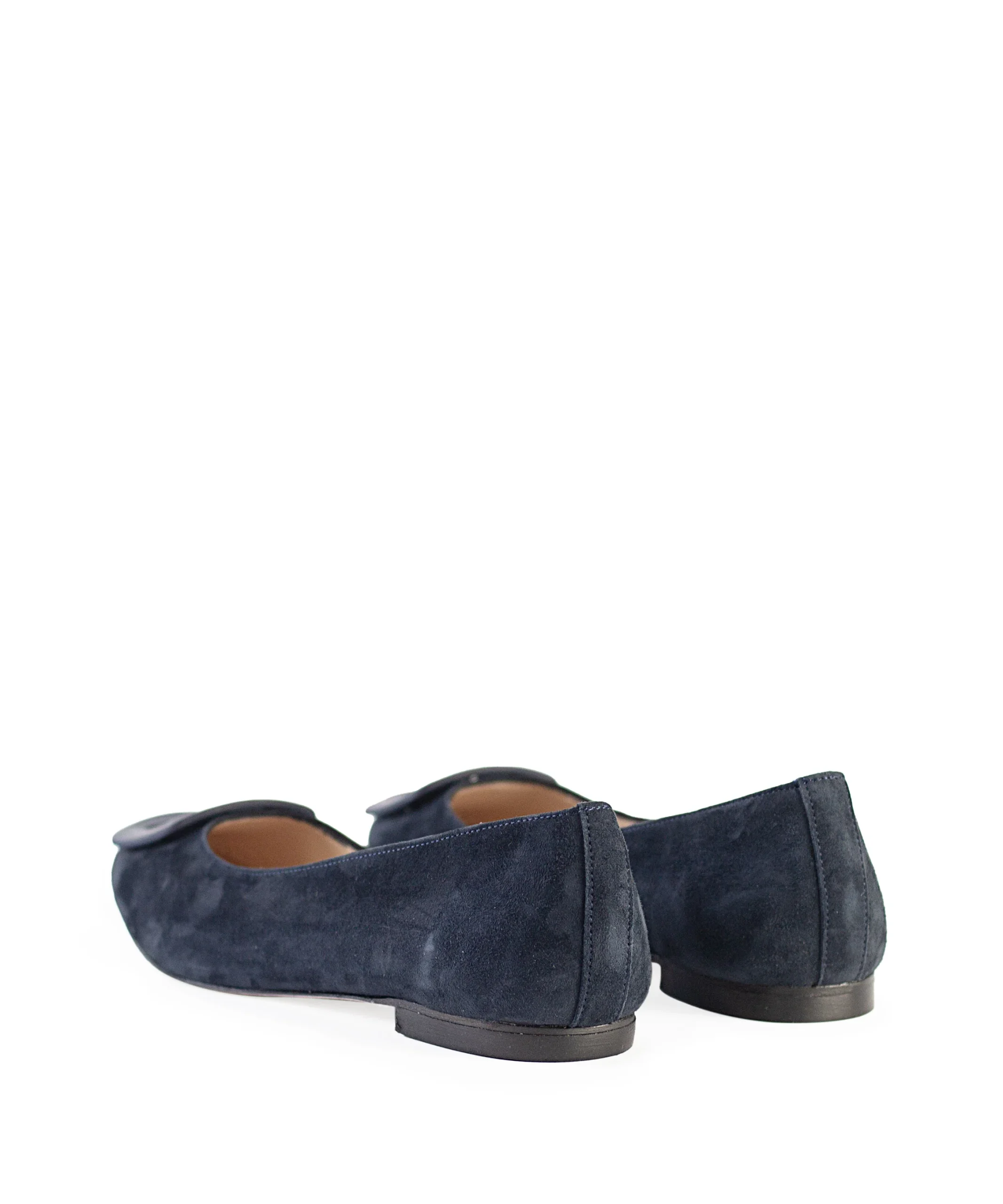 Ballerine donna in camoscio dallo stile contemporaneo e raffinato. Con la loro punta quadrata e la fibbia decorativa sul puntale, queste ballerine catturano l’attenzione con un tocco di eleganza audace. Ballerine da donna blu.