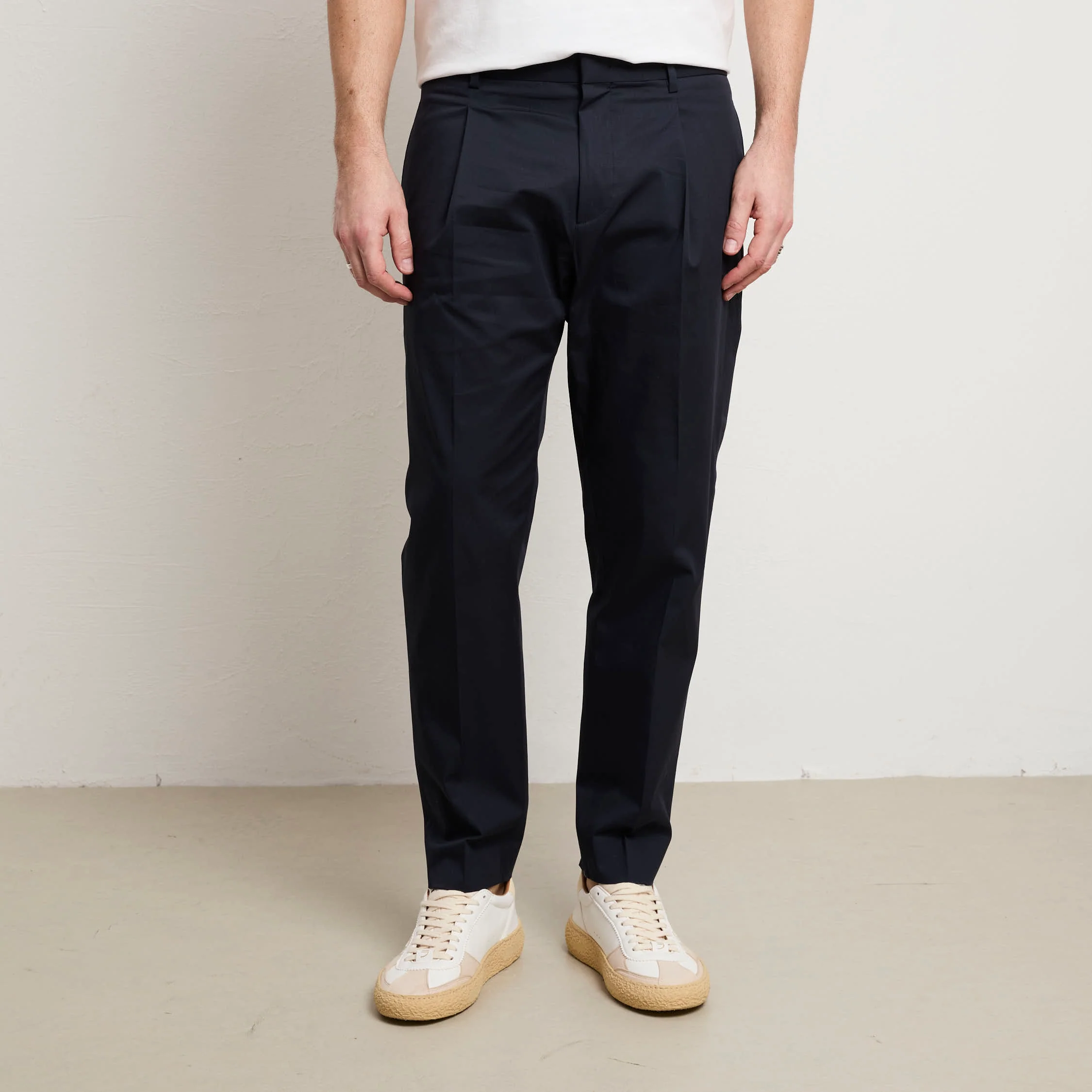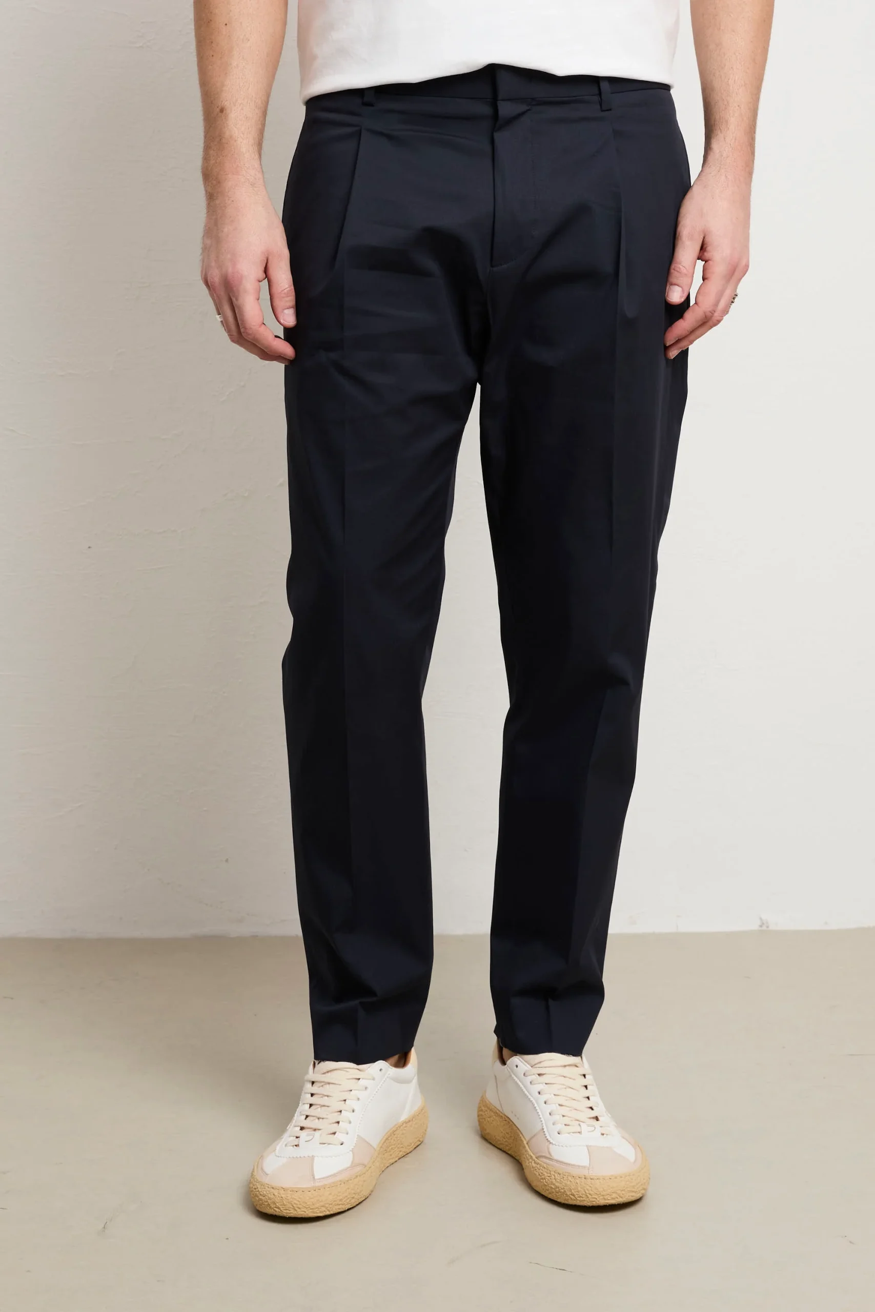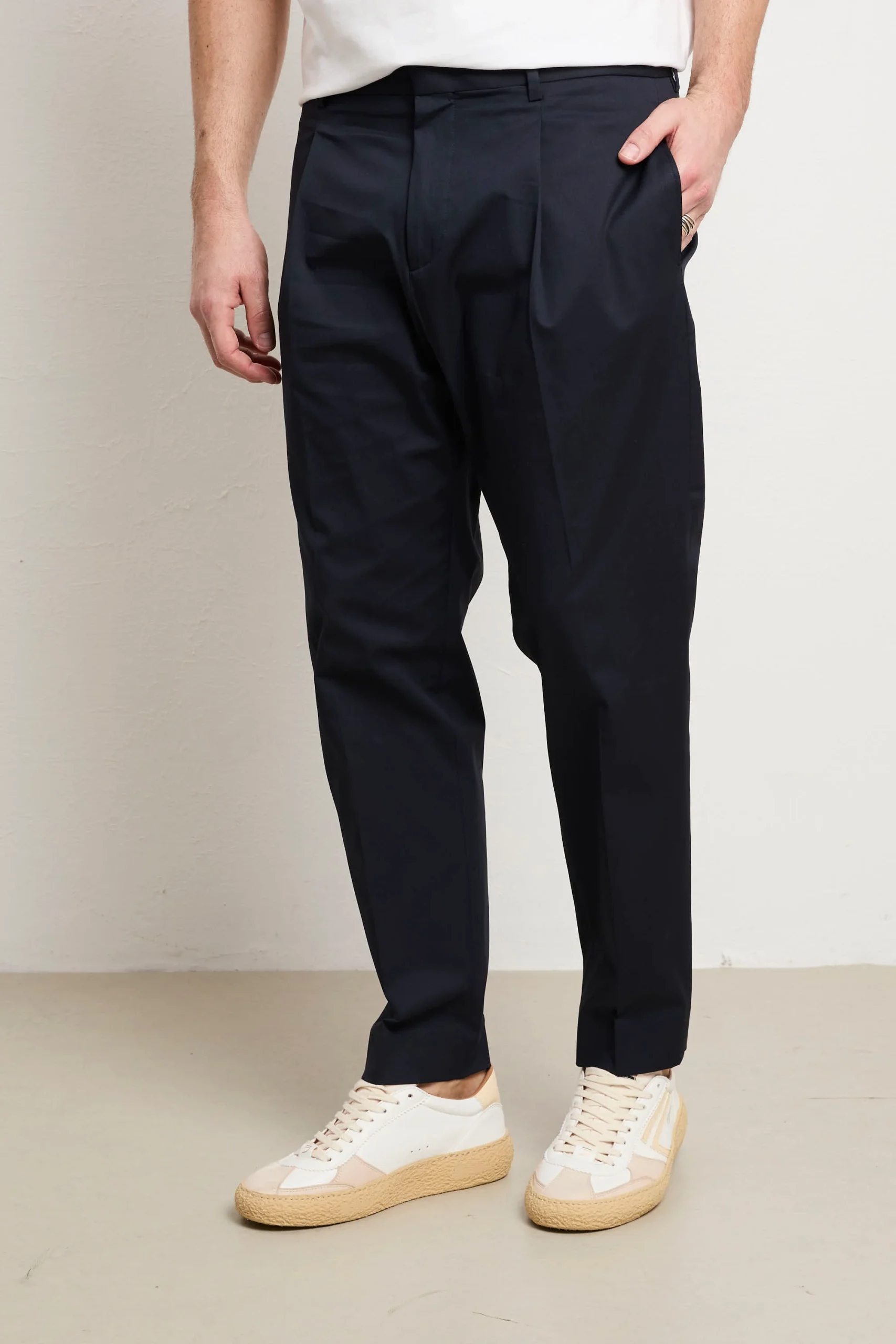 Un capo indispensabile che trasforma il tuo modo di vestire con eleganza consapevole. Questo chino fonde comfort e stile in una silhouette intramontabile, adatto a ogni contesto della tua giornata, dal lavoro ai momenti di svago. Realizzato con cotone di eccellente qualità , assicura una comodità senza pari e una mobilità naturale che non compromette la forma originale del pantalone. Le pinces creano una caduta perfetta e definita, mentre le tasche laterali dritte mantengono il design essenziale e sofisticato. Prodotto interamente in Italia, testimonia l’eccellenza costruttiva e l’artigianalità che caratterizzano i capi di vera qualità . Il blu è una tonalità raffinata e versatile che si combina senza sforzo con qualsiasi pezzo del tuo armadio, diventando un investimento consapevole nel tuo stile personale.