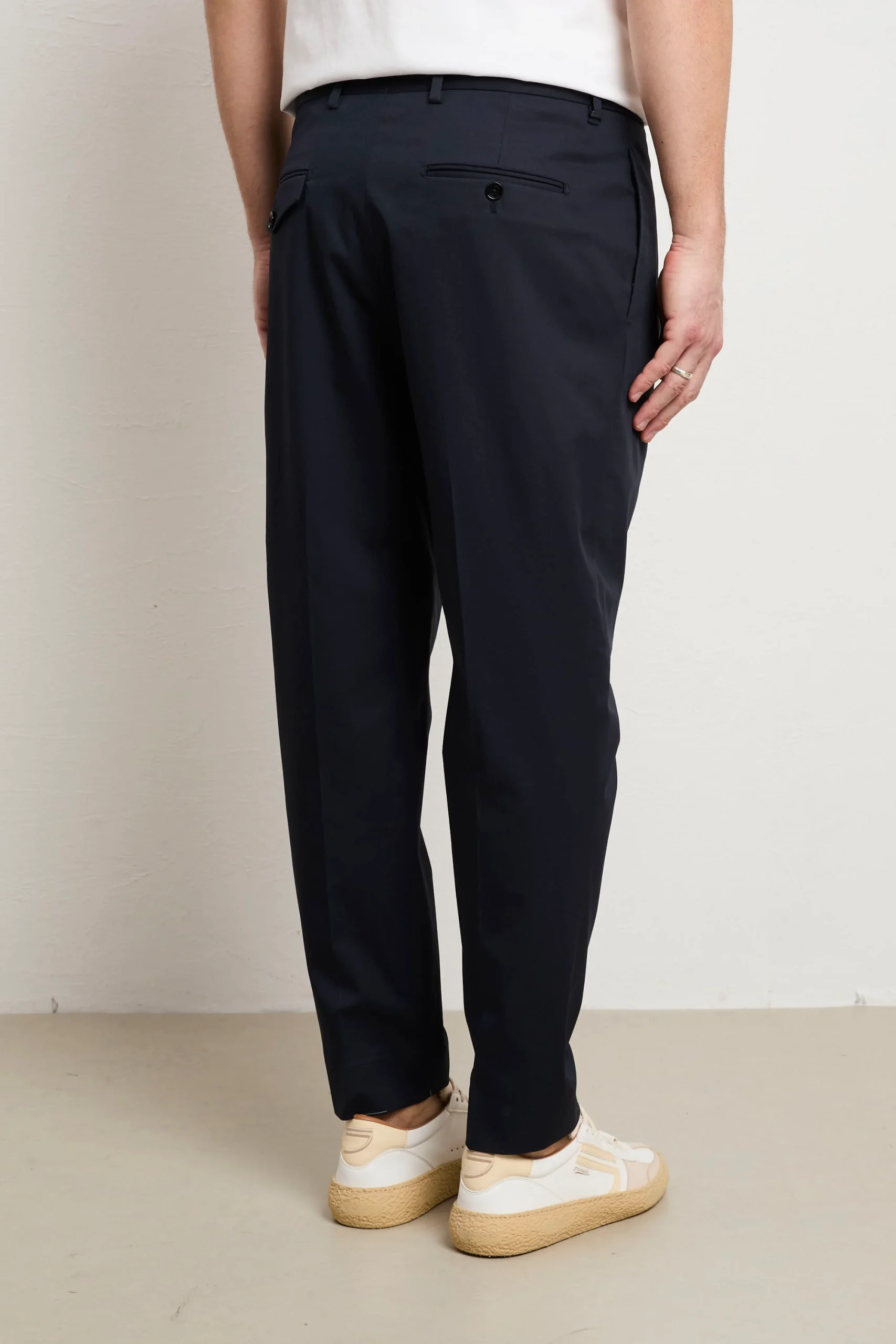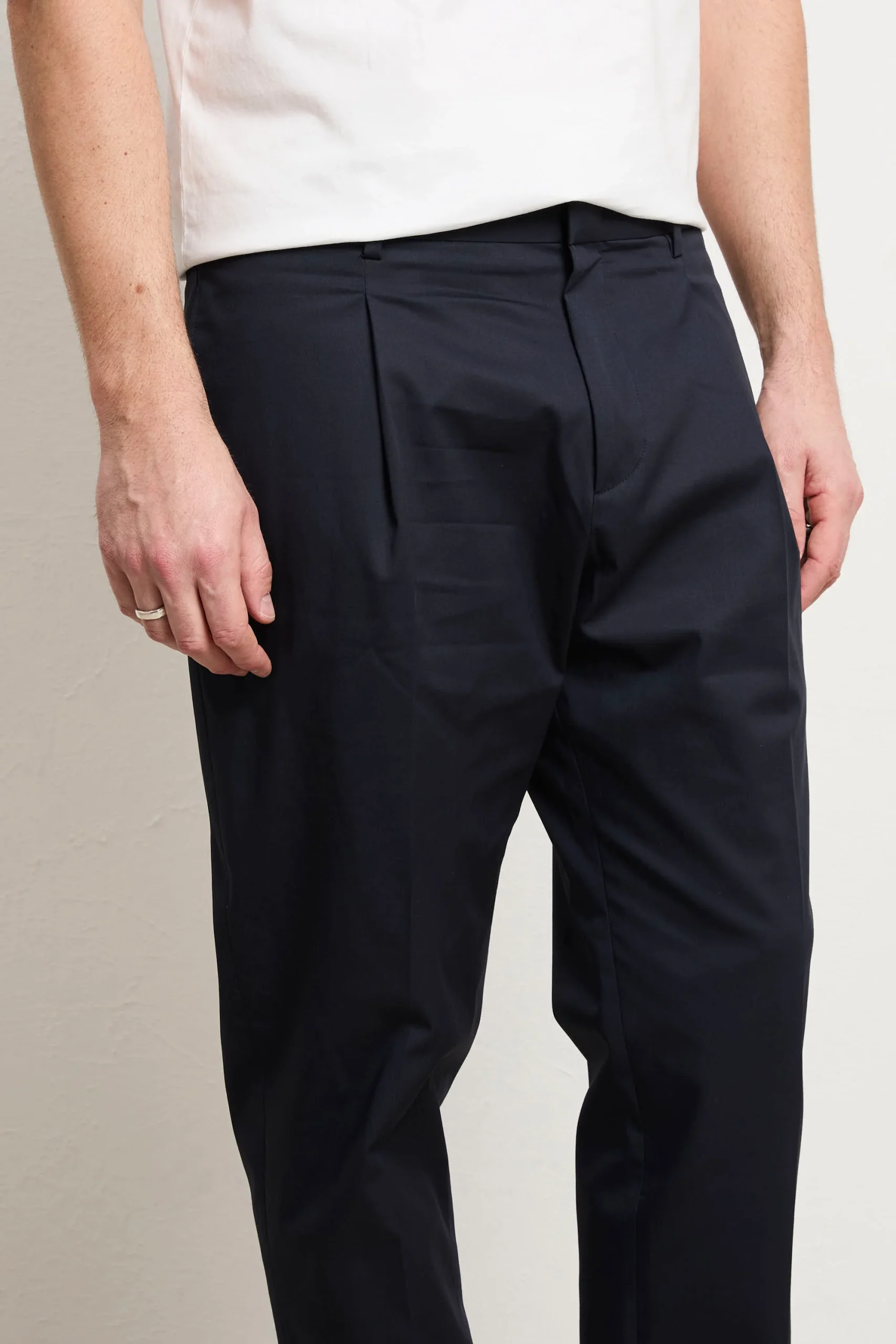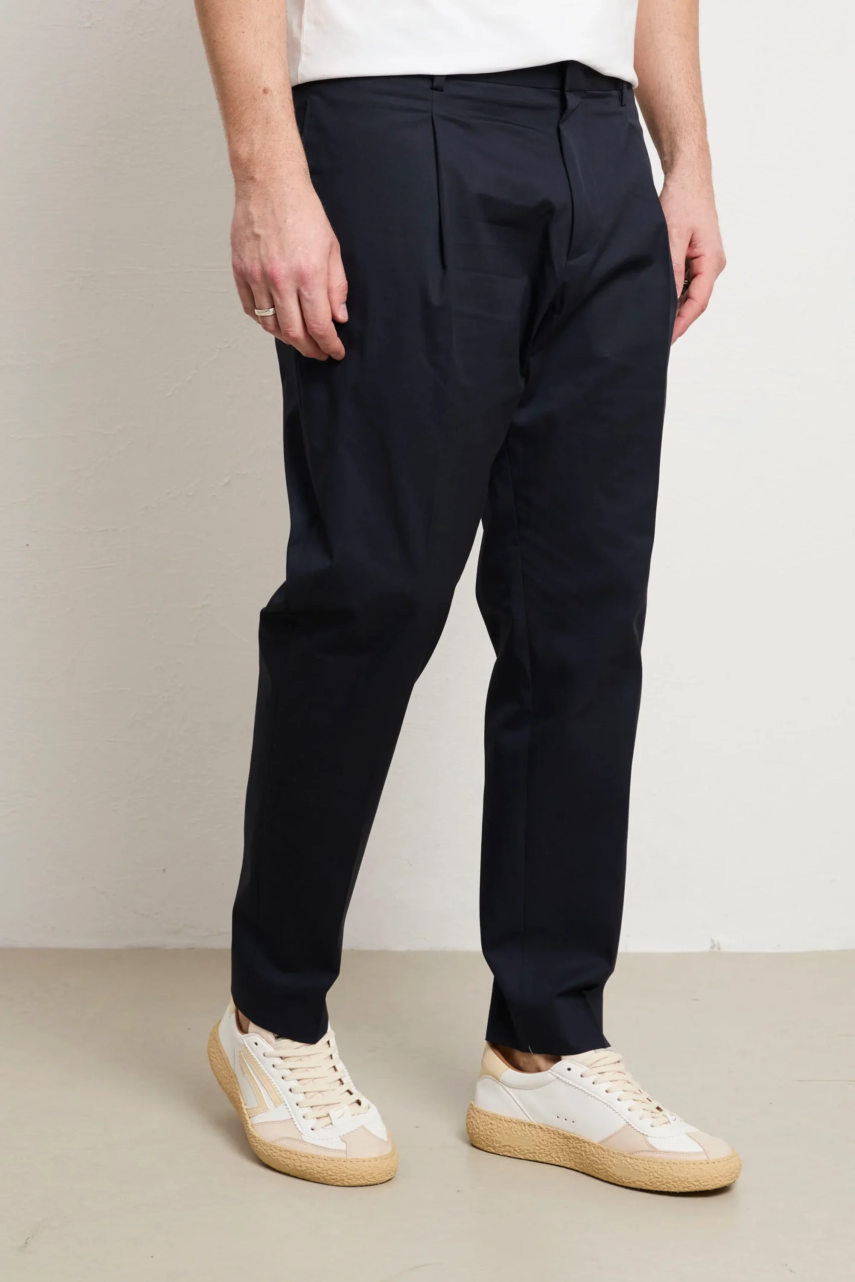 Un capo indispensabile che trasforma il tuo modo di vestire con eleganza consapevole. Questo chino fonde comfort e stile in una silhouette intramontabile, adatto a ogni contesto della tua giornata, dal lavoro ai momenti di svago. Realizzato con cotone di eccellente qualità , assicura una comodità senza pari e una mobilità naturale che non compromette la forma originale del pantalone. Le pinces creano una caduta perfetta e definita, mentre le tasche laterali dritte mantengono il design essenziale e sofisticato. Prodotto interamente in Italia, testimonia l’eccellenza costruttiva e l’artigianalità che caratterizzano i capi di vera qualità . Il blu è una tonalità raffinata e versatile che si combina senza sforzo con qualsiasi pezzo del tuo armadio, diventando un investimento consapevole nel tuo stile personale.