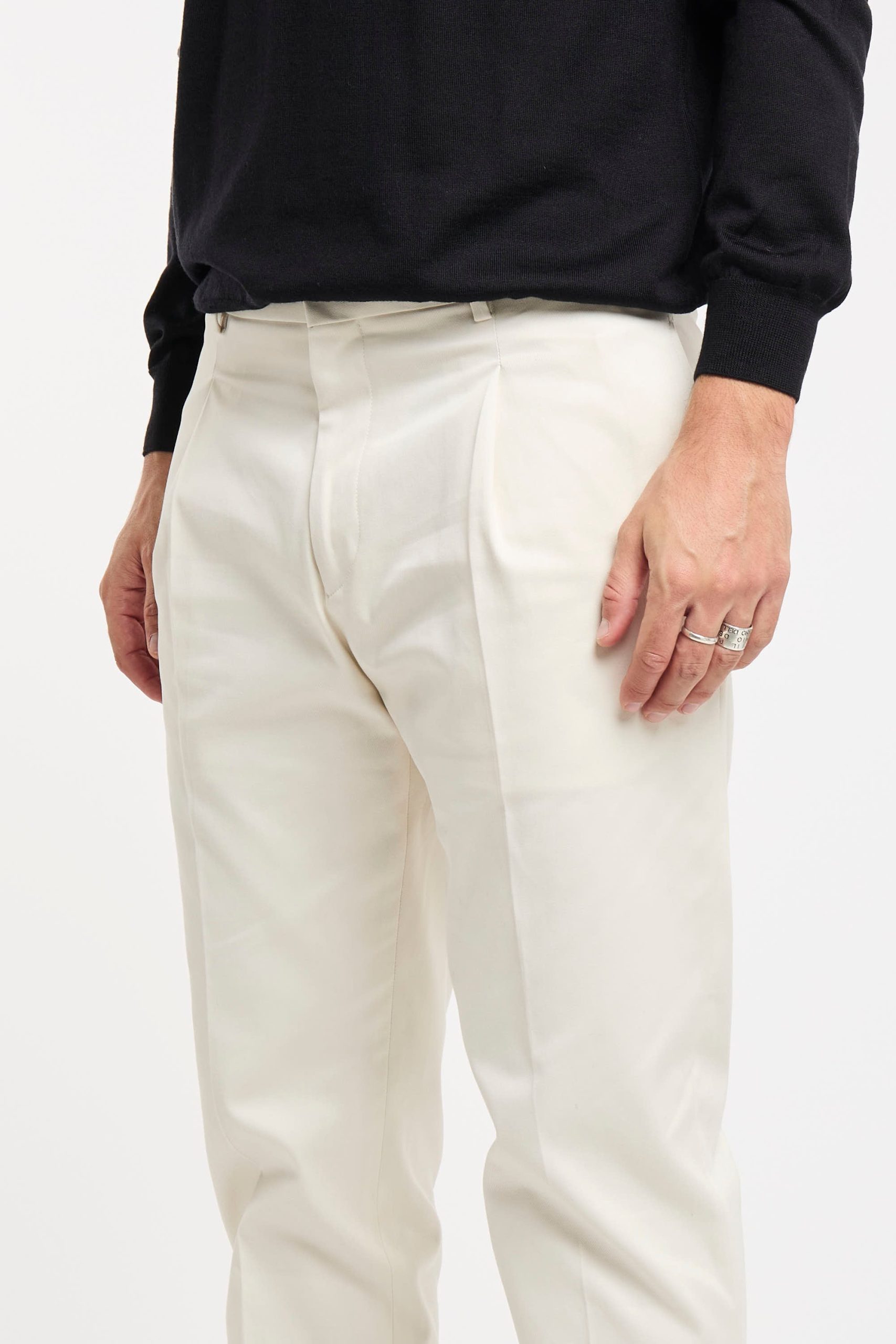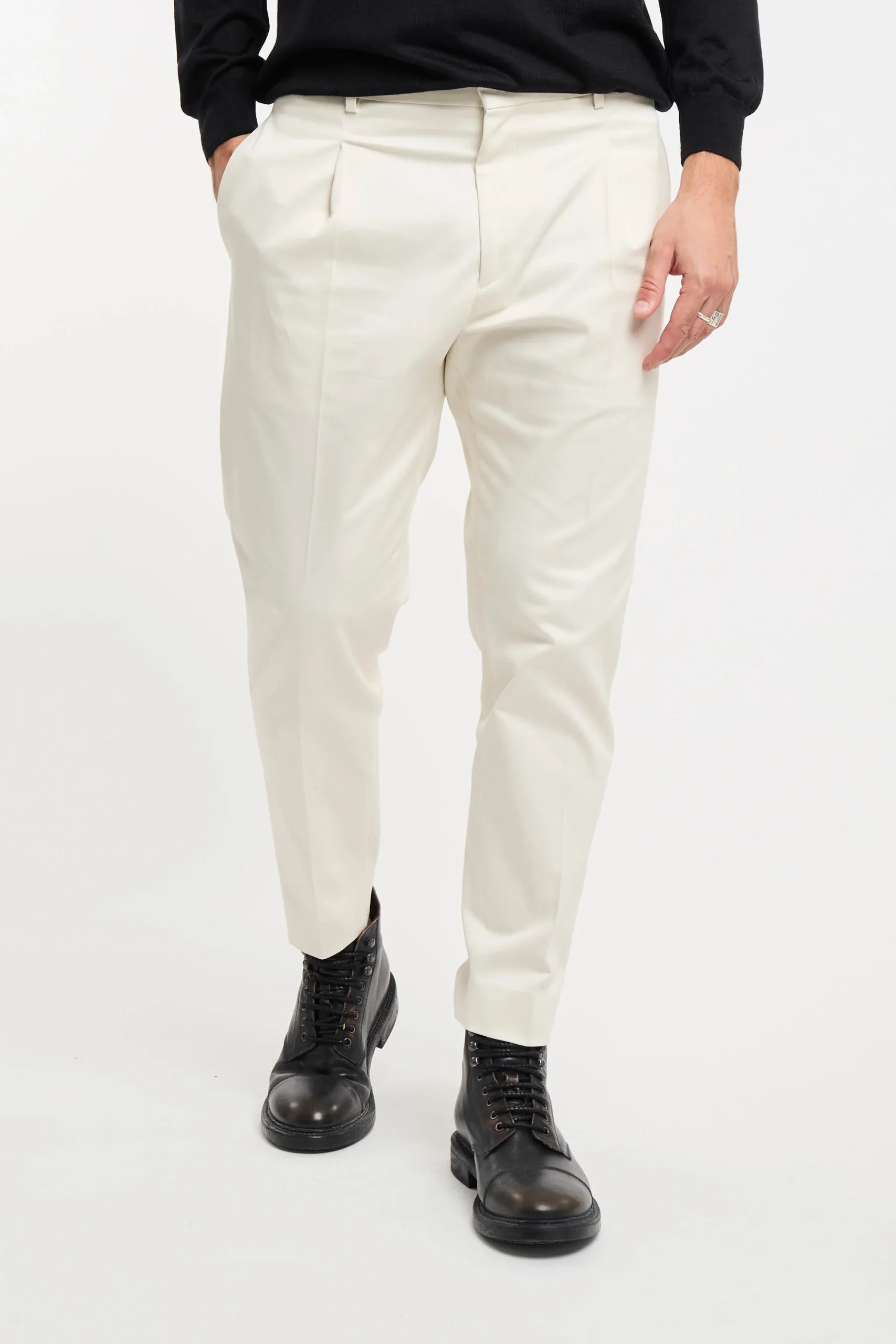 Pantalone in velluto a coste; Chiusura con la zip e gancio metallico; Pence; Due tasche a filo e due dietro con bottone; Passanti per cintura in vita; Gamba dritta che si ristringe in fondo; Logo in evidenza; Lunghezza alla caviglia; Made in Italy; Composizione: 98% Cotone, 2% Elastan; Larghezza fondo: 17,5 cm