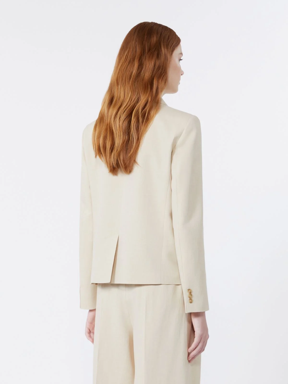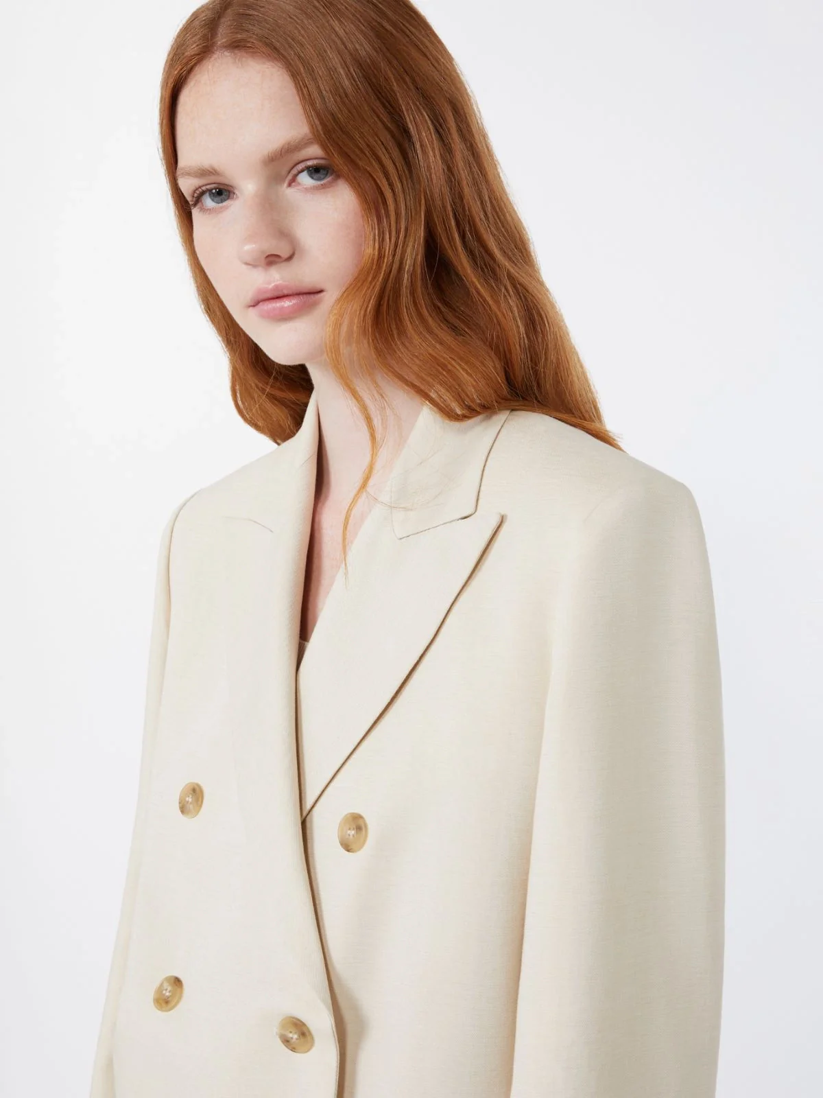 Blazer doppiopetto dalla linea dritta, caratterizzata da dettagli sartoriali.