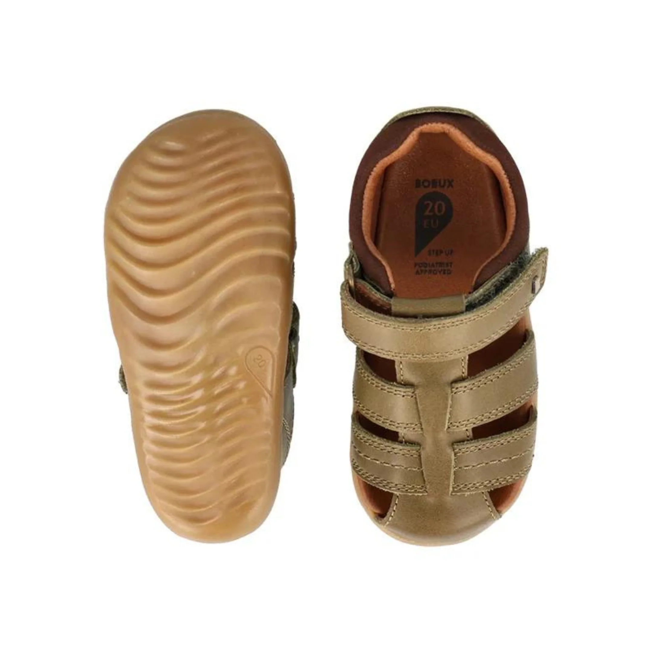 I Sandali Bobux Step Up Roam Olive rappresentano l’equilibrio perfetto tra funzionalità e stile per i primi passi dei bambini.