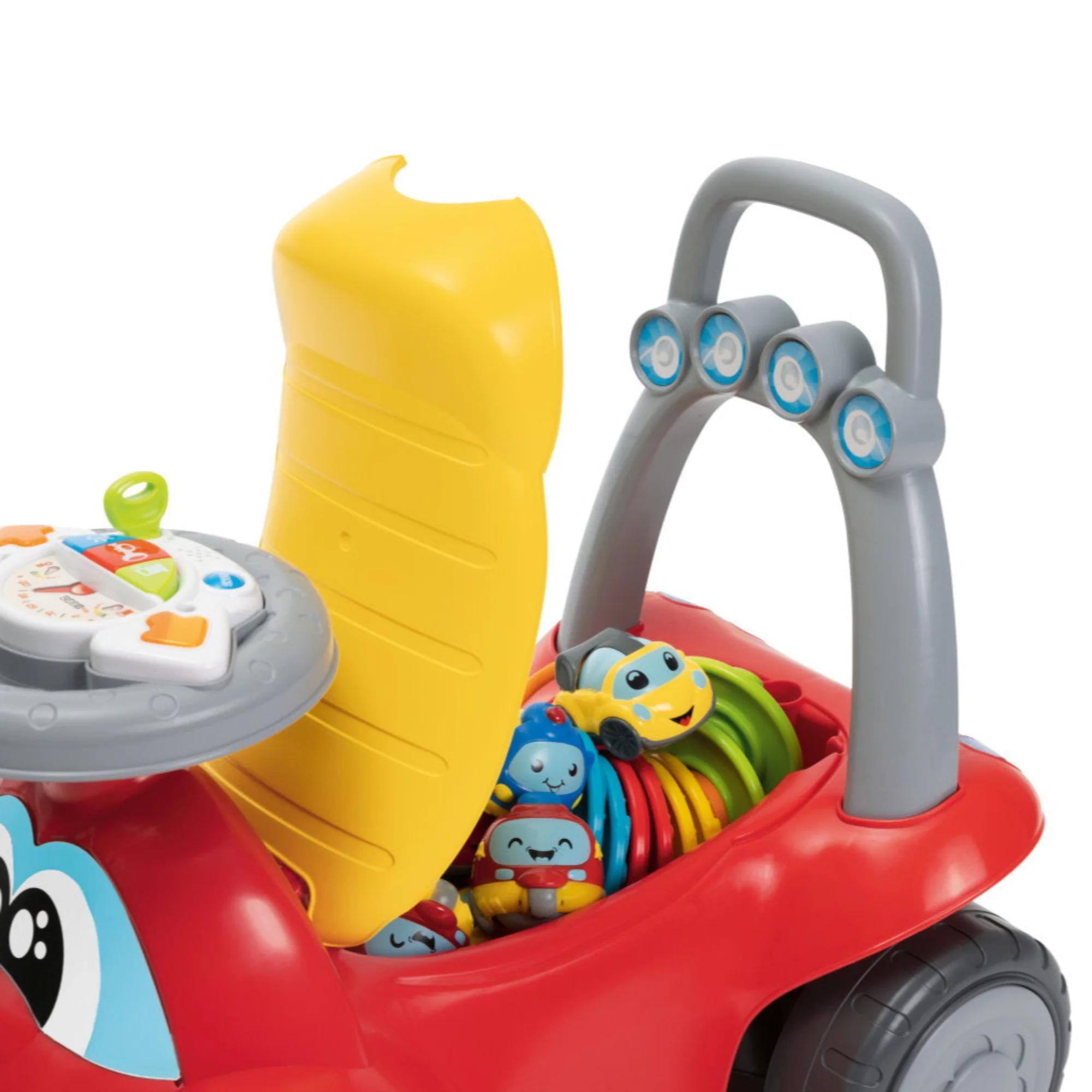 Billy Quattro di Chicco cresce insieme al tuo bambino: da dondolo a push-mama, fino a primi passi e cavalcabile. Un mondo di divertimento per accompagnarlo in ogni fase della sua crescita. Con centro attività elettronico sul volante.