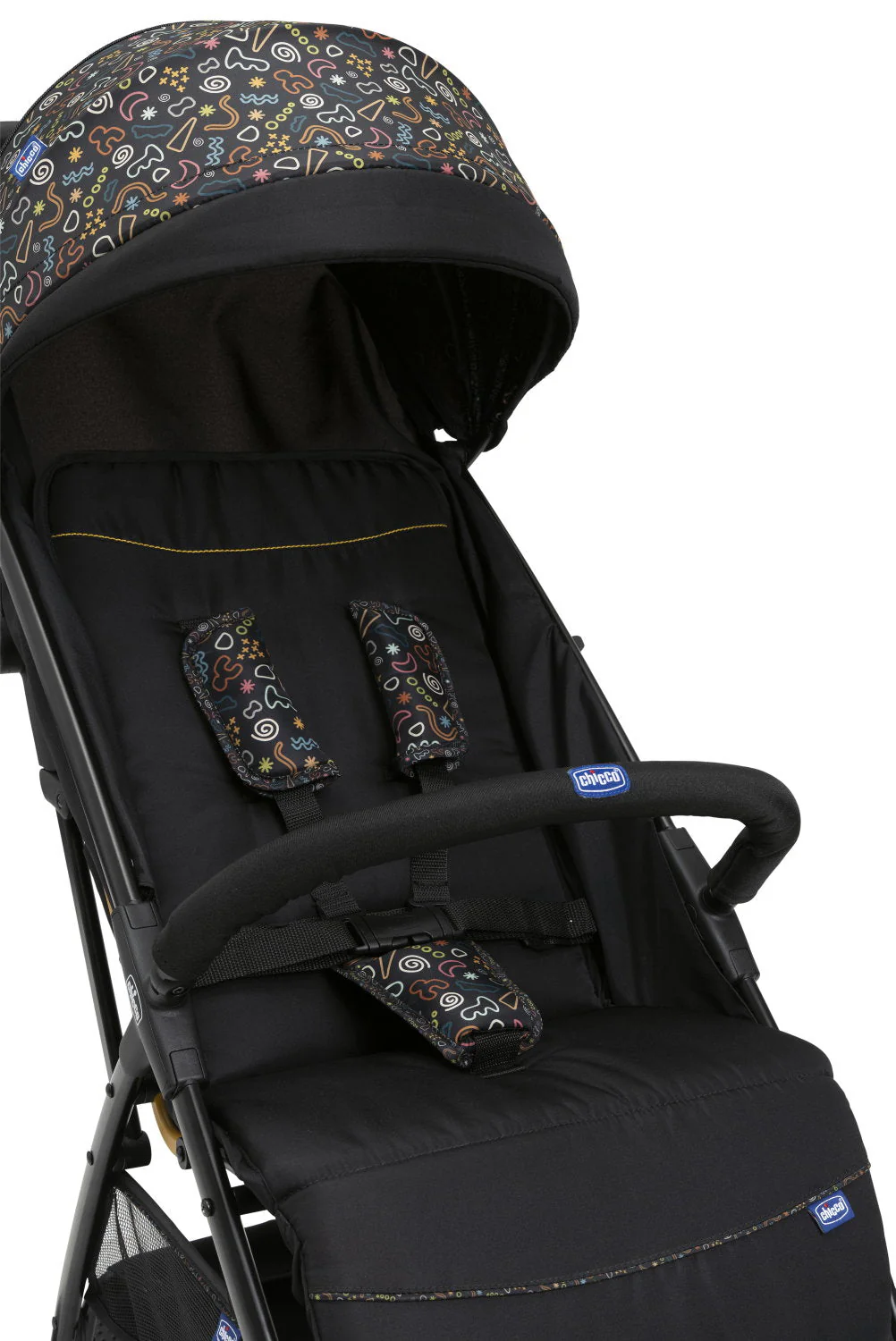 - La seduta ampia e imbottita di Glee offre al bambino il massimo comfort. Anche spallacci e spartigambe sono imbottiti.