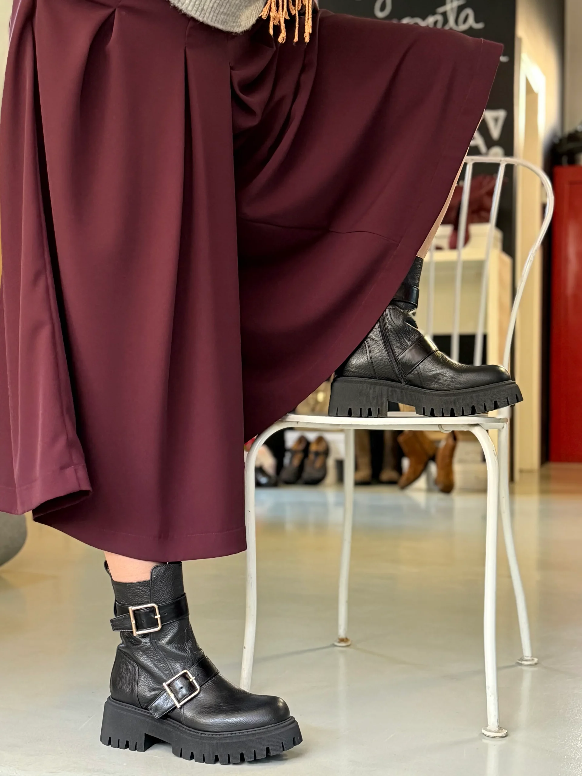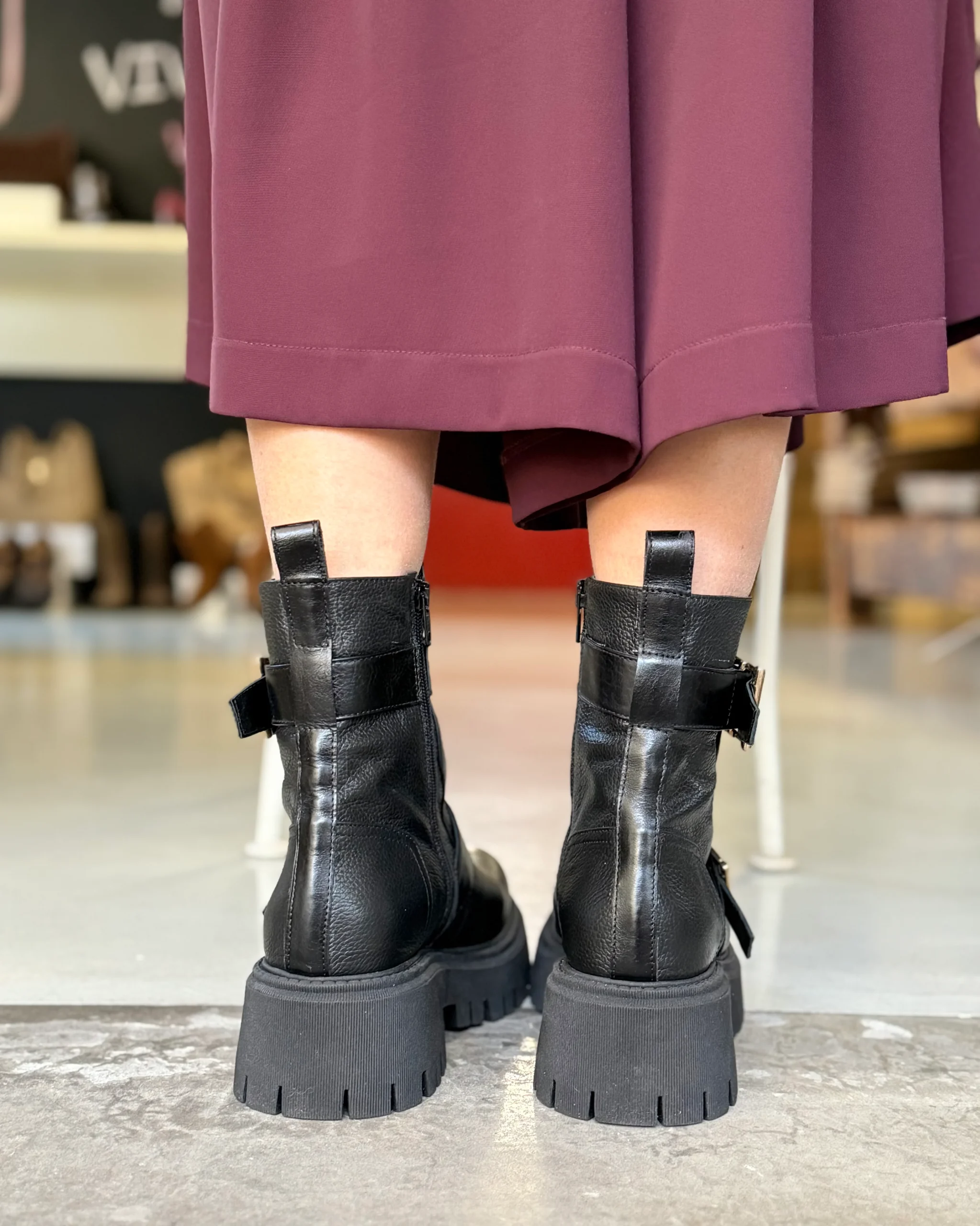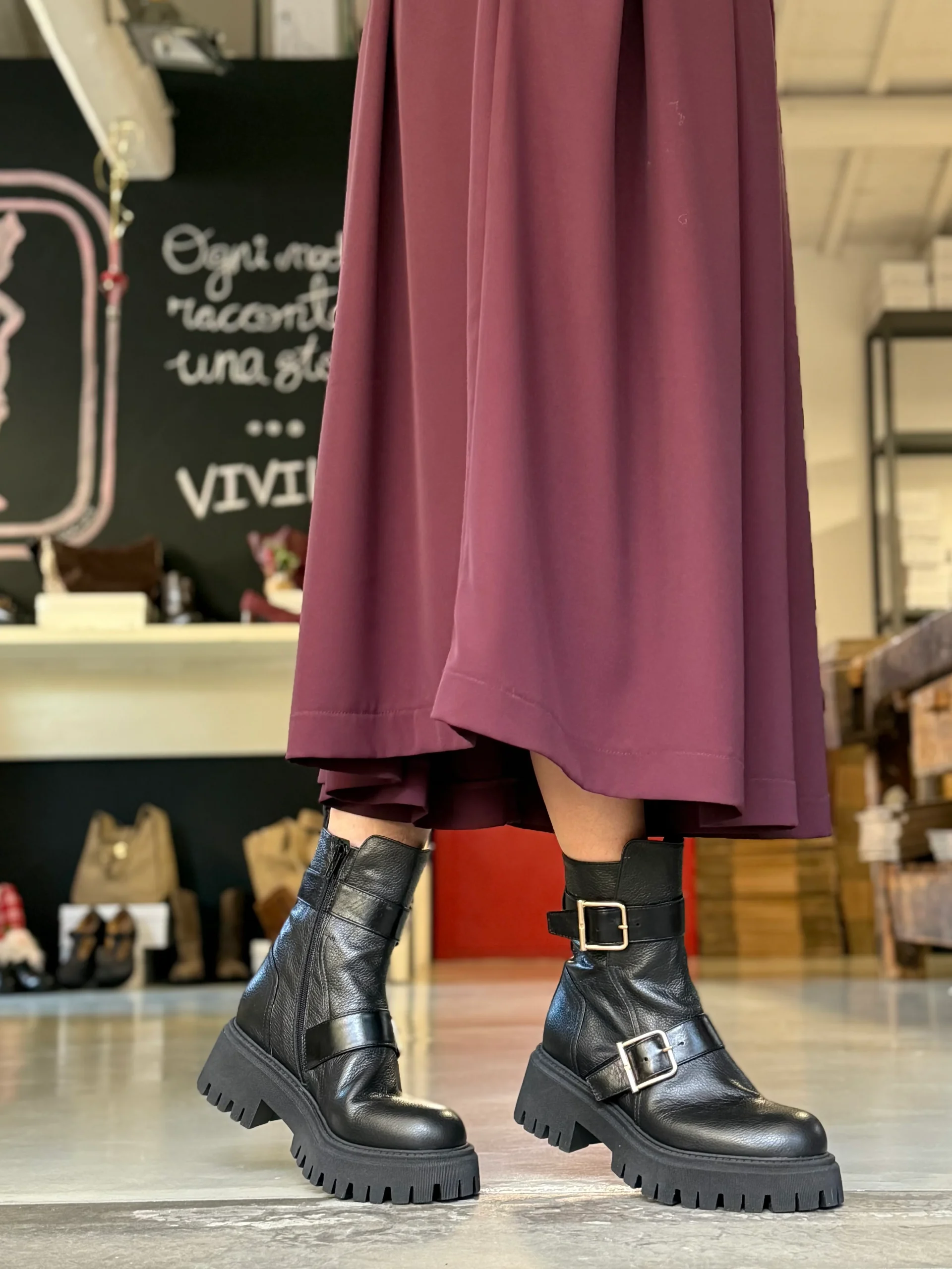La suola monoblocco in gomma, con fondo roccia, dà carattere e stabilità : 5 cm al tallone, 2 cm davanti (altezza percepita 3 cm).