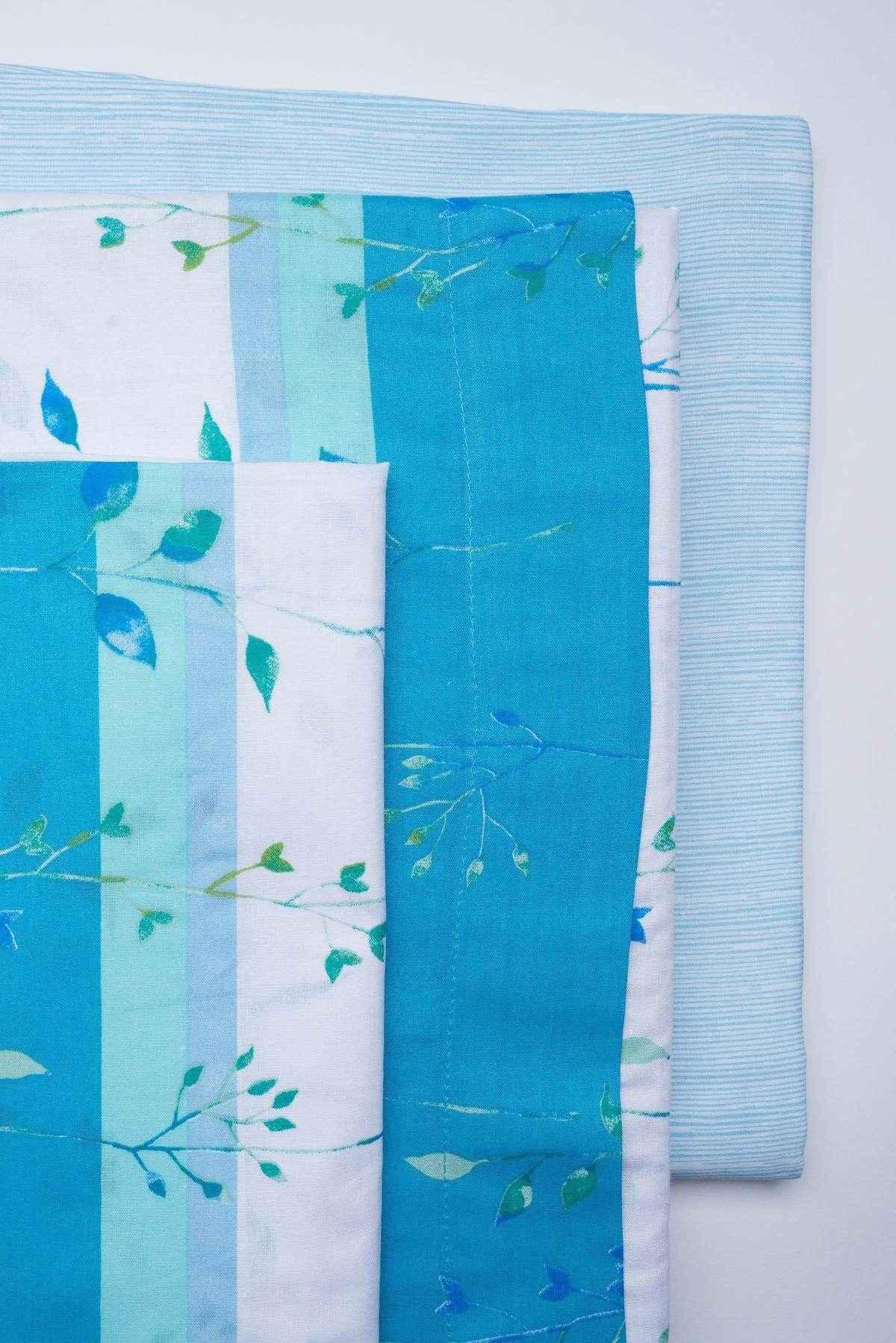 Singolo: sopra 150×280, sotto 90×195, federa 50×80. Una piazza e mezza: sopra 180×280, sotto 130×195, federa 50×80. Matrimoniale: sopra 240×280, sotto 180×195, 2 federe 50×80.
