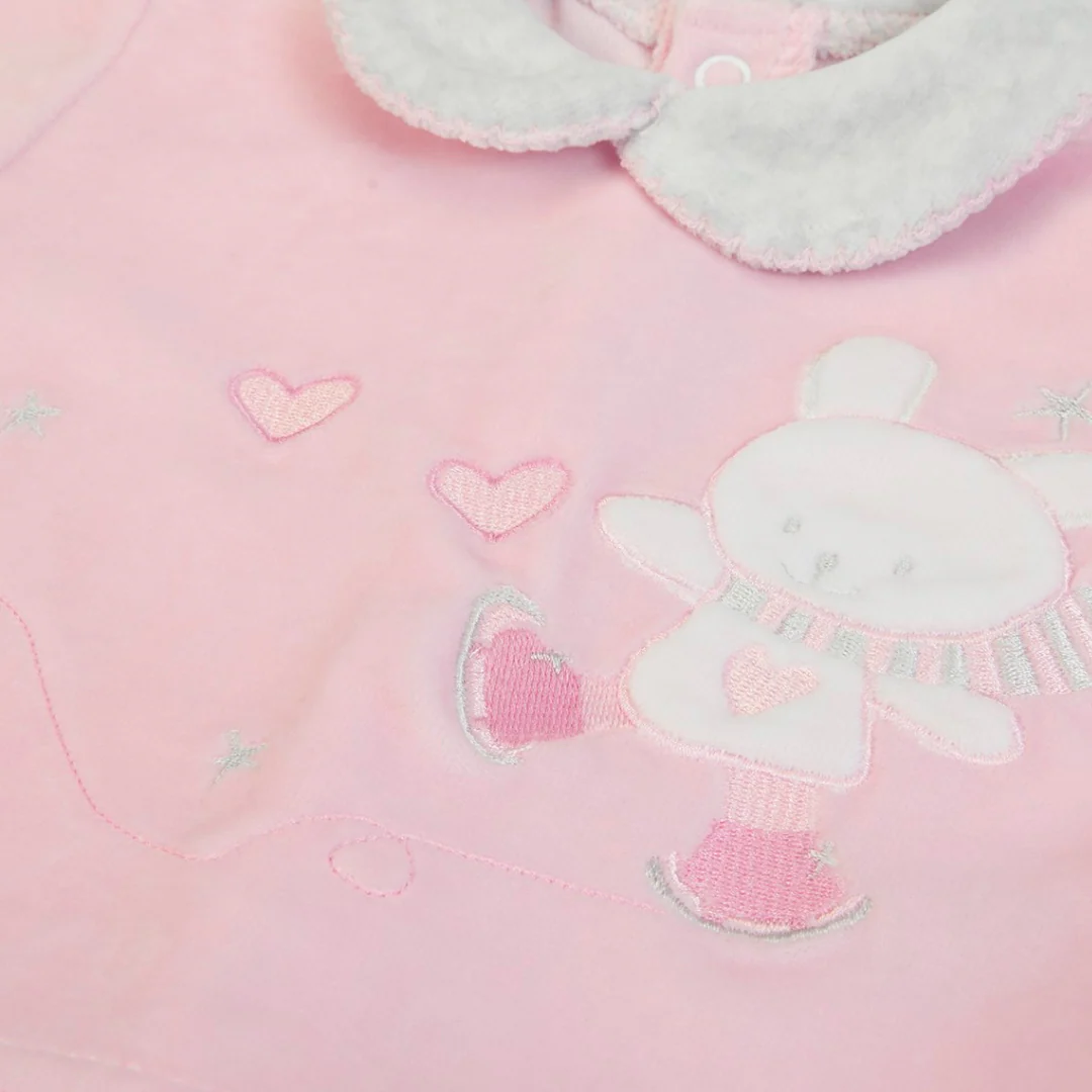 Un completo bimba realizzato in morbidissima in ciniglia, un tessuto noto per la sua morbidezza e comfort ideale per la pelle delicata del neonato
