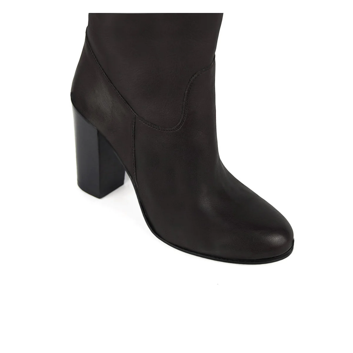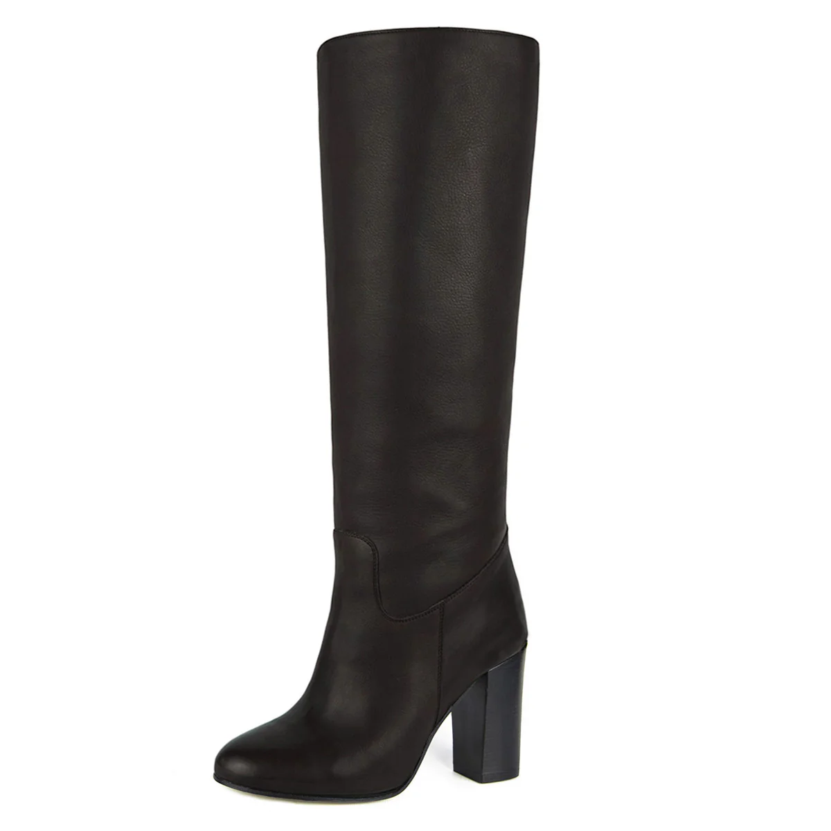 Questi stivali dalla punta arrotondata e dal gambale dritto potranno accompagnarti dalla mattina alla sera. Il tacco 8,5 cm squadrato è comodo da portare di giorno, ma si adatta anche ad outfit più audaci per una serata fuori. Il consiglio di stile? Di giorno indossali con una gonna scampanata al ginocchio, di sera con mini dress ricoperto di pailettes.