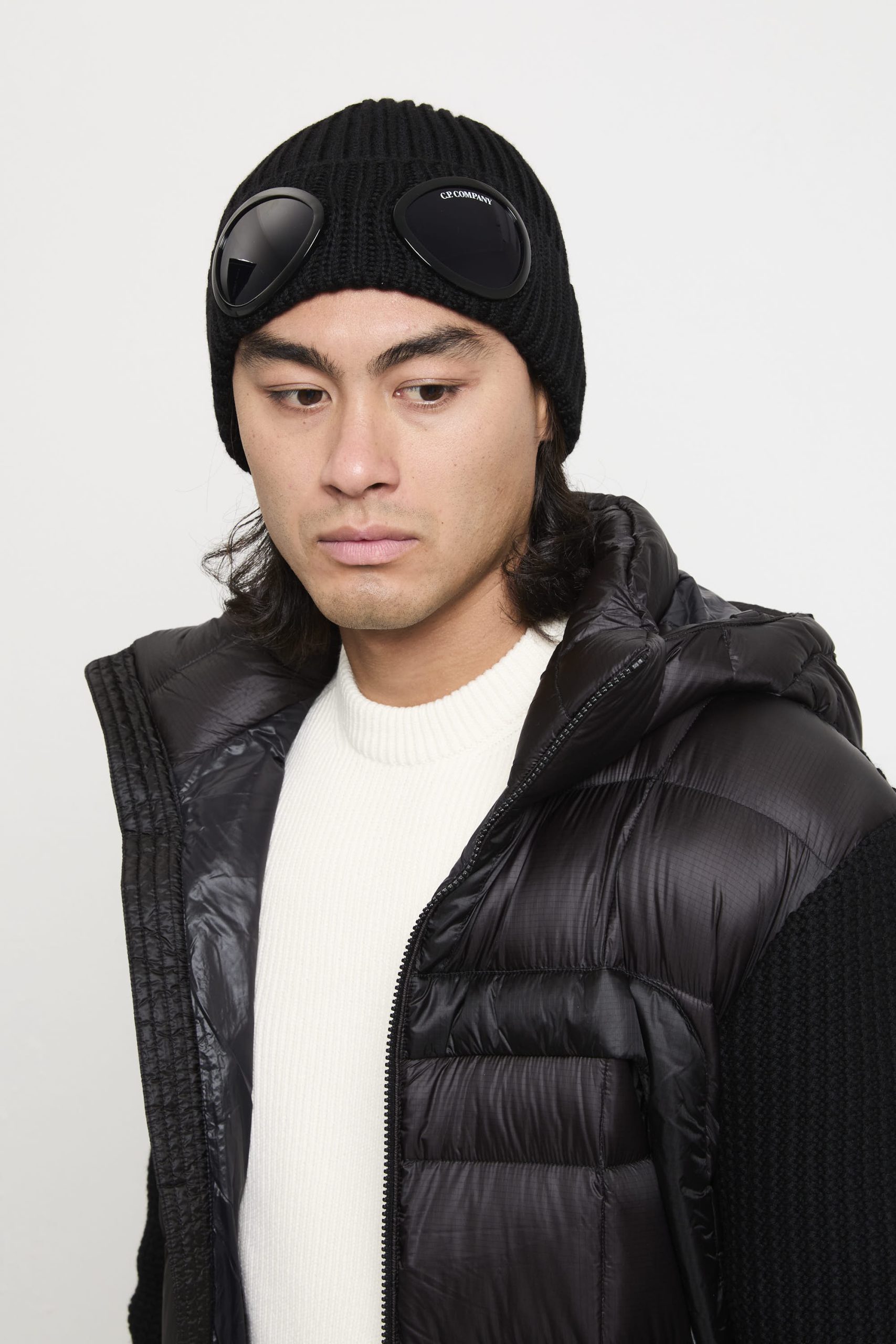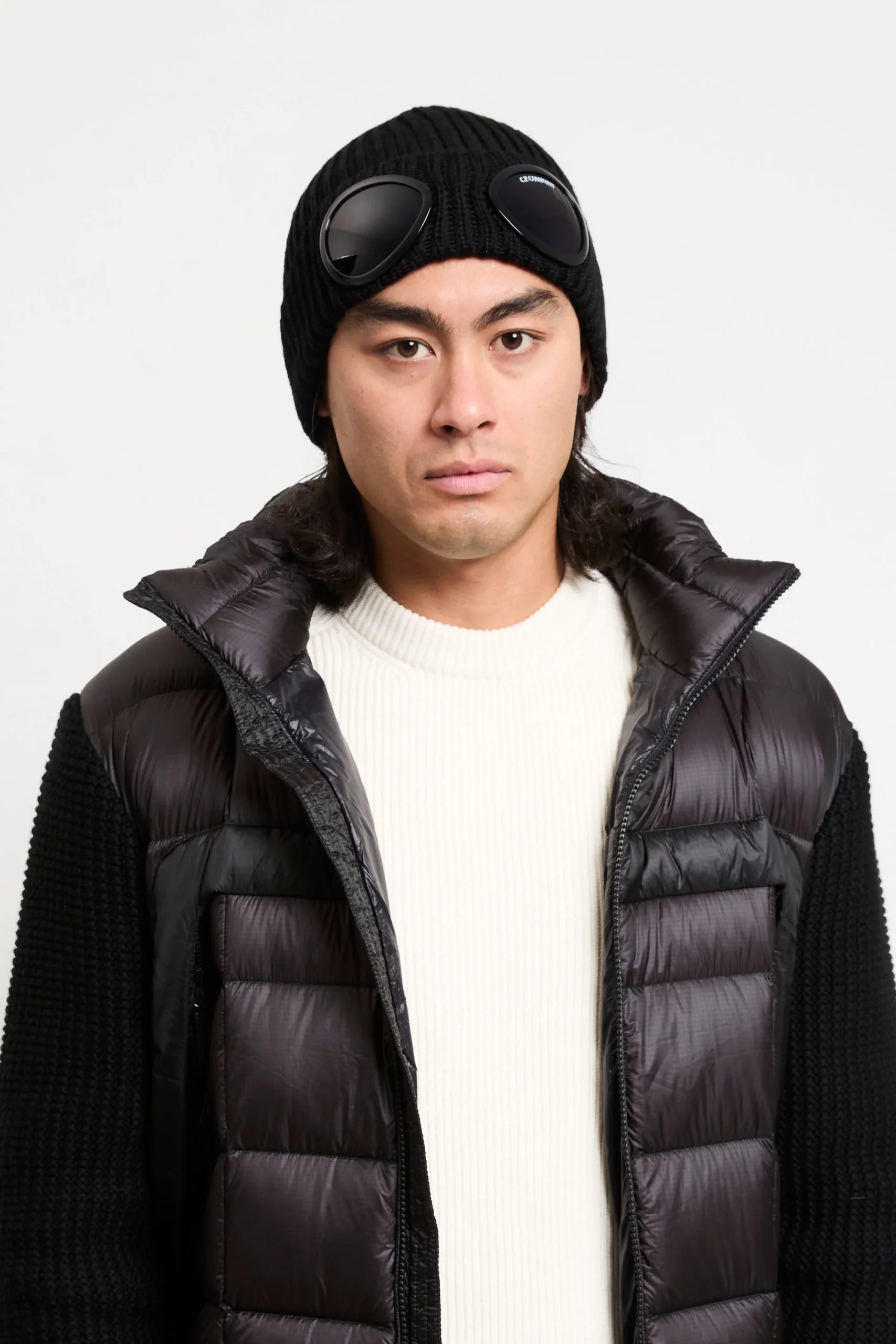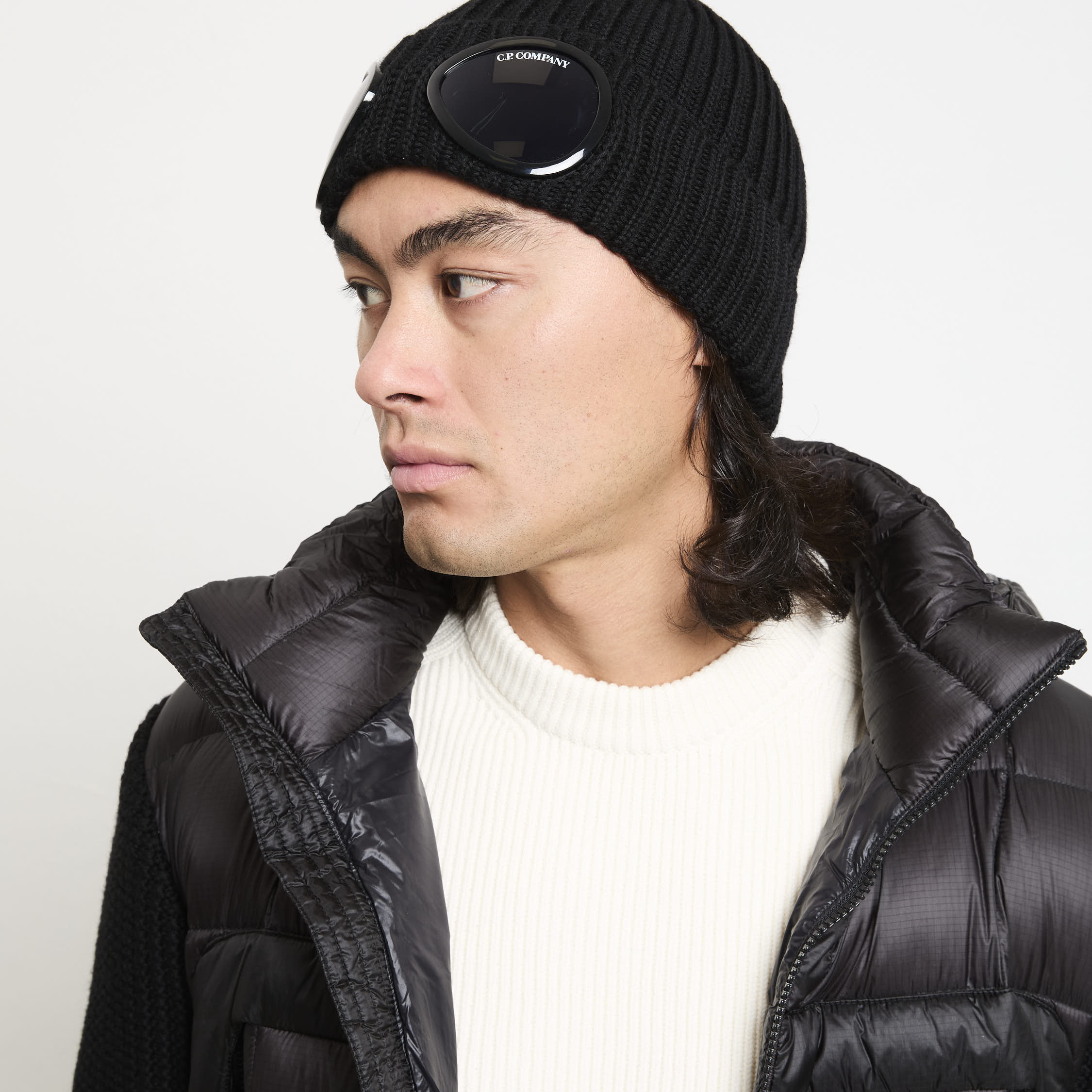 Una cuffia dallo stile deciso: realizzata in pregiata lana merino extrafine regala calore e comfort. Il risvolto a costine e i caratteristici obiettivi “Lens” donano un’impronta distintiva. Perfetta con un bomber tecnico, parka urbano o un giaccone oversize, completa outfit invernali urbani con eleganza autentica.