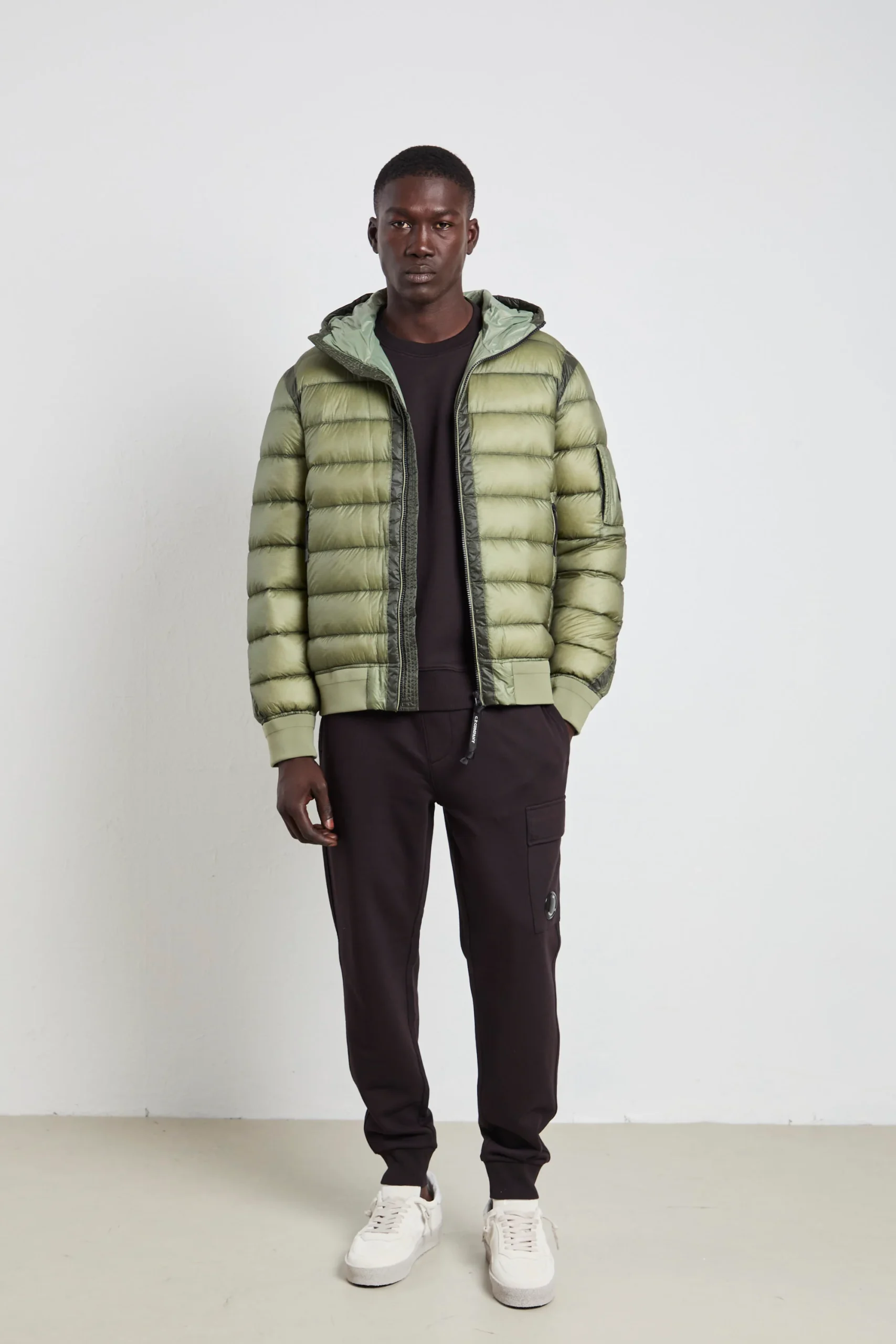 Il verde brillante di questo giubbotto C.P. Company conferisce un tocco audace e contemporaneo allo stile urbano. Realizzato in D.D. Shell, un nylon micro-ripstop leggero e resistente, e imbottito in piuma per offrire calore e comfort, è dotato di cappuccio regolabile e tasche laterali con zip per massima praticità . Perfetto abbinato a pantaloni chinos grigi e sneakers nere per un look urbano raffinato, oppure con pantaloni jogger neri e stivali da trekking per un outfit tecnico e moderno.