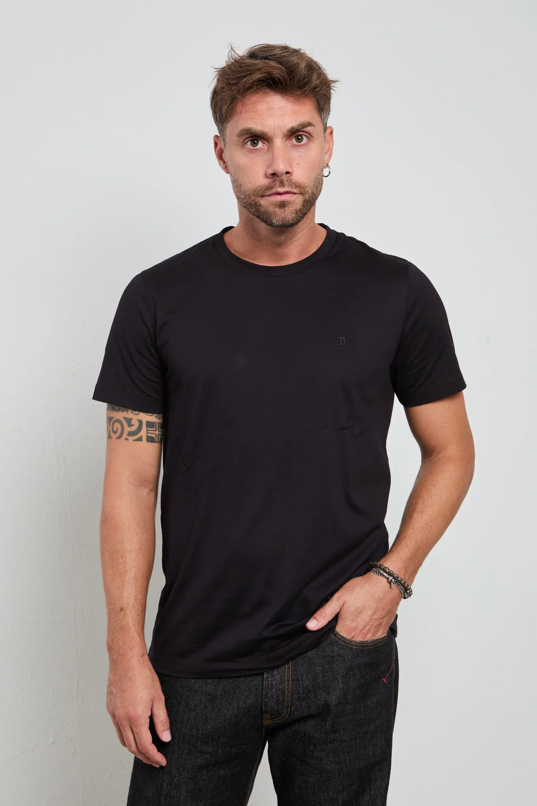 Una t-shirt essenziale ma raffinata in cotone leggero è un capo versatile che valorizza qualsiasi look. La vestibilità regolare e il girocollo la rendono perfetta sotto un blazer per un outfit smart o con denim e sneakers per un’attitude casual. Discreta e contemporanea, presenta il piccolo logo “D” sul petto.