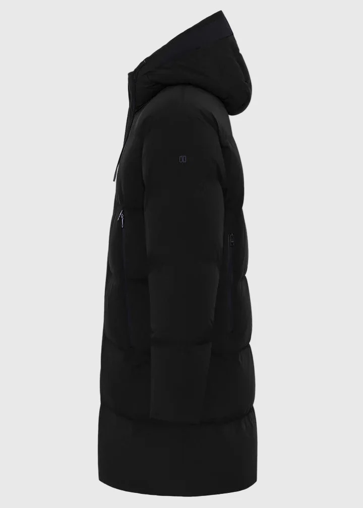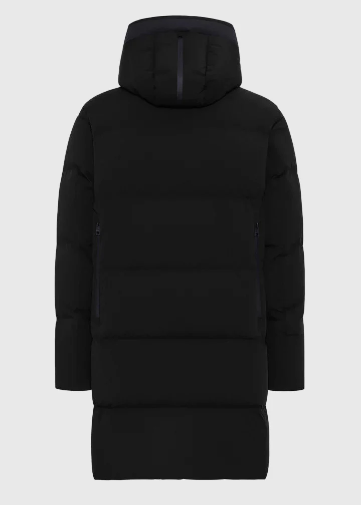 Parka packable imbottito con piuma in tessuto tecnico superlight bi-stretch, trasformabile in uno zaino ripiegandolo nell’apposita tasca interna chiusa da zip. Il capo è caratterizzato da automatico magnetico FIDLOCK® alla chiusura del collo, inserti in neoprene in contrasto di colore al bordo cappuccio, regolabile con coulisse, e nel sotto zip. Doppia chiusura frontale con zip water-resistant doppio cursore con dettaglio di tirazip e automatici, ampie tasche laterali oblique con zip doppio cursore water-resistant. All’interno tasche multifunzione con dettagli catarifrangenti.