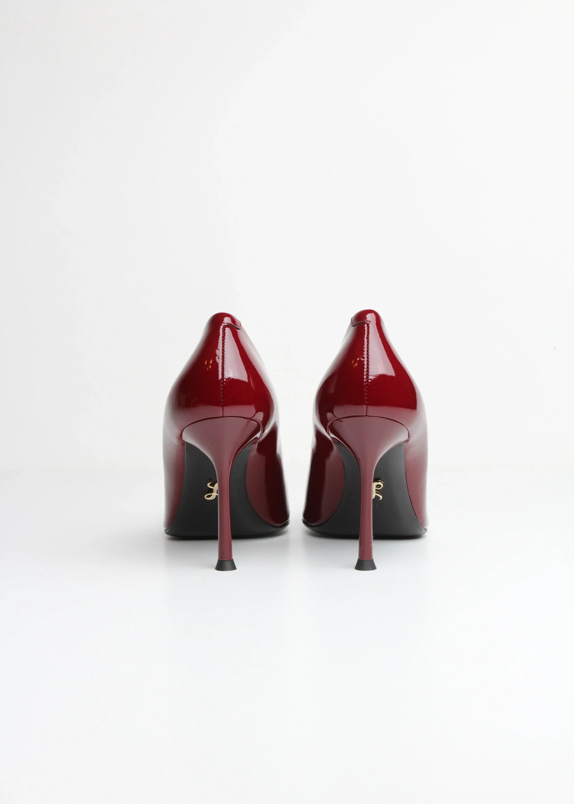 Realizzata in vernice porpora (red laque ), con una finitura lucida che cattura la luce con discrezione, questa scarpa è un’alternativa versatile e chic al classico nero. Il tacco a spillo da 90 mm slancia la figura con classe, mentre la suola in cuoio completa il modello con un tocco di autentico pregio.