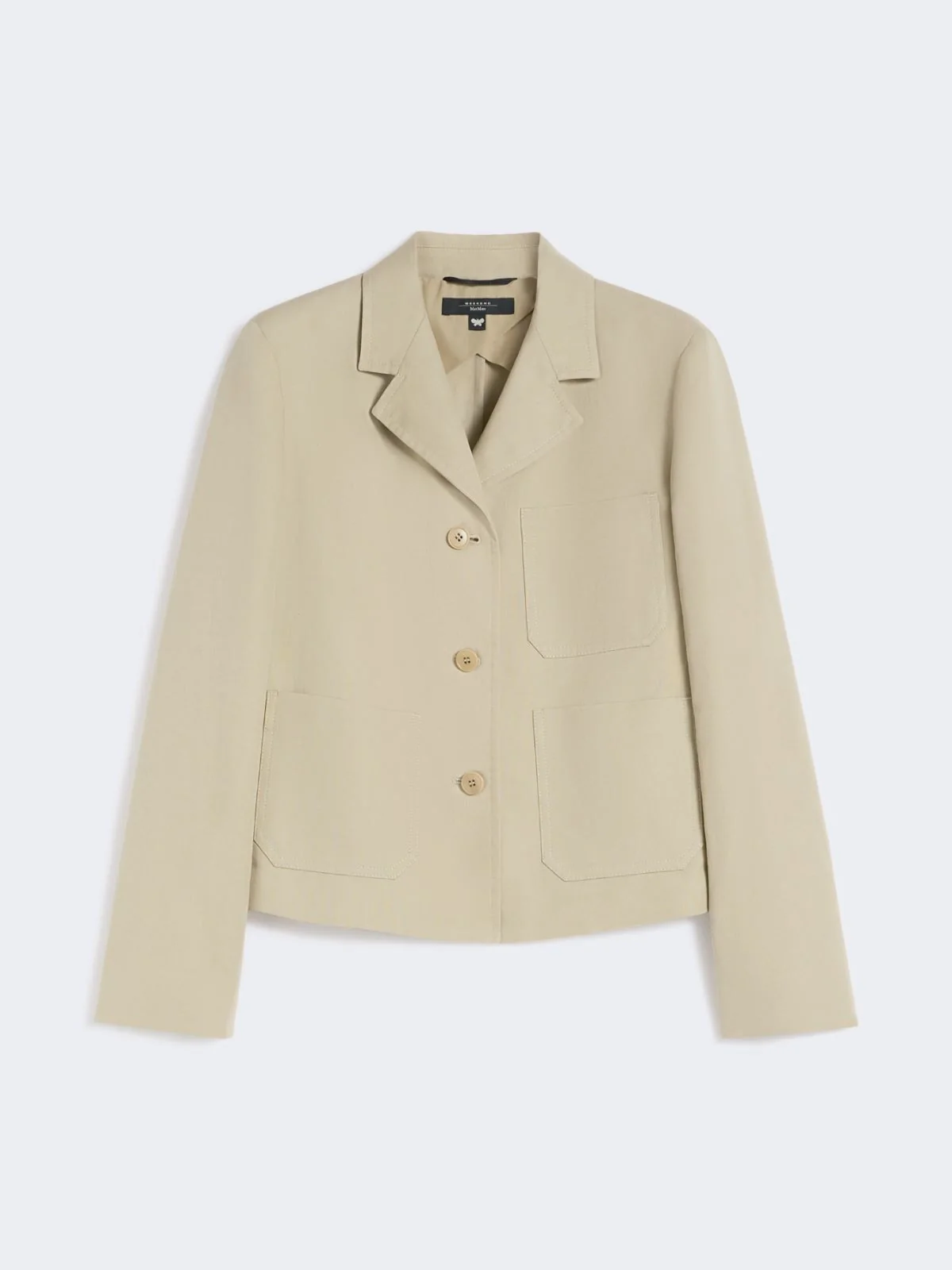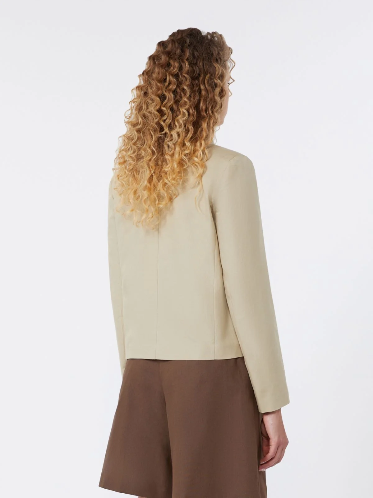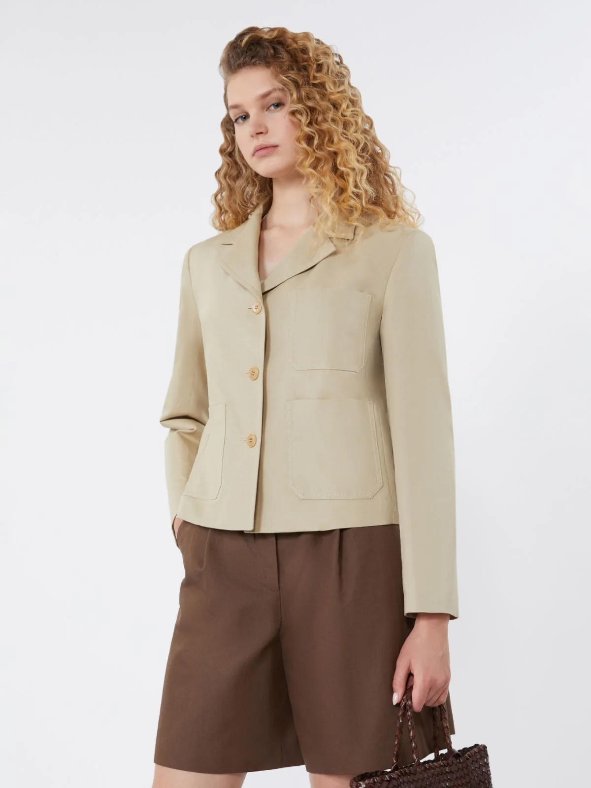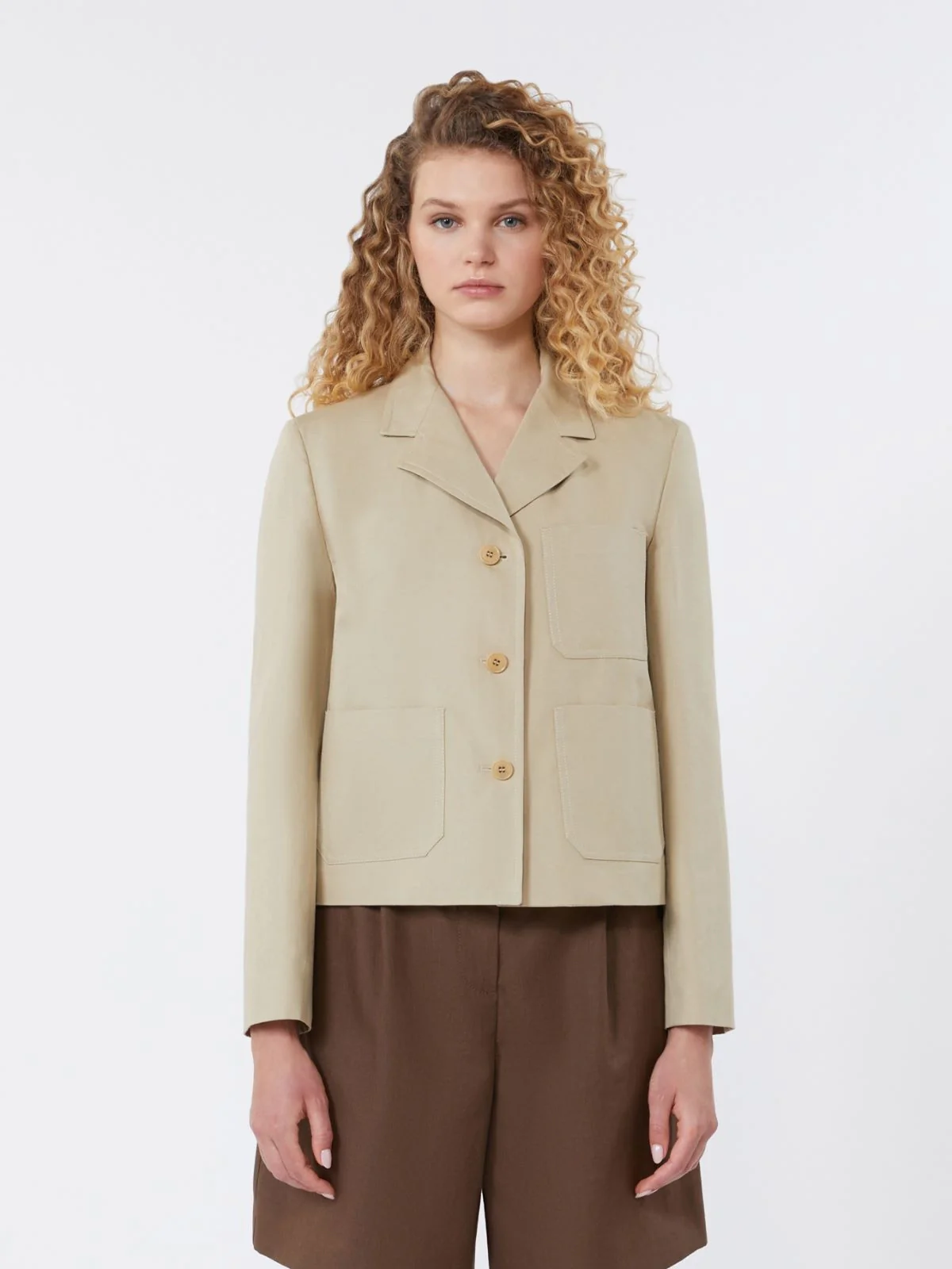Giacca monopetto, caratterizzata da tasche a toppa sul davanti e taglio leggermente cropped.